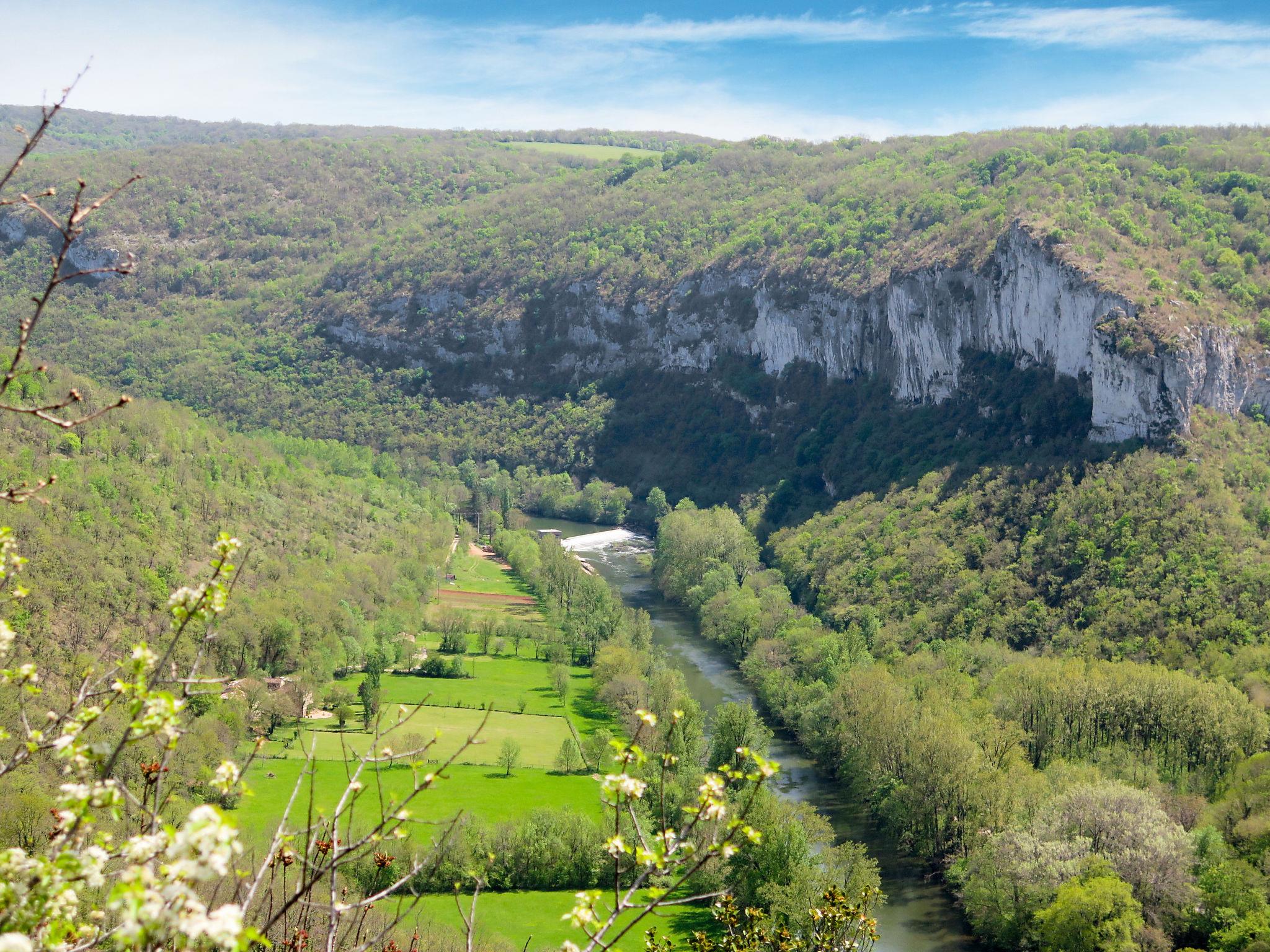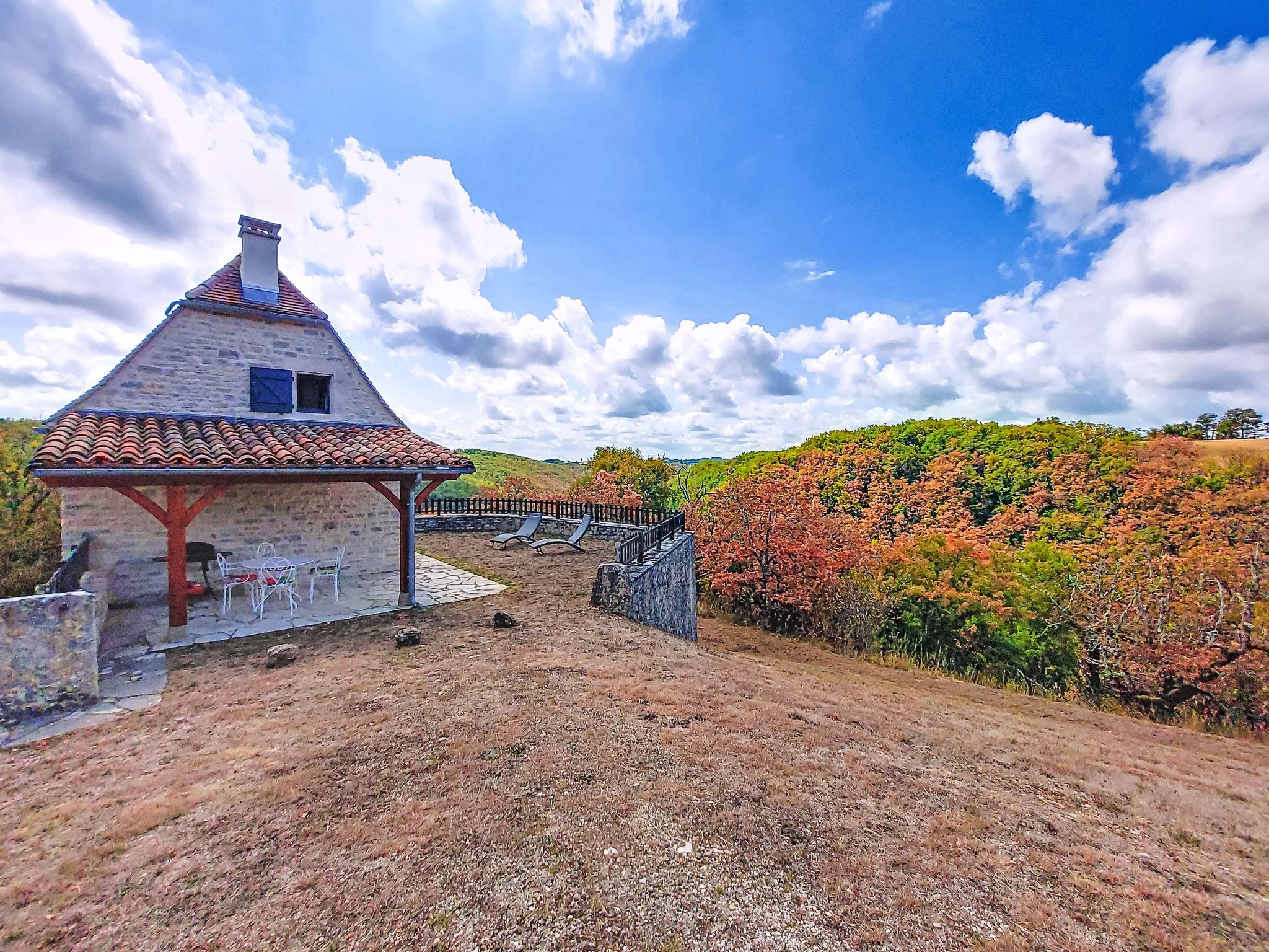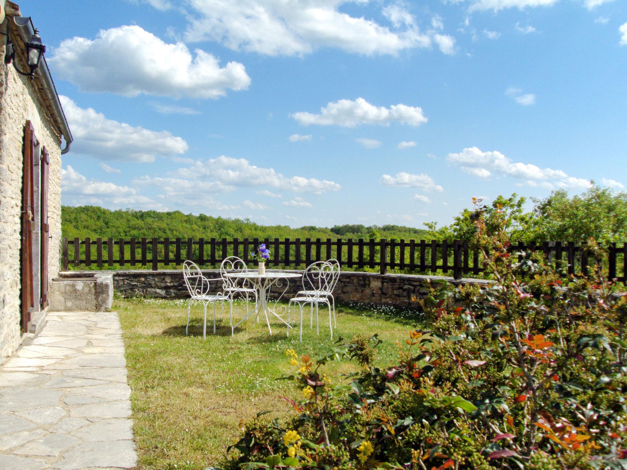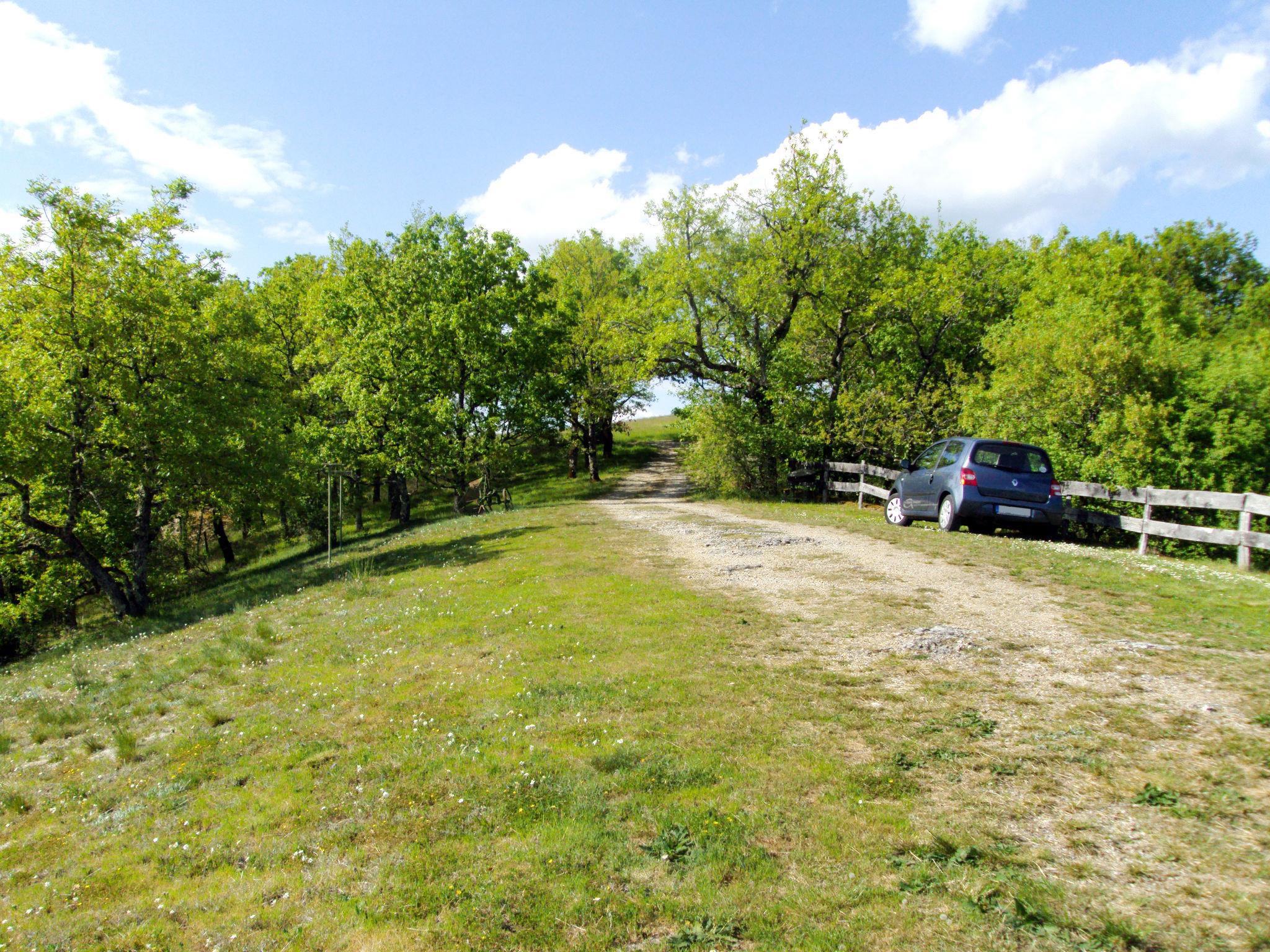 Small, cosy, rustic country house "Cuzac", surrounded by trees and meadows. 3 km from the centre of Labastide-Murat, 25 km from the centre of Rocamadour, 32 km from the centre of Cahors, in a secluded, elevated position on a slope, 3 km from the lake, in the countryside. Private: natural state property 5'000 m2 with trees, meadow, lawn for sunbathing. Motor access to the house (300 m via unmade road). Parking at the house on the premises. Shop 3 km, bus stop "St Henri" 23 km.