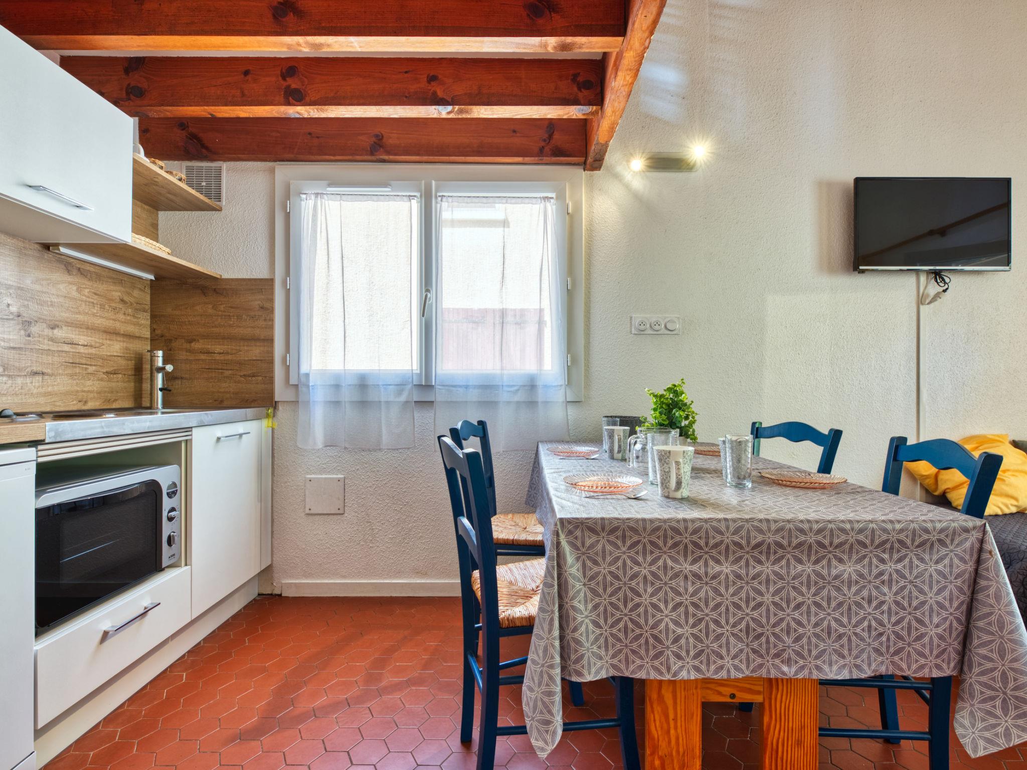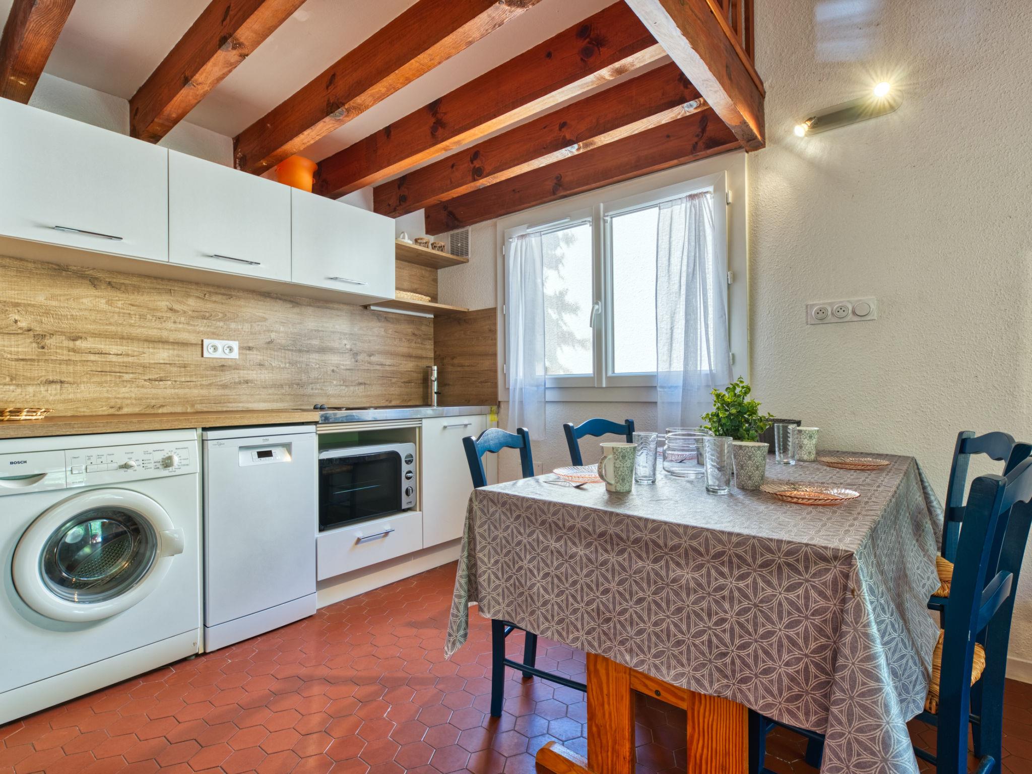 1-room terraced house 40 m2 on 2 levels. Living/dining room with 2 beds (90 cm, length 190 cm), TV. Open kitchen (2 hot plates, oven, dishwasher, toaster, kettle, microwave, electric coffee machine). Shower/WC. Electric heating. Upper floor: gallery with 1 french bed (2 x 80 cm, length 200 cm). Terrace, south-east facing position, patio. Terrace furniture, deck chairs (2). Facilities: washing machine. Internet (WiFi, extra). Parking. Please note: non-smokers only. Smoke alarm. Instead of an enclosed bedroom, some sleeping areas are located in an open-plan area (gallery, alcove, etc.).