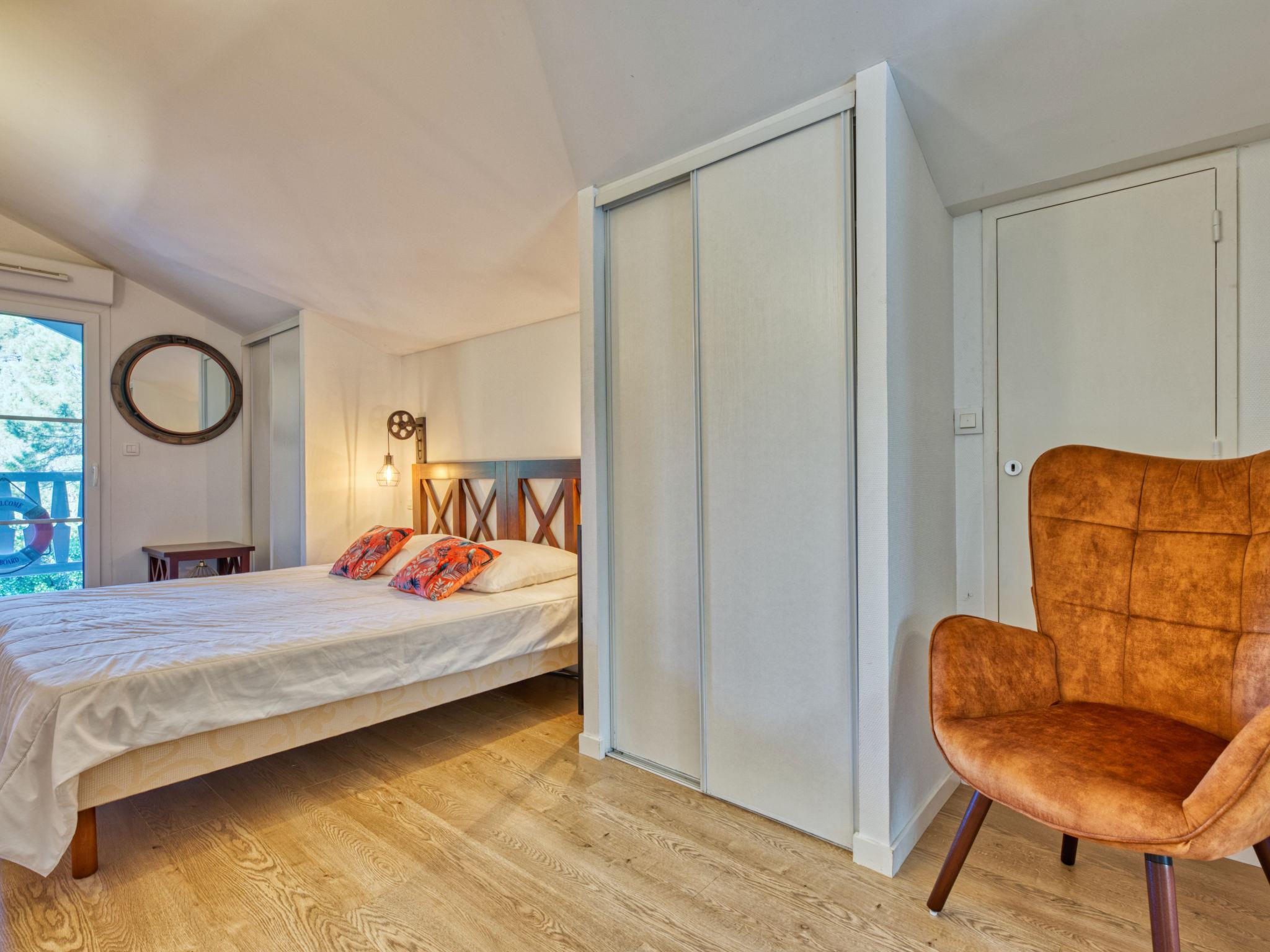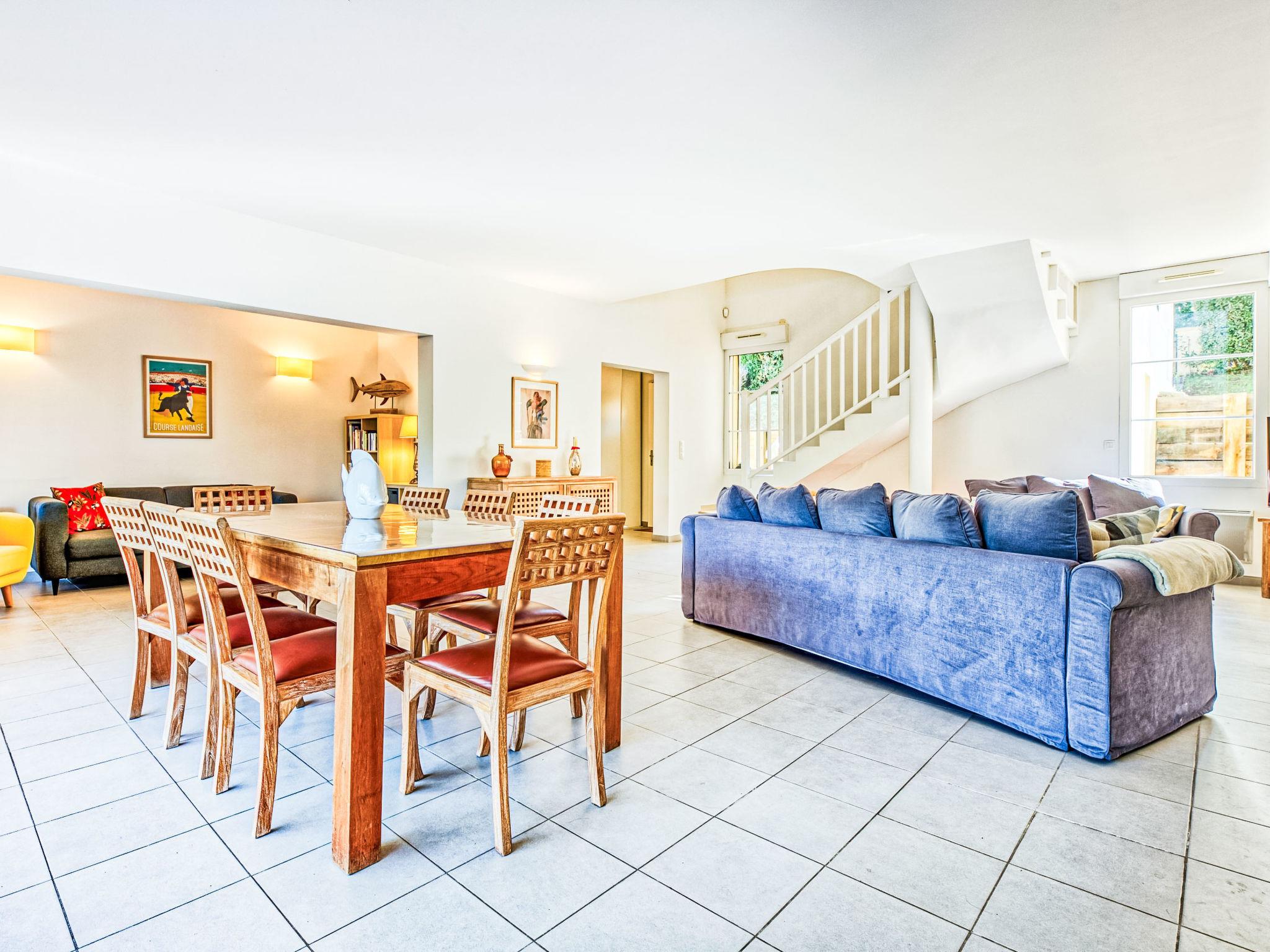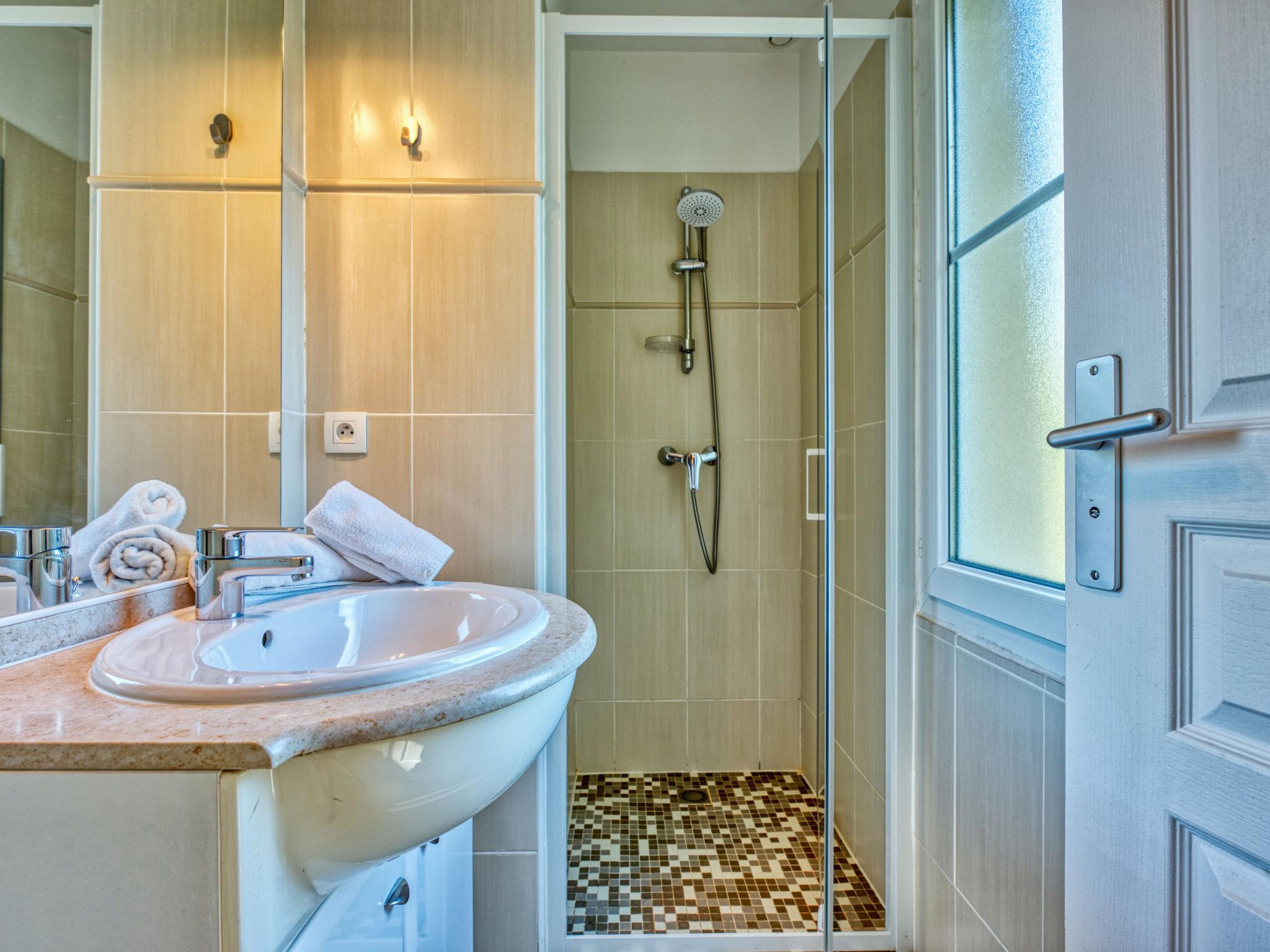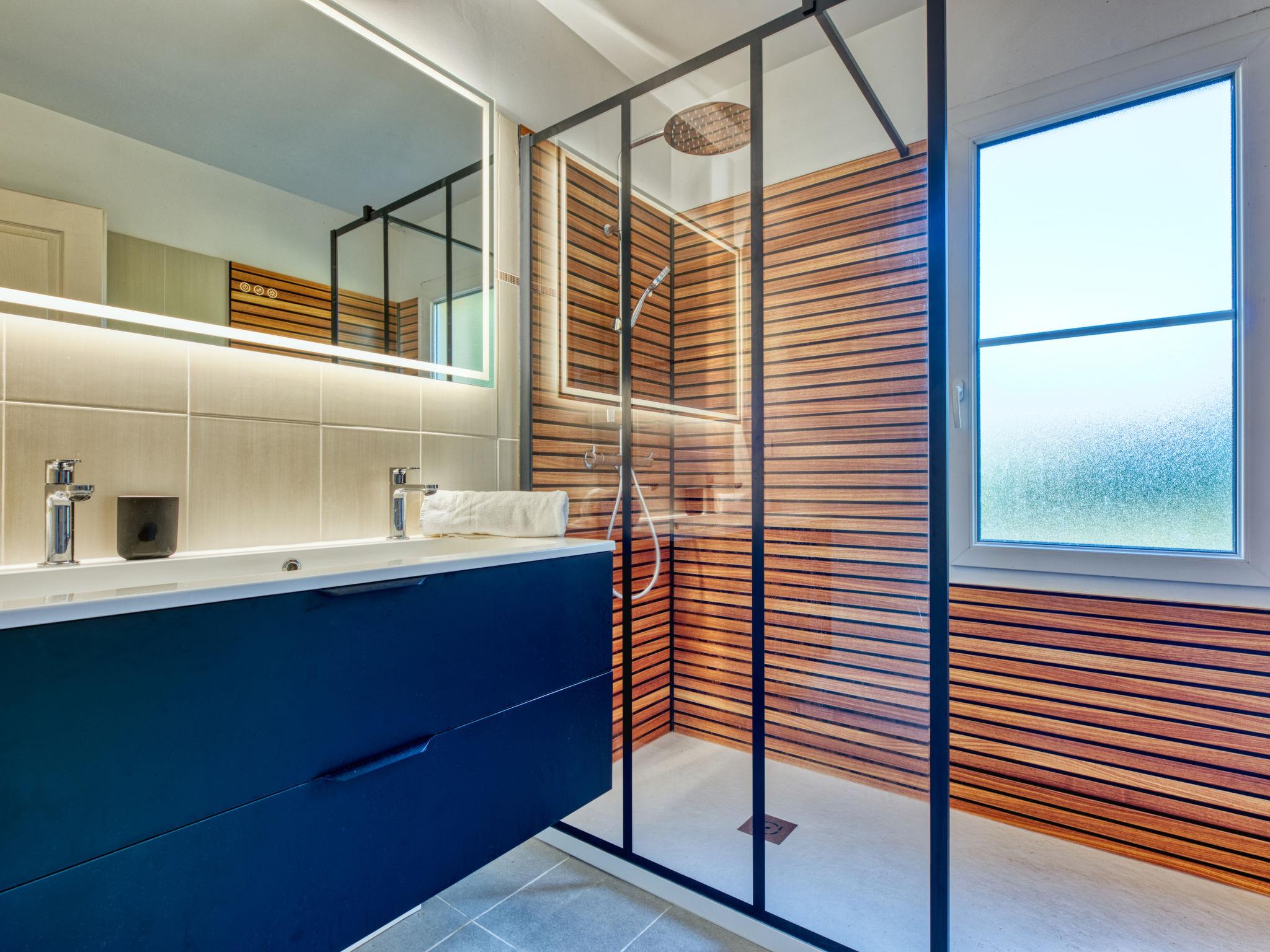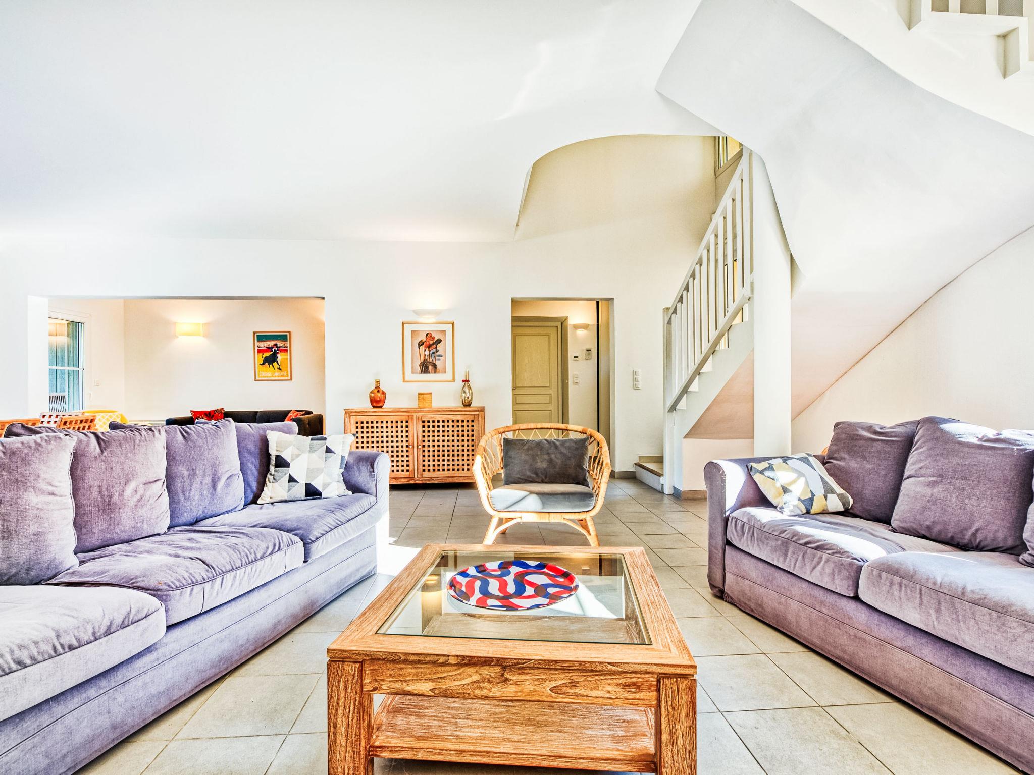 6-room villa 228 m2. Modern furnishings: large living/dining room with open-hearth fireplace and flat screen. 1 room with 1 french bed (180 cm, length 200 cm), bathroom and separate WC. 2 rooms, each room with 1 double bed (2 x 90 cm, length 200 cm), separate WC and shower. Large, open kitchen (oven, dishwasher, 4 induction hot plates, toaster, kettle, microwave, electric coffee machine, Capsules for coffee machine (Tassimo et senseo) extra) with TV. Exit to the garden, to the terrace. Upper floor: 1 room with 1 double bed (160 cm, length 200 cm), separate WC, bath/shower and TV. Exit to the balcony. 1 room with 1 french bed (2 x 90 cm, length 200 cm), bath/shower/WC. Large terrace, west facing position. Terrace furniture, deck chairs (6). Beautiful view of the swimming pool, the garden and the forest. Facilities: washing machine. Internet (WiFi, free). Parking (roofed). Please note: non-smoking house. Smoke alarm. Offer by a private individual according to Art. 155, IV of CGI.