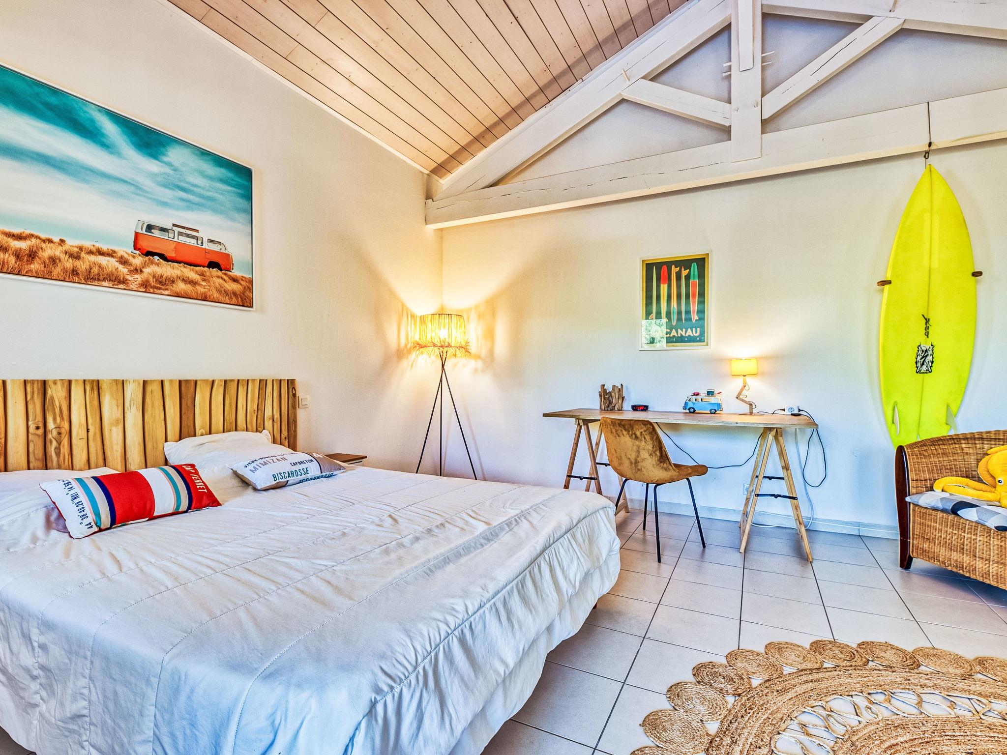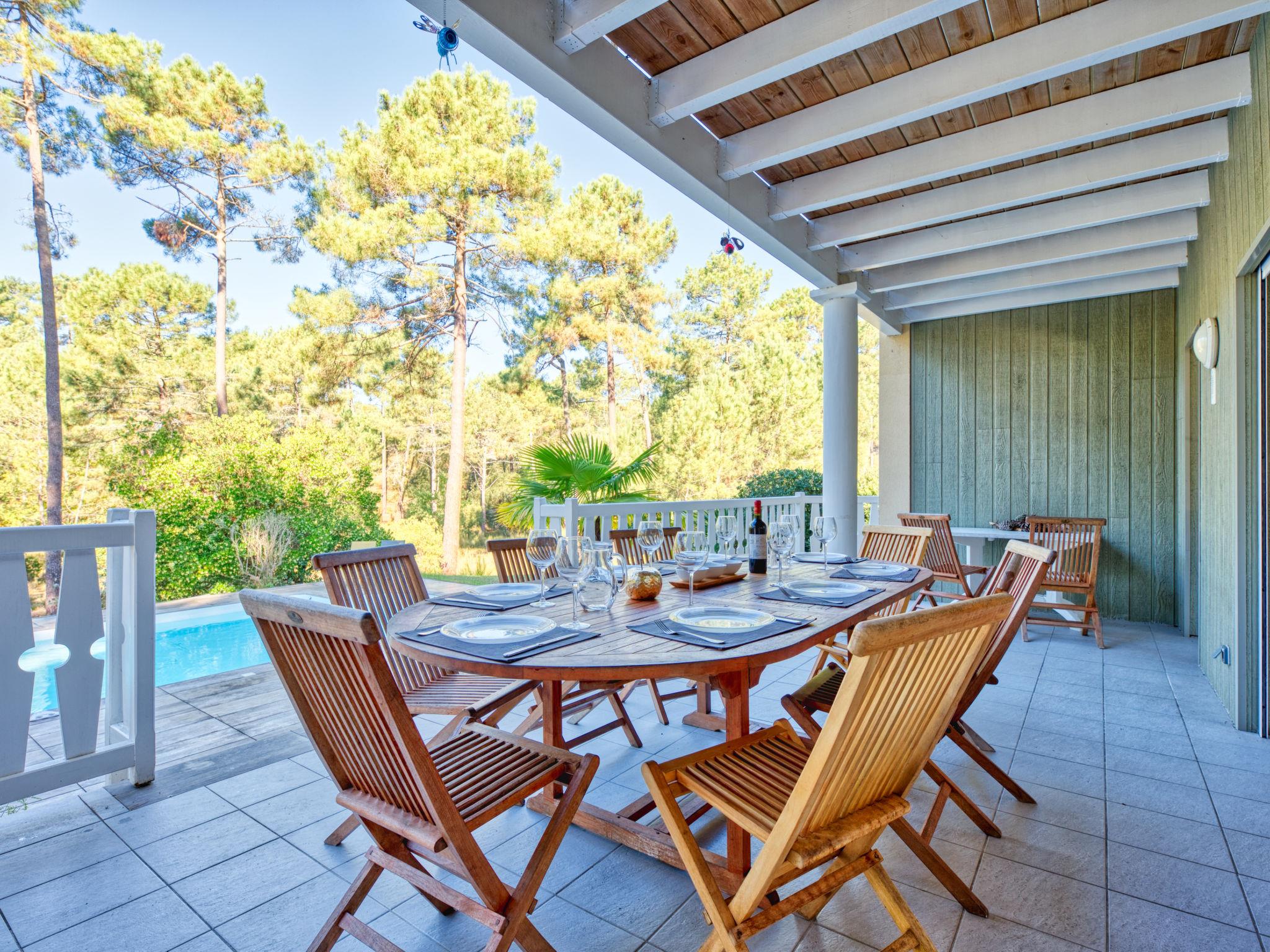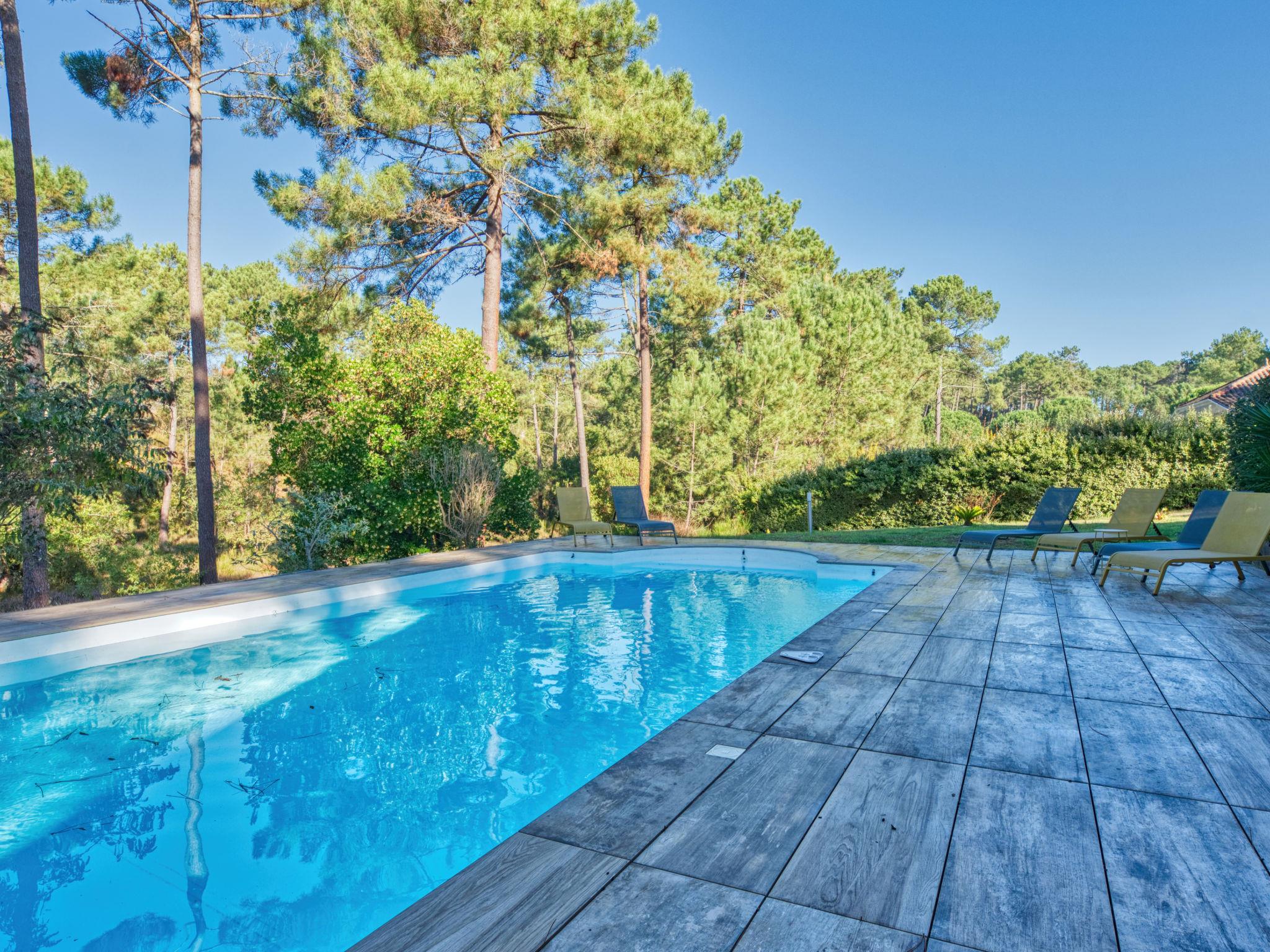 Beautiful residence "Atlantic Green", surrounded by trees. On the outskirts, 4 km from the centre of Lacanau Océan, 4 km from the sea, 5 km from the lake, 4 km from the beach. Private: natural state property 2'200 m2 (fenced), swimming pool heated (10 x 5 m, depth 180 cm, seasonal availability: 15.Jun. - 15.Sep.) with alarm system. Terrace, garden furniture, roofed, parking. Supermarket 4 km, restaurant 4 km, bar 4 km, bicycle rental 2 km, bus stop "Marie Curie" 3 km. Golf course (18 hole) 2 km, tennis 2 km. Nearby attractions: Bordeaux 60 km, Arcachon 60 km, Saint Emilion 90 km, Dune du pyla 70 km. Residence with electric gates. The keys‘ handover takes place by the agency INTERHOME in Lacanau Océan, 4 km.