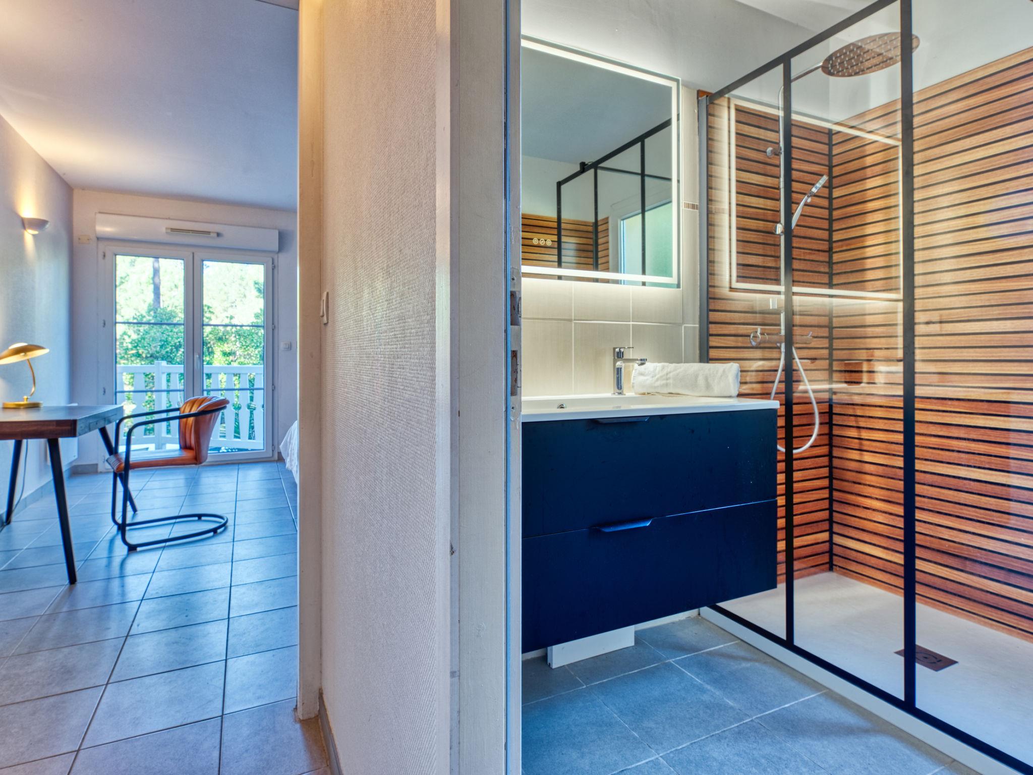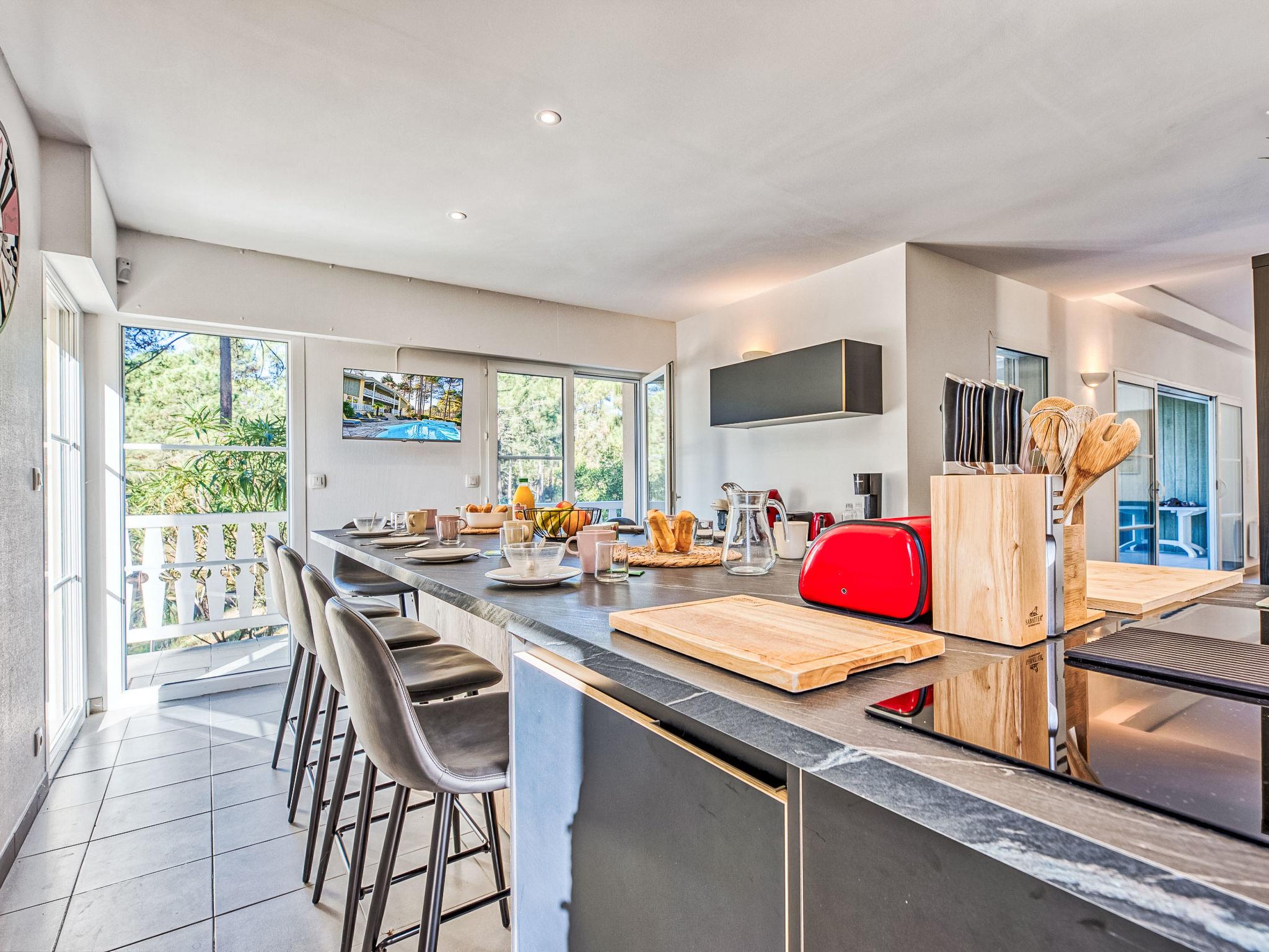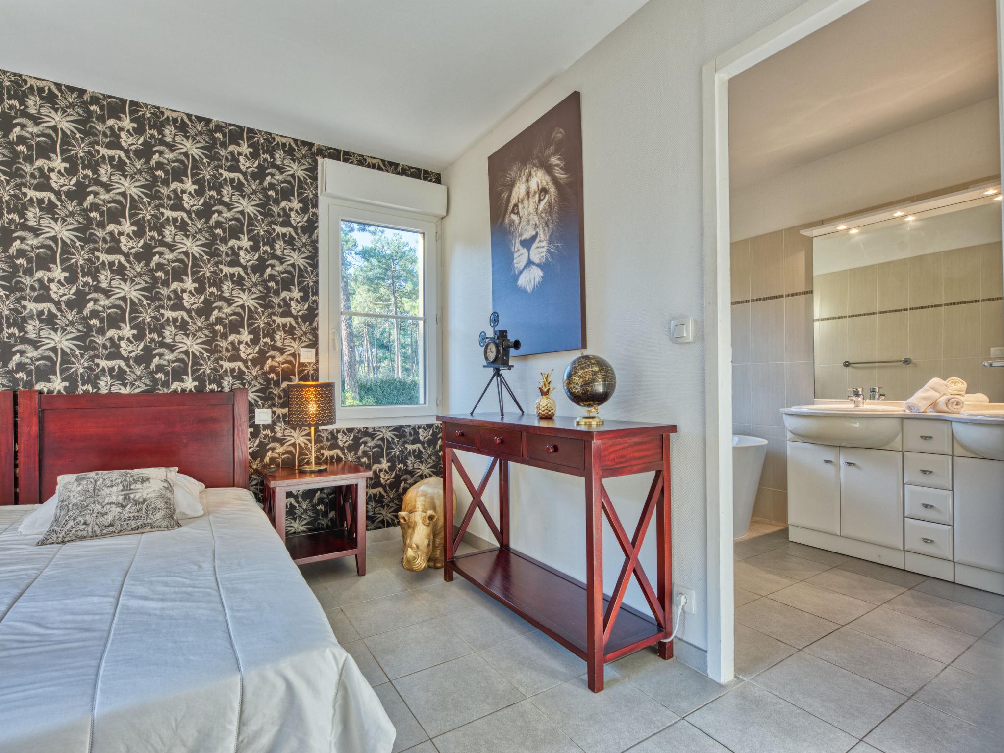 Beautiful residence "Atlantic Green", surrounded by trees. On the outskirts, 4 km from the centre of Lacanau Océan, 4 km from the sea, 5 km from the lake, 4 km from the beach. Private: natural state property 2'200 m2 (fenced), swimming pool heated (10 x 5 m, depth 180 cm, seasonal availability: 15.Jun. - 15.Sep.) with alarm system. Terrace, garden furniture, roofed, parking. Supermarket 4 km, restaurant 4 km, bar 4 km, bicycle rental 2 km, bus stop "Marie Curie" 3 km. Golf course (18 hole) 2 km, tennis 2 km. Nearby attractions: Bordeaux 60 km, Arcachon 60 km, Saint Emilion 90 km, Dune du pyla 70 km. Residence with electric gates. The keys‘ handover takes place by the agency INTERHOME in Lacanau Océan, 4 km.