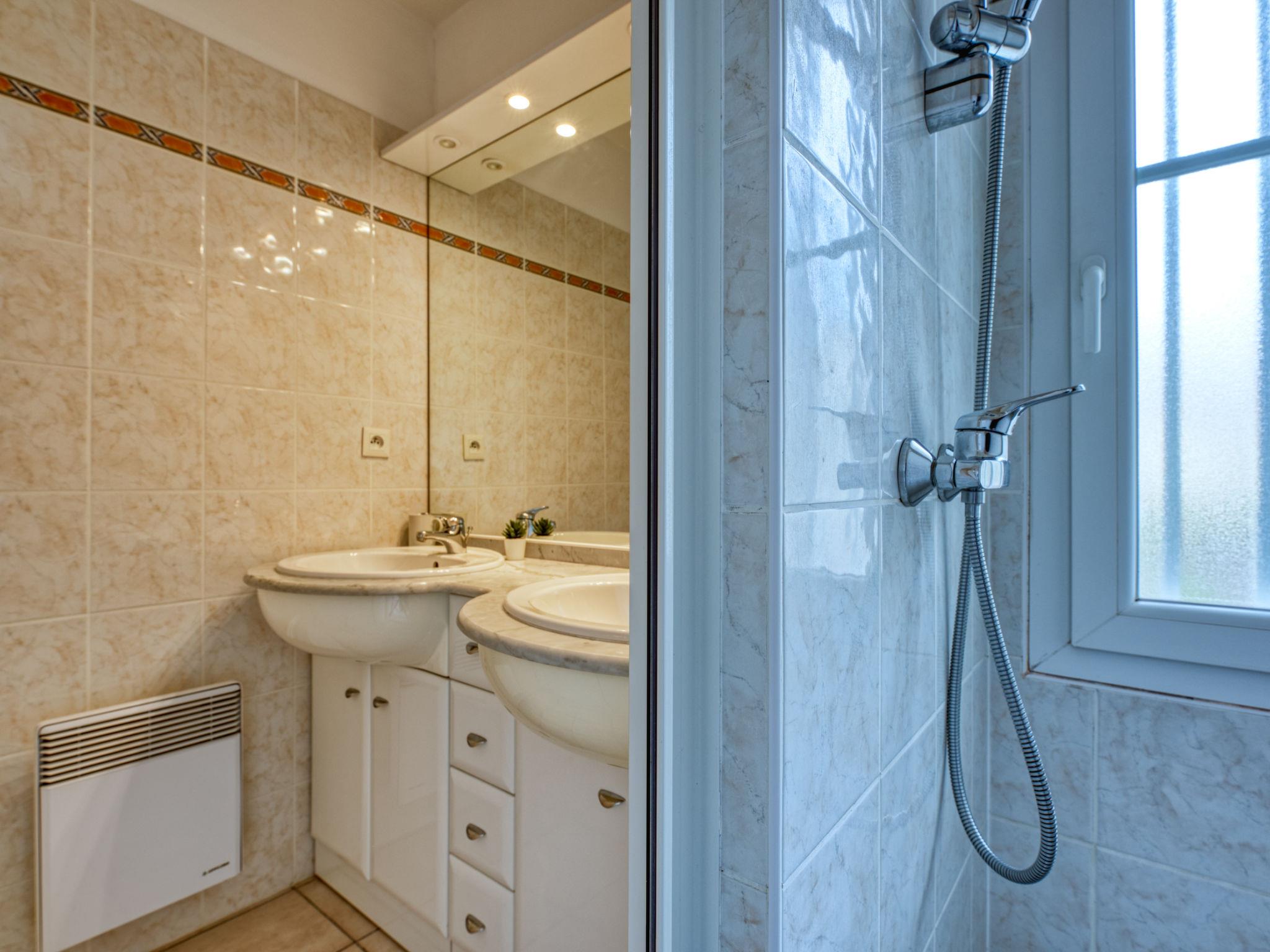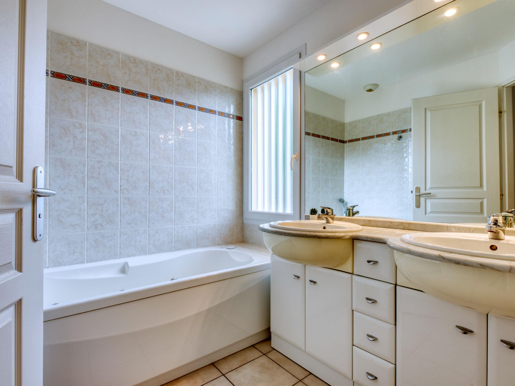 4-room villa 120 m2 on 2 levels. Comfortable furnishings: large living/dining room with dining table and TV (flat screen). Exit to the terrace, to the swimming pool. 1 room with 1 french bed (160 cm, length 200 cm). Exit to the terrace. 1 room with 1 double bed (2 x 80 cm, length 190 cm). Exit to the terrace. Open kitchen (4 hot plates, oven, dishwasher, toaster, kettle, microwave, electric coffee machine, Capsules for coffee machine (Nespresso) extra). 2 bathrooms, 2 sep. WC's. Upper floor: 1 open room with 1 french bed (2 x 80 cm, length 190 cm). Bathroom, sep. WC. Electric heating. Large terrace 40 m2, west facing position. Terrace furniture, deck chairs (4). Beautiful view of the swimming pool and the garden. Facilities: washing machine, dryer. Internet (WiFi, free). Parking (roofed). Please note: non-smoking house. Smoke alarm. Offer by a private individual according to Art. 155, IV of CGI.
