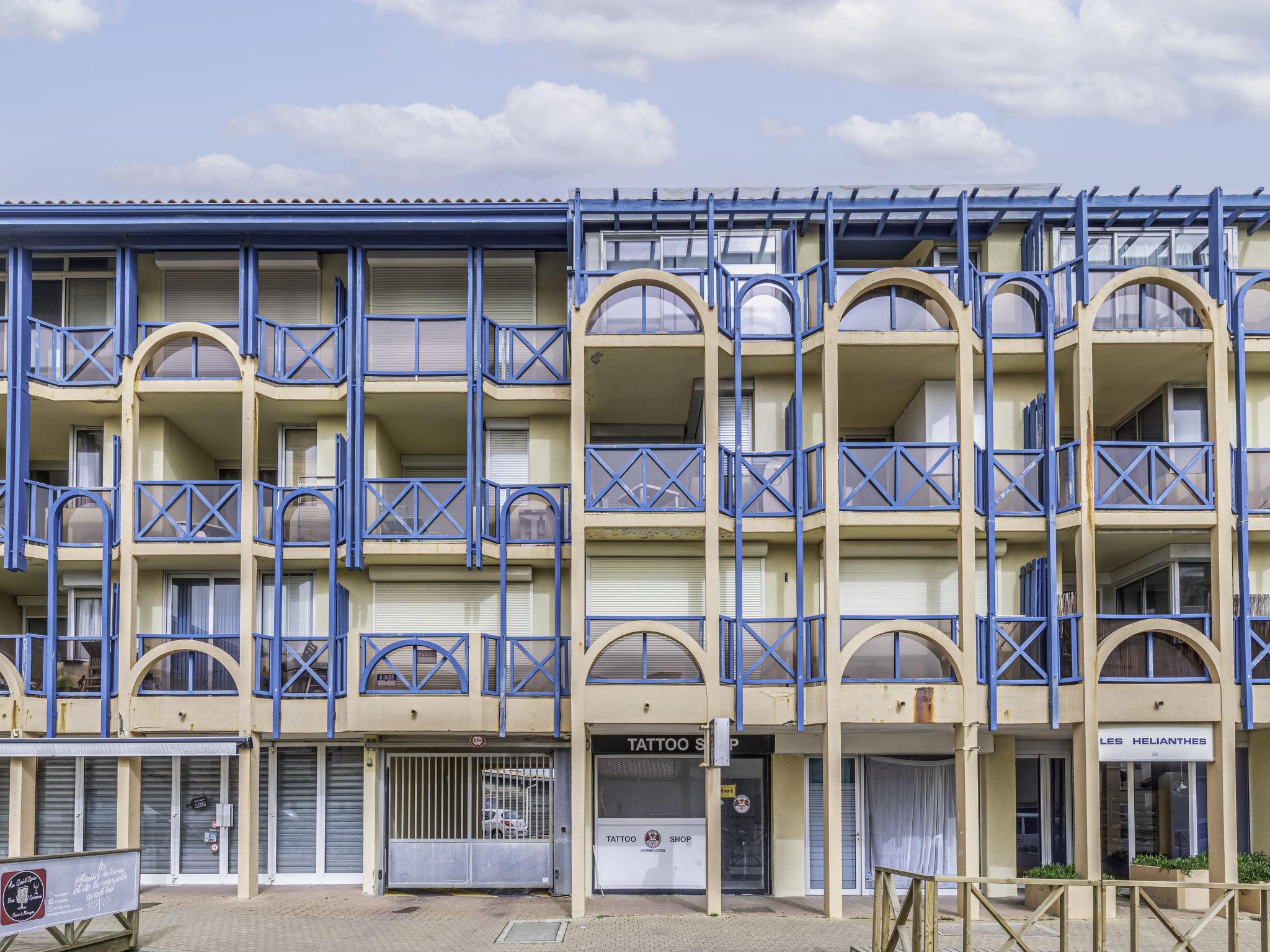 Lacanau Océan: Residence "Les Hélianthes", 3 storeys. In the centre of Lacanau-Océan, in a central, busy position, 100 m from the sea, 6 km from the lake, 100 m from the beach. In the complex: lift. Shop, supermarket 100 m, restaurant 10 m, bar 20 m, bicycle rental 50 m, bus stop "Salle l'Escoure Océan" 450 m. Golf course (18 hole) 4 km, surf school 100 m, tennis 3 km, riding stable 4 km, cycle lane 200 m. Nearby attractions: Bordeaux 60 km, Saint Emilion 85 km, Dune du Pyla 80 km. Hiking paths: Vélodyssée 500 m. Please note: entertainment in the season.