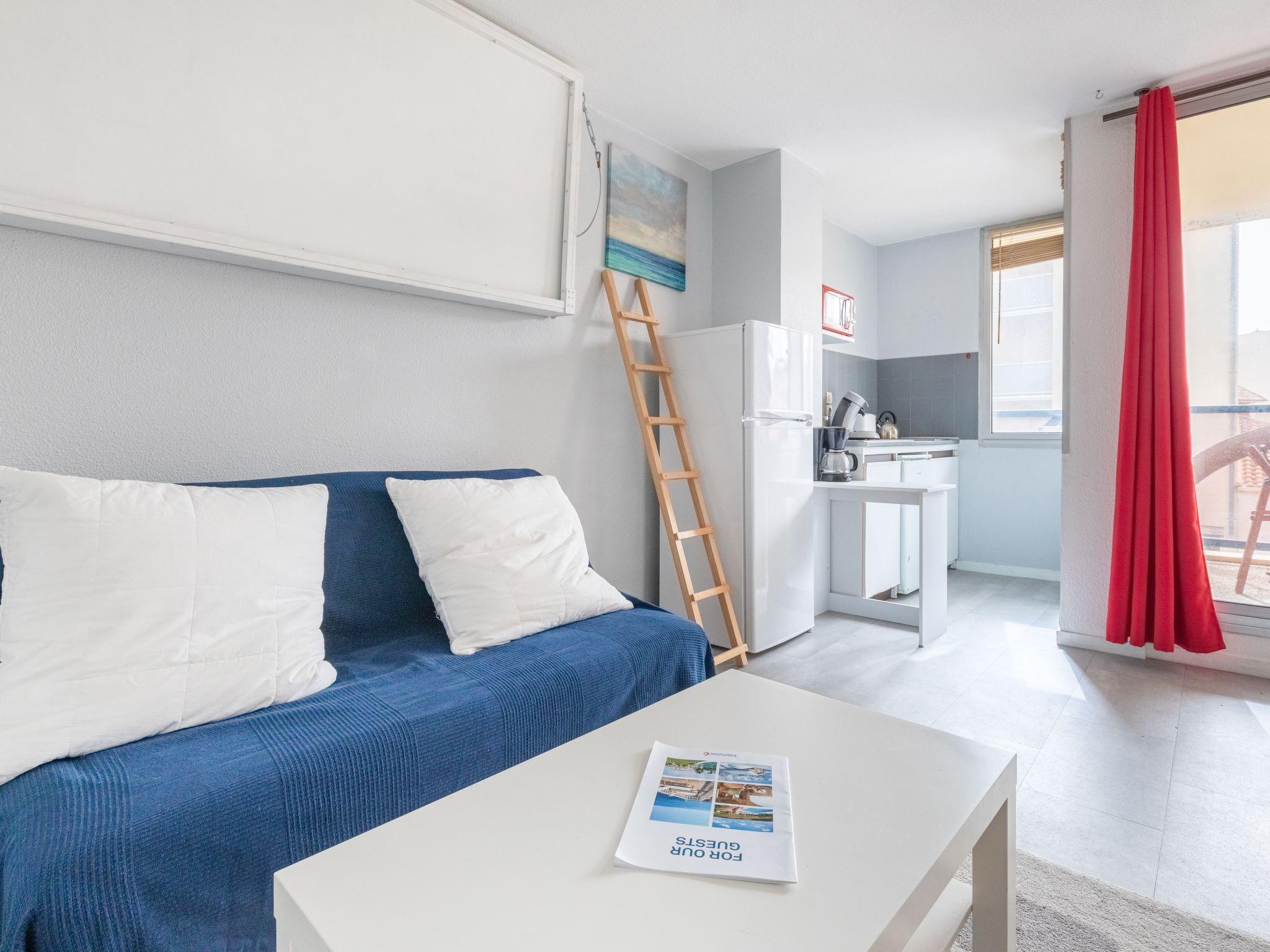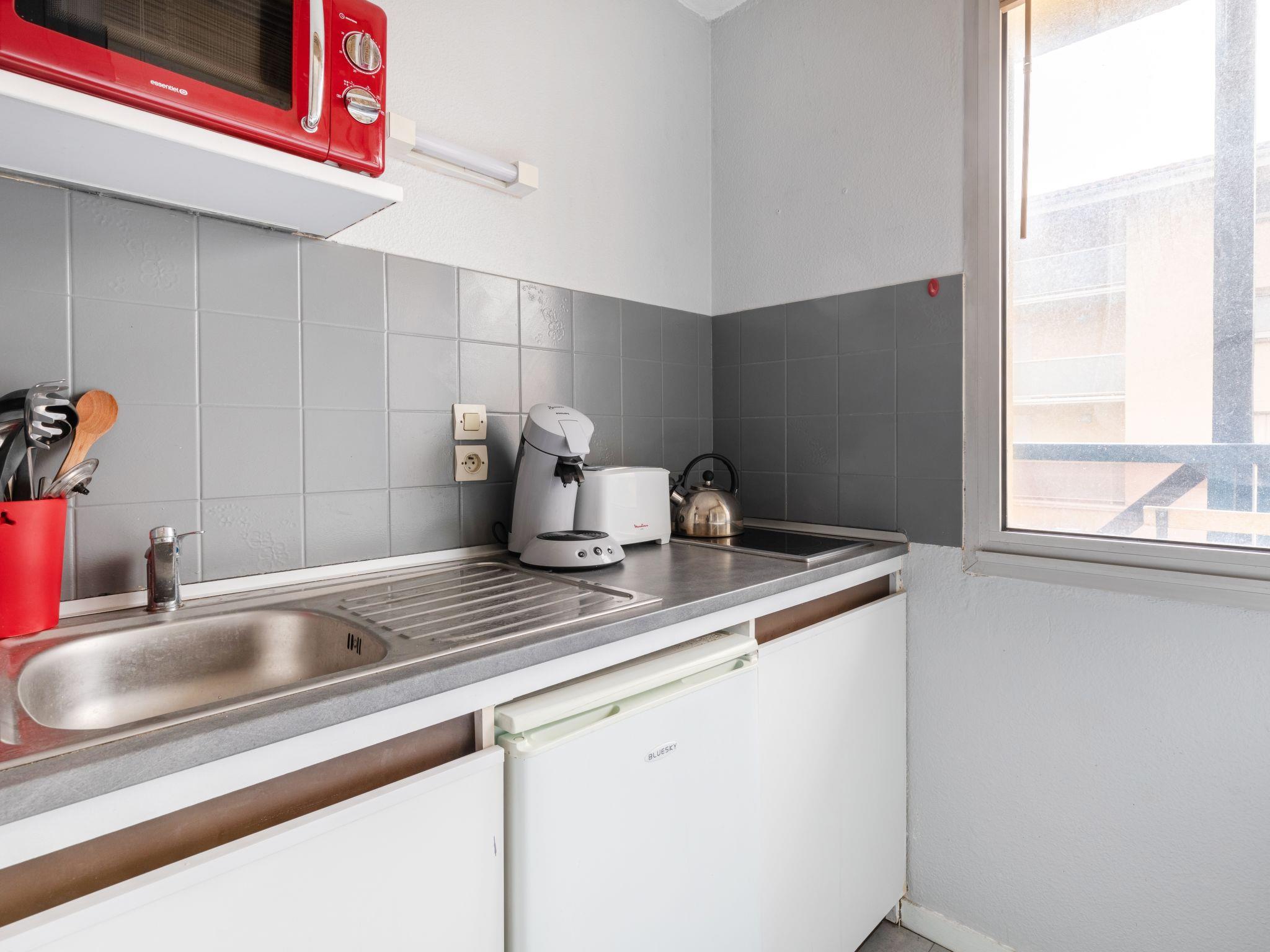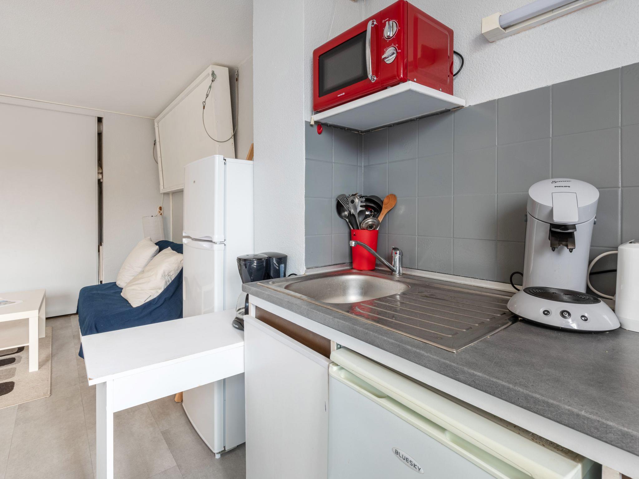 2-room apartment 29 m2 on 1st floor, south facing position. Practical furnishings: living/dining room with 1 double sofabed (140 cm, length 190 cm), TV. Exit to the balcony. 1 room with 1 french bed (140 cm, length 200 cm). Kitchenette (2 induction hot plates, toaster, kettle, microwave, electric coffee machine, Capsules for coffee machine (Senseo) extra). Shower/WC. Heating. Small balcony 5 m2, south facing position. Balcony furniture. Facilities: washing machine. Internet (WiFi, extra). Parking space n 5 (fenced 1 car). Please note: non-smokers only. Maximum 1 pet/ dog allowed. Smoke alarm.
