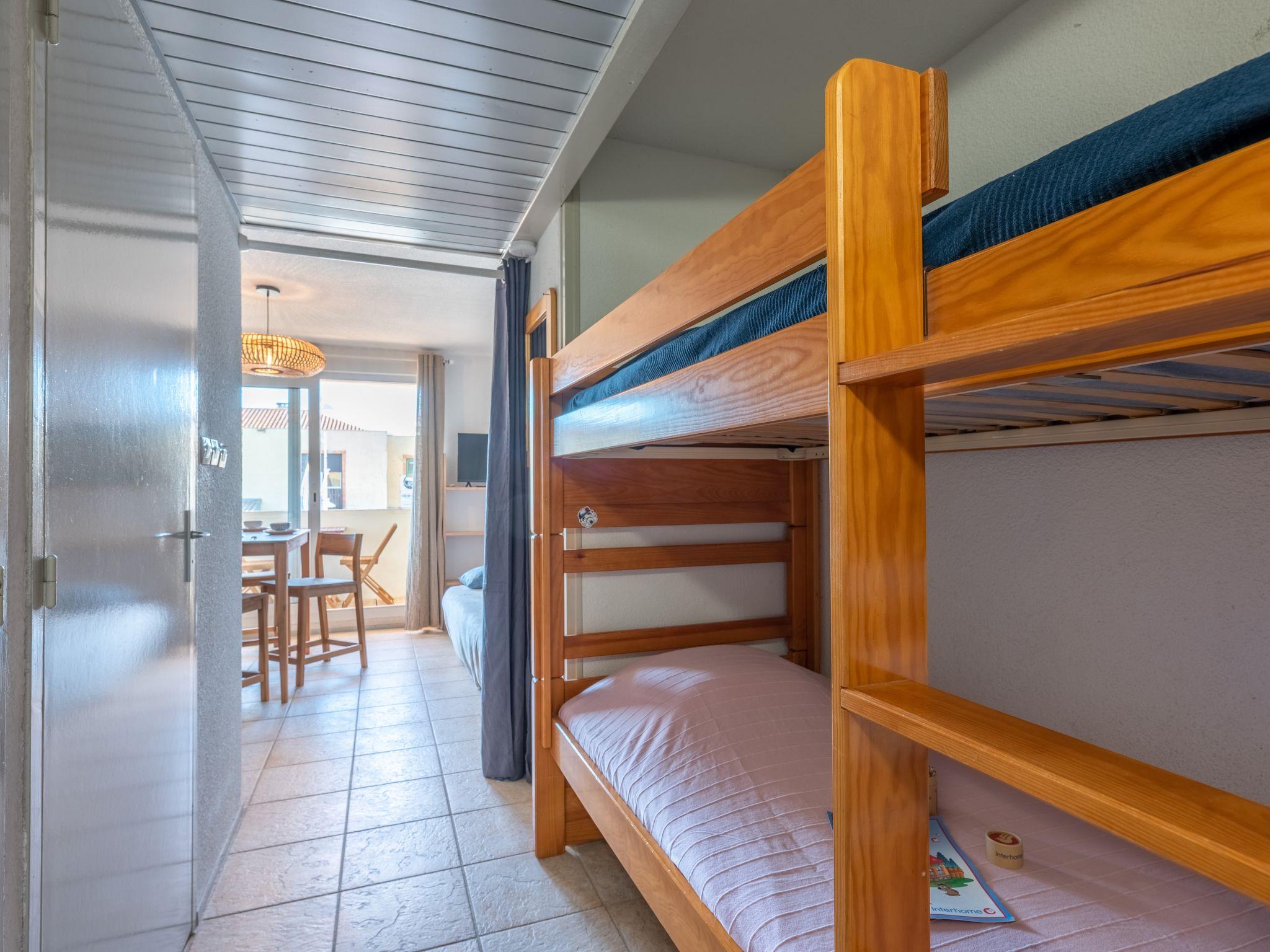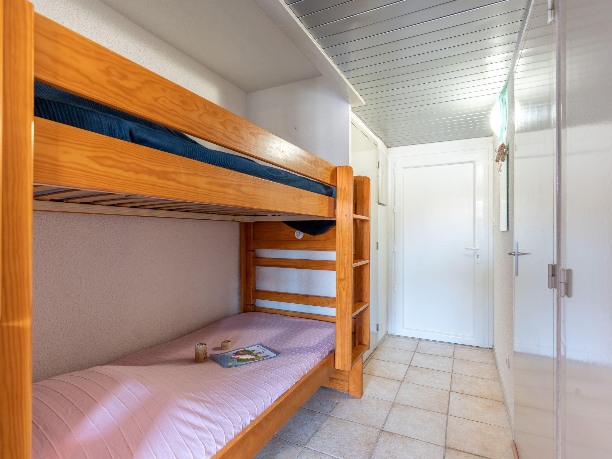 2-room apartment 31 m2 on 1st floor. Living/dining room with TV (flat screen). Exit to the balcony. 1 room with 1 double bed (140 cm, length 190 cm). Entrance hall with 1 x 2 bunk beds (90 cm, length 190 cm). Open kitchen (oven, 4 ceramic glass hob hotplates, toaster, kettle, microwave, electric coffee machine, Capsules for coffee machine (SENSEO) extra) with dining table. Shower, sep. WC. Heating. Balcony 5 m2, south facing position. Balcony furniture. Side view of the sea. Facilities: Internet (WiFi, extra). Parking space n 110. Please note: non-smokers only. Maximum 1 pet/ dog allowed. Smoke alarm. Offer by a private individual according to Art. 155, IV of CGI.