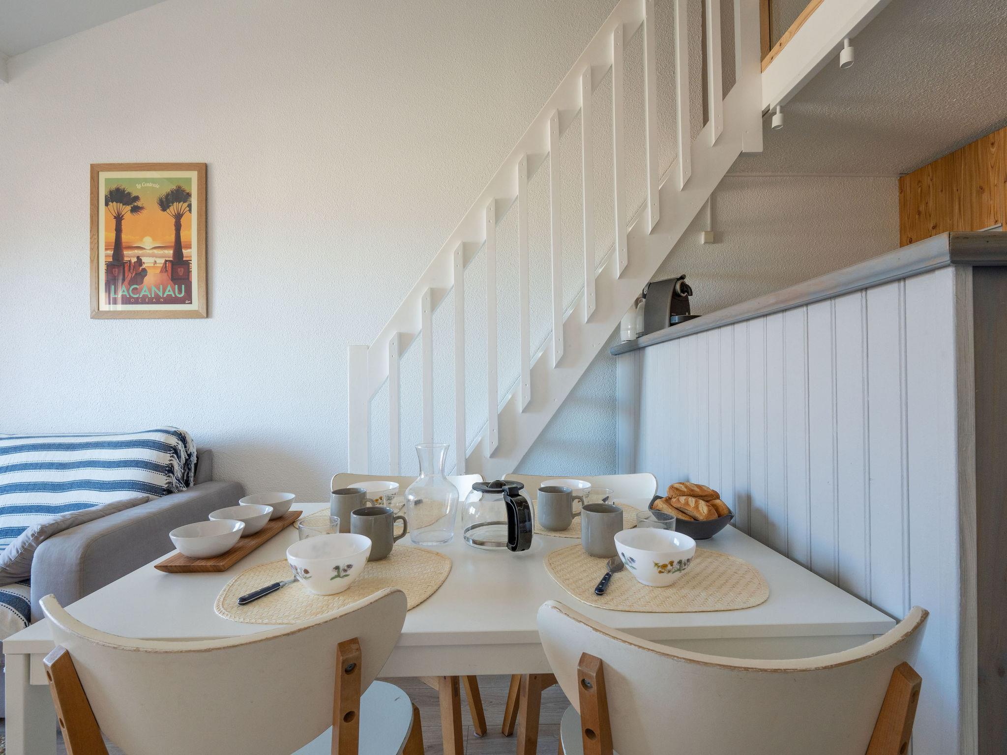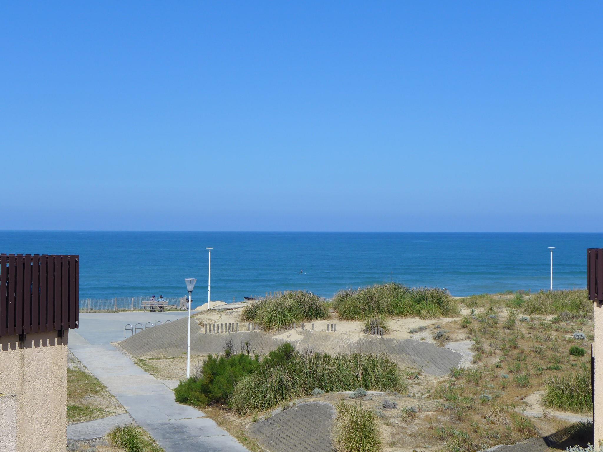Apartment block "Les Maisons de l'Océan", 3 storeys. 500 m from the centre, 45 m from the sea, 45 m from the beach. Parking space or garage only for small to medium-sized cars. Shop 500 m, supermarket 600 m, restaurant, bakery, bicycle rental 500 m, bus stop "Salle l'Escoure Océan" 900 m. Golf course (18 hole) 4 km, surf school 100 m, tennis 2 km, riding stable 15 km. Please note: Additional accommodations can be booked.