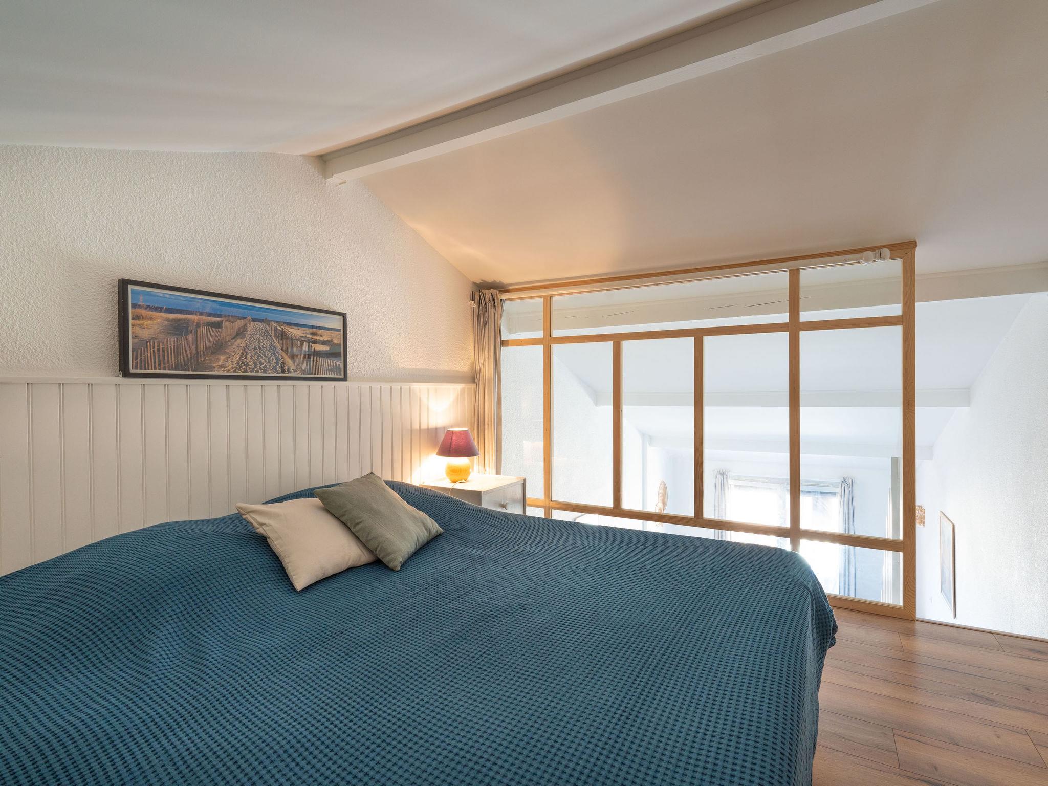 3-room penthouse 38 m2 on 2 levels on 2nd floor, north-west facing position. Comfortable furnishings: living/dining room with TV. Exit to the balcony. 1 room with 1 french bed (140 cm, length 190 cm). Kitchenette (oven, dishwasher, 2 induction hot plates, kettle, microwave, electric coffee machine, Capsules for coffee machine (Nespresso) extra). Shower/WC. Heating. Upper floor: (steep stair) with sloping ceilings, 1 open room, ceiling height 180 - 220 cm with 1 french bed (180 cm, length 190 cm). Balcony 8 m2, north facing position and west facing position. Balcony furniture. View of the sea. Facilities: washing machine, iron, hair dryer. Internet (WiFi, free). Please note: non-smokers only. Smoke alarm.