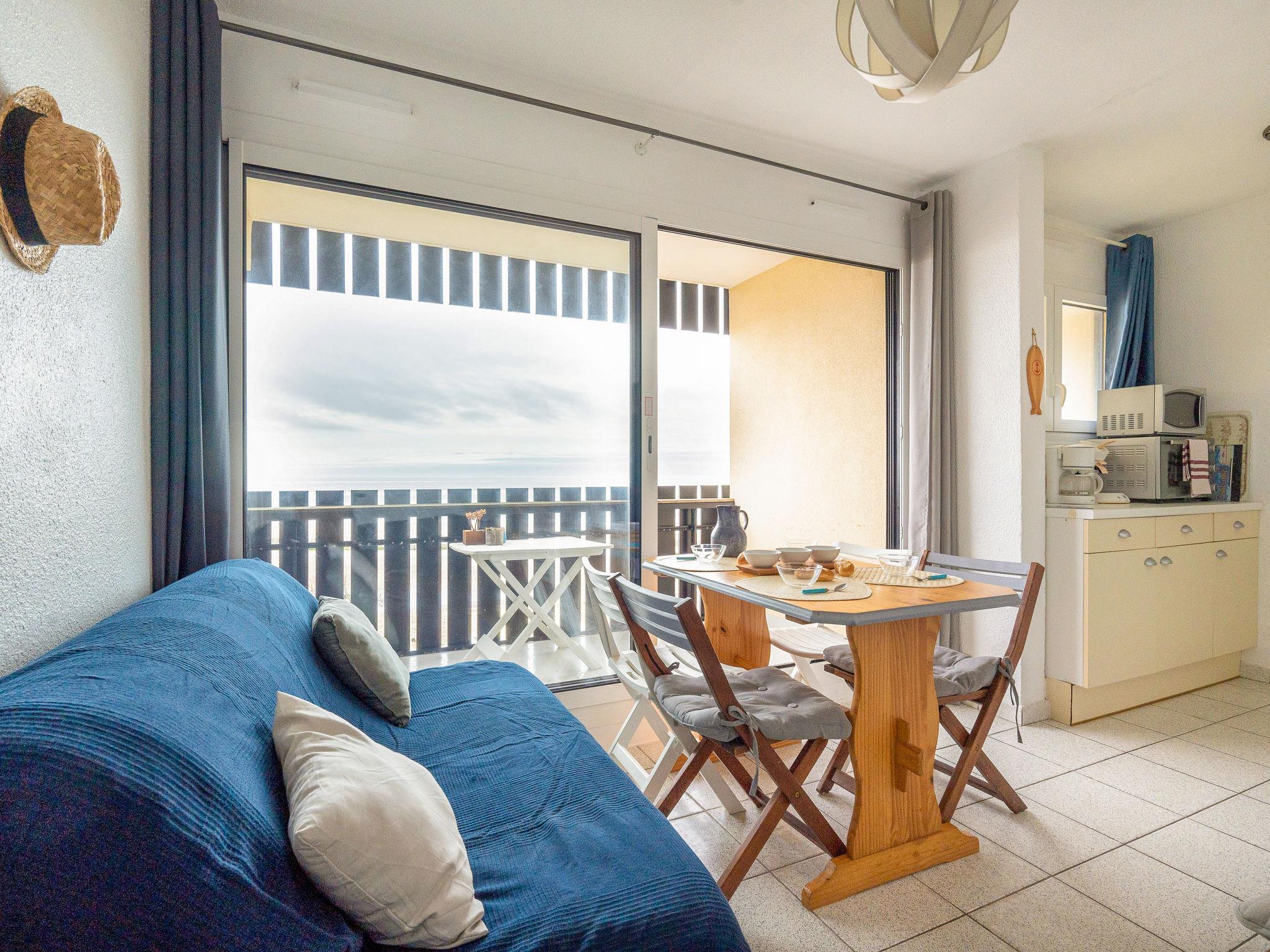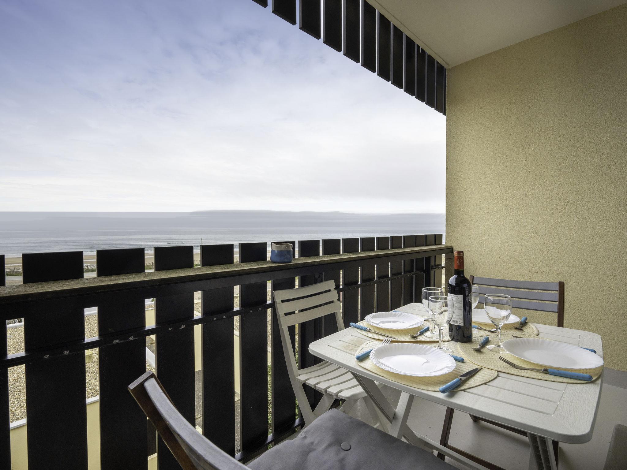 1-room studio 20 m2 on 1st floor. Living/dining room with TV (flat screen). Exit to the balcony. Alcove with 1 french bed (140 cm, length 190 cm). Kitchen (4 hot plates, oven, toaster, kettle, microwave, electric coffee machine, Capsules for coffee machine (Senseo)). Shower/WC. Heating. Balcony 3 m2, west facing position. Balcony furniture, deck chairs (1). Marvellous view of the ocean. Facilities: washing machine. Internet (WiFi, extra). Parking space n 71. Please note: non-smokers only. Smoke alarm. Instead of an enclosed bedroom, some sleeping areas are located in an open-plan area (gallery, alcove, etc.). Offer by a private individual according to Art. 155, IV of CGI.