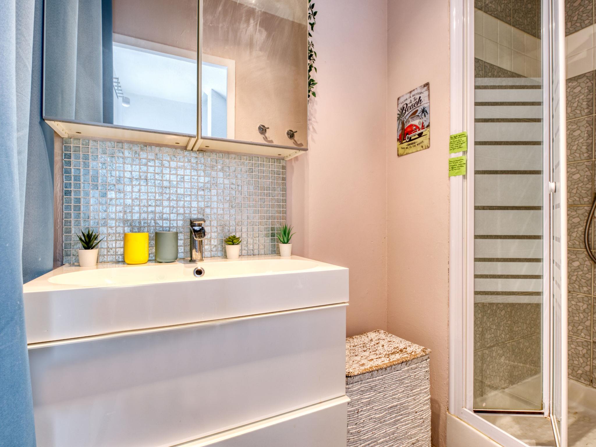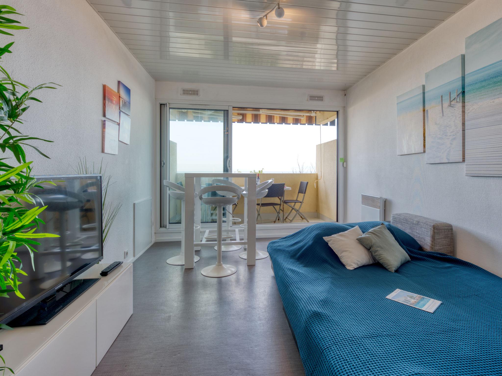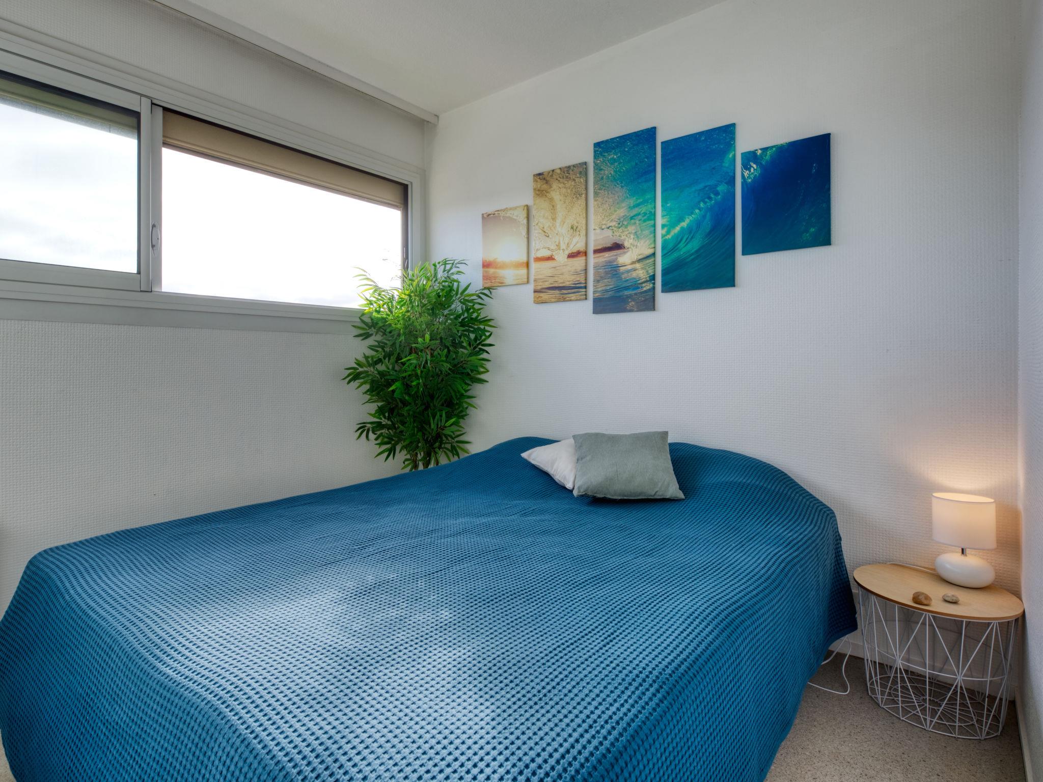 2-room apartment 37 m2 on 2 levels on 1st floor. Comfortable furnishings: 1 room with 1 french bed (140 cm, length 190 cm). On the lower ground floor: living/dining room with 1 double sofabed (140 cm, length 200 cm), TV (flat screen). Exit to the balcony. Kitchen (2 hot plates, toaster, kettle, microwave, electric coffee machine). Shower, sep. WC. Heating. Balcony 7 m2, west facing position. Balcony furniture. Marvellous view of the ocean. Facilities: washing machine, dryer. Internet (WiFi, free). Parking space n 39. Please note: non-smokers only. Smoke alarm. Offer by a private individual according to Art. 155, IV of CGI.