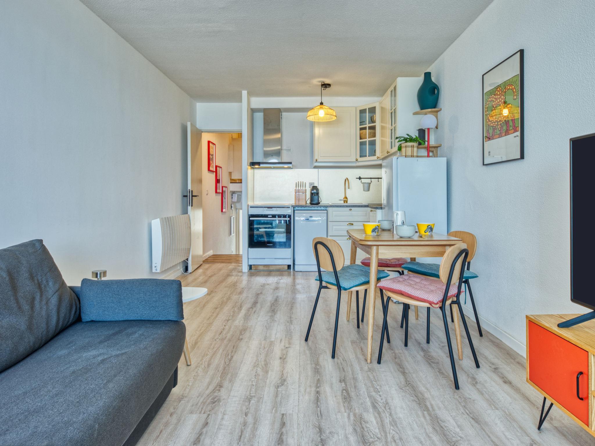 3-room apartment 51 m2 on 3 levels on 3rd floor, west facing position. Renovated in 2024, comfortable furnishings: living/dining room with 1 double sofabed (140 cm, length 190 cm), dining table and TV. Exit to the balcony. Open kitchen (oven, dishwasher, 3 ceramic glass hob hotplates, toaster, kettle, microwave, electric coffee machine). Sep. WC. On the lower ground floor: 1 room with 1 pull-out bed (2 x 90 cm, length 190 cm). Shower. Electric heating. Upper floor: 1 room with 1 french bed (160 cm, length 190 cm). Balcony, west facing position. Balcony furniture. Marvellous view of the sea. Facilities: washing machine, iron, hair dryer. Internet (WiFi, free). Parking space n 442. Please note: non-smokers only. Smoke alarm. Offer by a private individual according to Art. 155, IV of CGI.