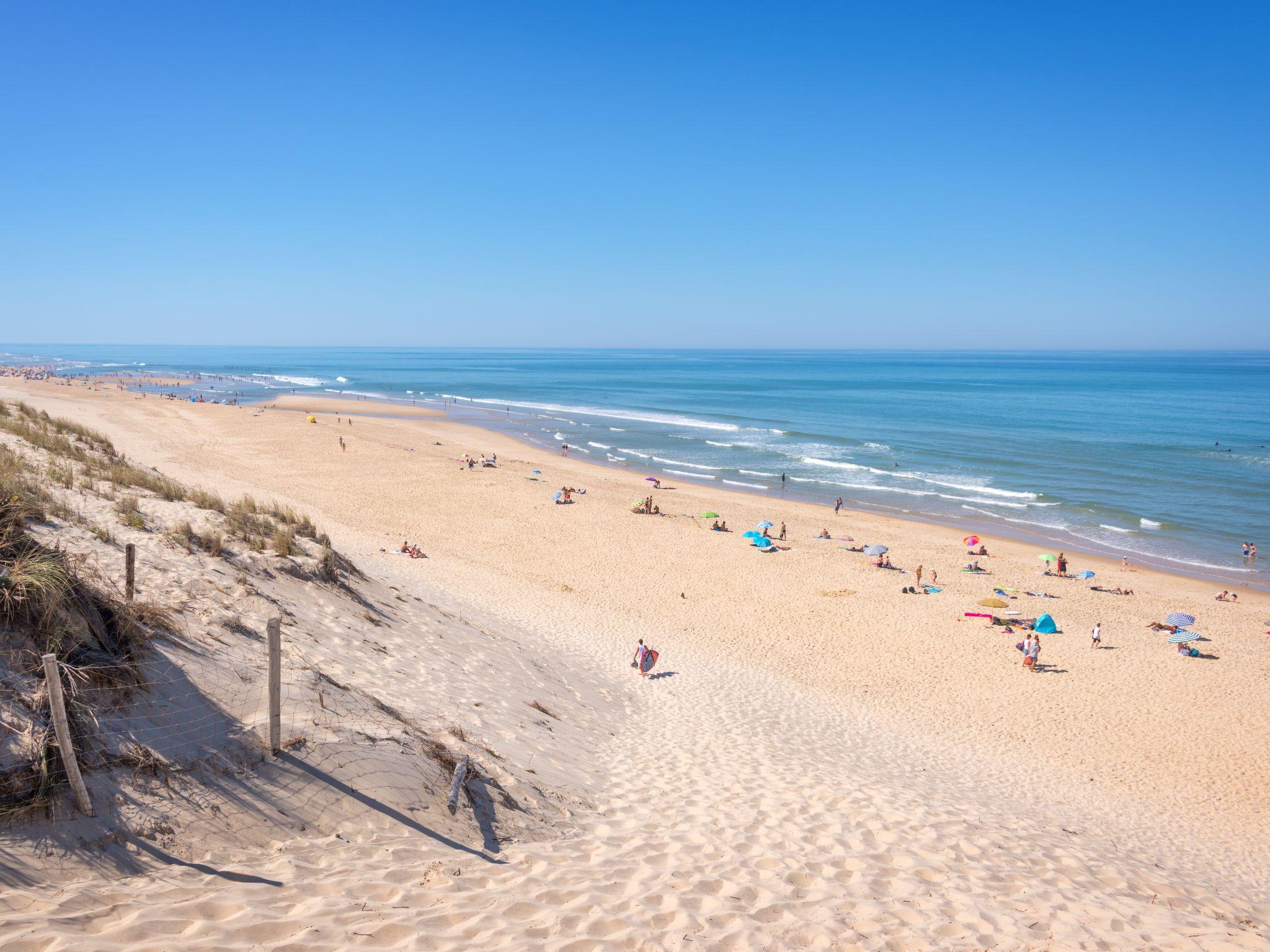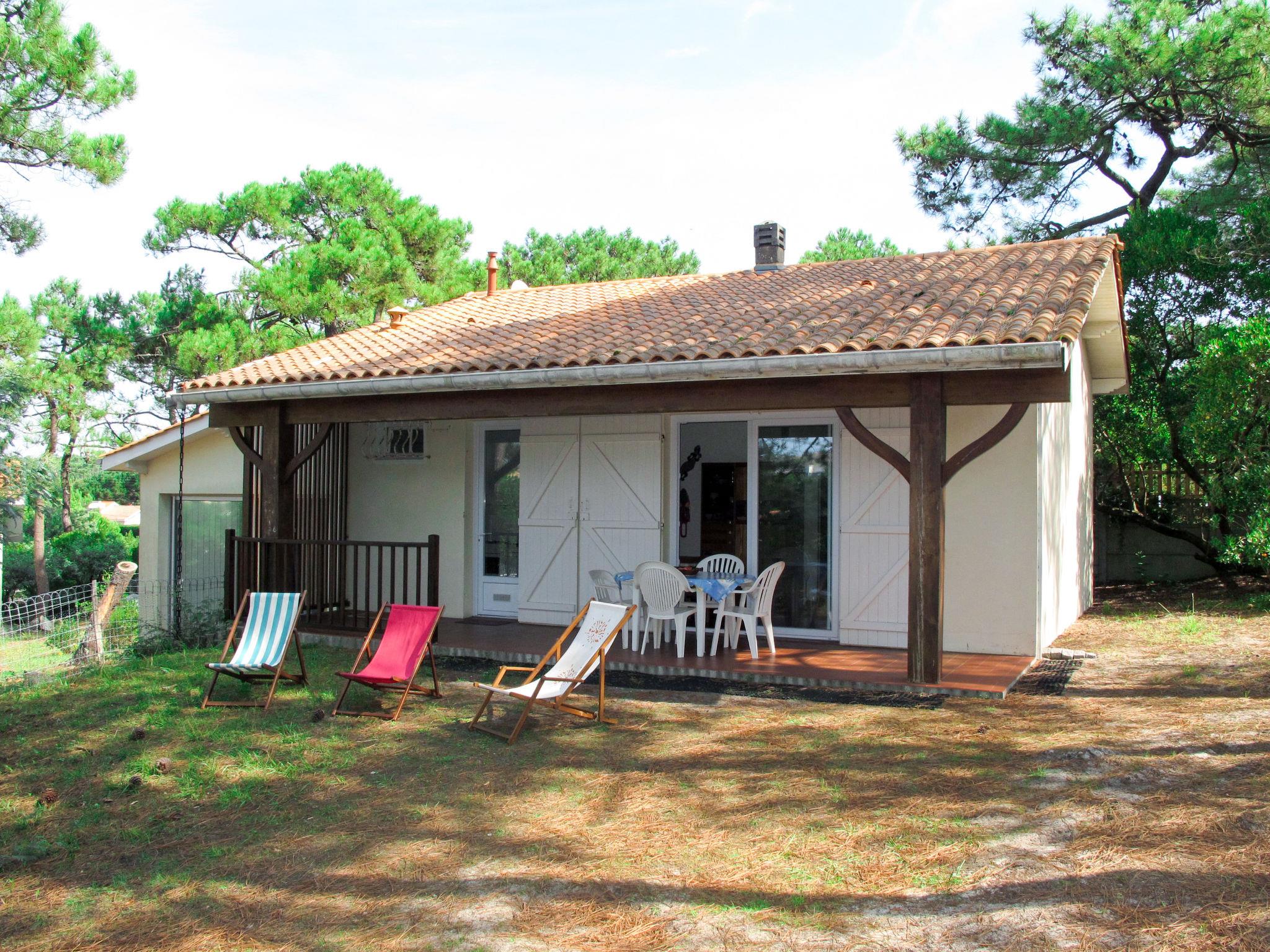 Single-family house "Anne Marie", surrounded by trees. 500 m from the centre of Lacanau-Océan, 12 km from the centre of Lacanau-Ville, 58 km from the centre of Bordeaux, in the residential district, 500 m from the sea, 5 km from the lake, 500 m from the beach. Private: natural state property 500 m2 (fenced) with trees, parking at the house on the premises. Shop, supermarket 500 m, bus stop "Lacanau Océan" 900 m, sandy beach "Lacanau-Océan" 500 m, bathing lake "Lac de Lacanau, Le Moutchic" 5 km. Golf course (18 hole) 4 km, surf school 500 m, tennis 2 km, riding stable 12 km.