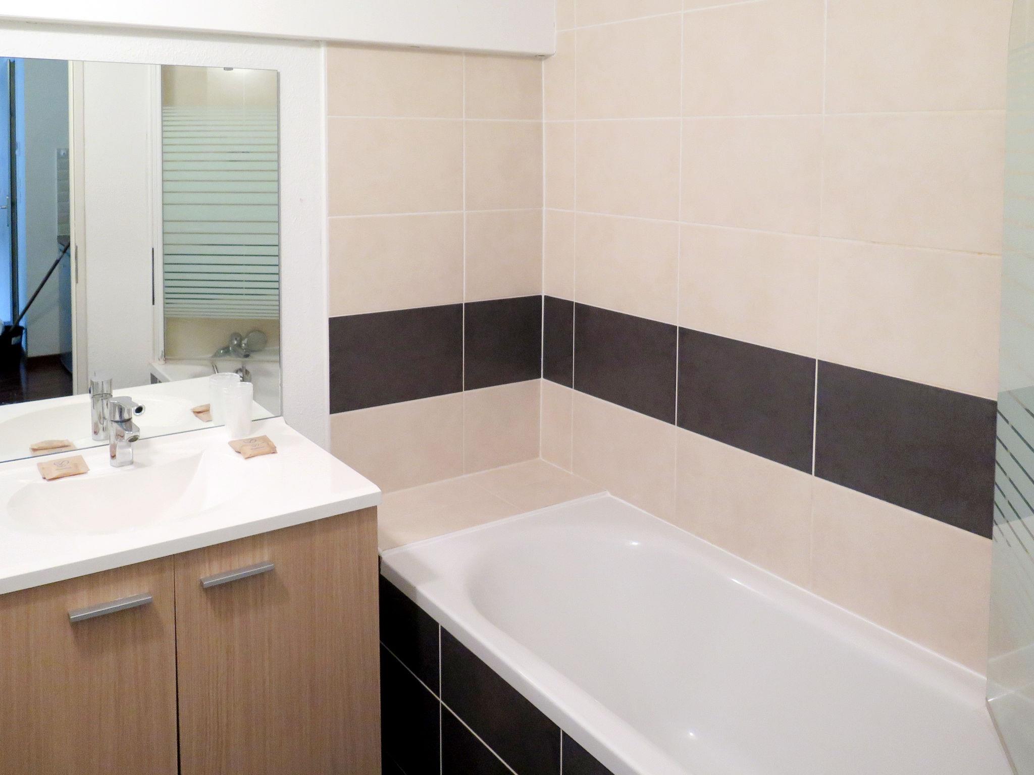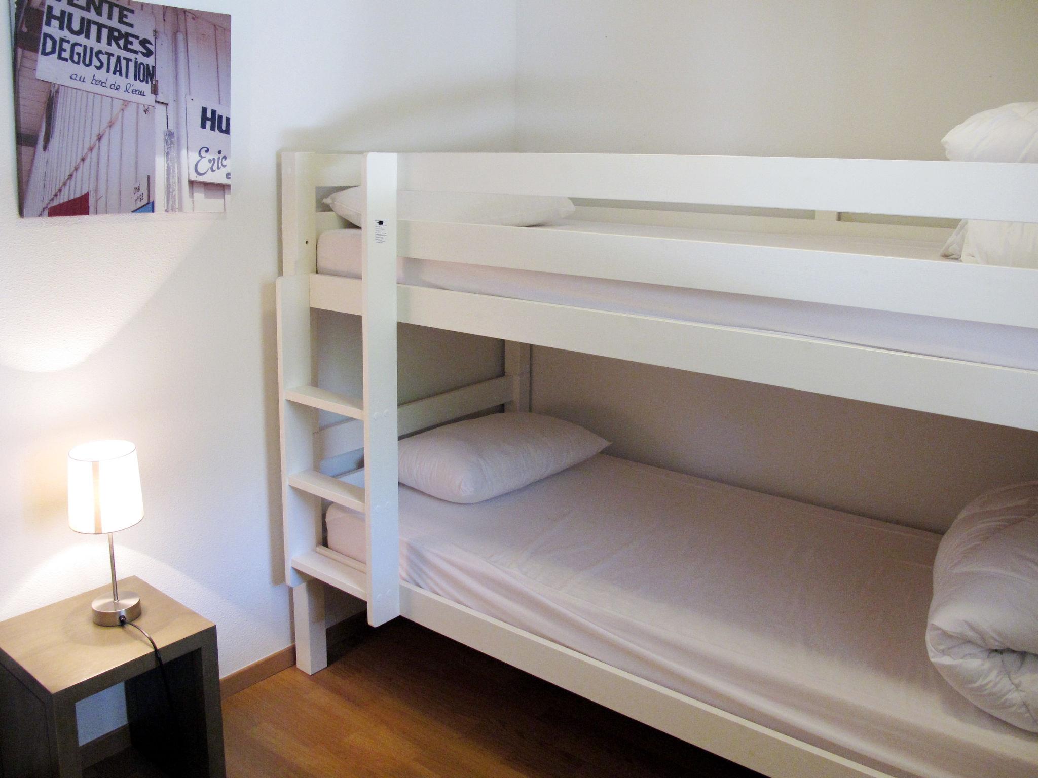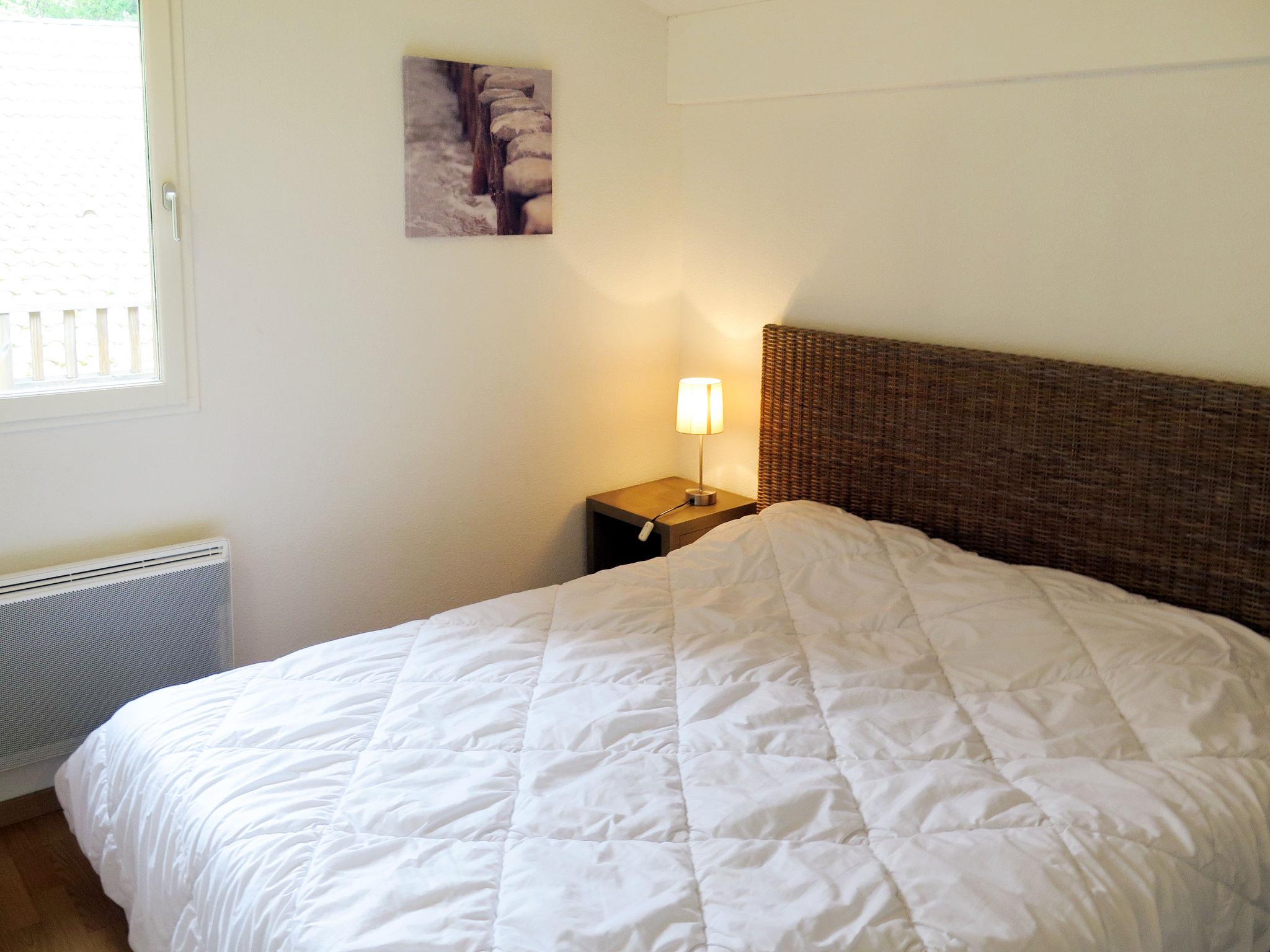 "Les Rives du Lac", 3-room apartment 43 m2. Object suitable for 4 adults. Practical and modern furnishings: living/sleeping room with 1 double sofabed (135 cm), dining table and satellite TV. 1 room with 1 french bed (160 cm). 1 room with 1 x 2 bunk beds. Small, open kitchen (dishwasher, 2 ceramic glass hob hotplates, toaster, kettle, microwave, electric coffee machine). Bath/WC. Electric heating. Balcony or terrace. Terrace furniture, balcony furniture. Facilities: Internet (WiFi, extra). Please note: non-smokers only. Maximum 1 pet/ dog allowed. Smoke alarm. The flats are located on the ground floor or upper floor (access via external staircase).