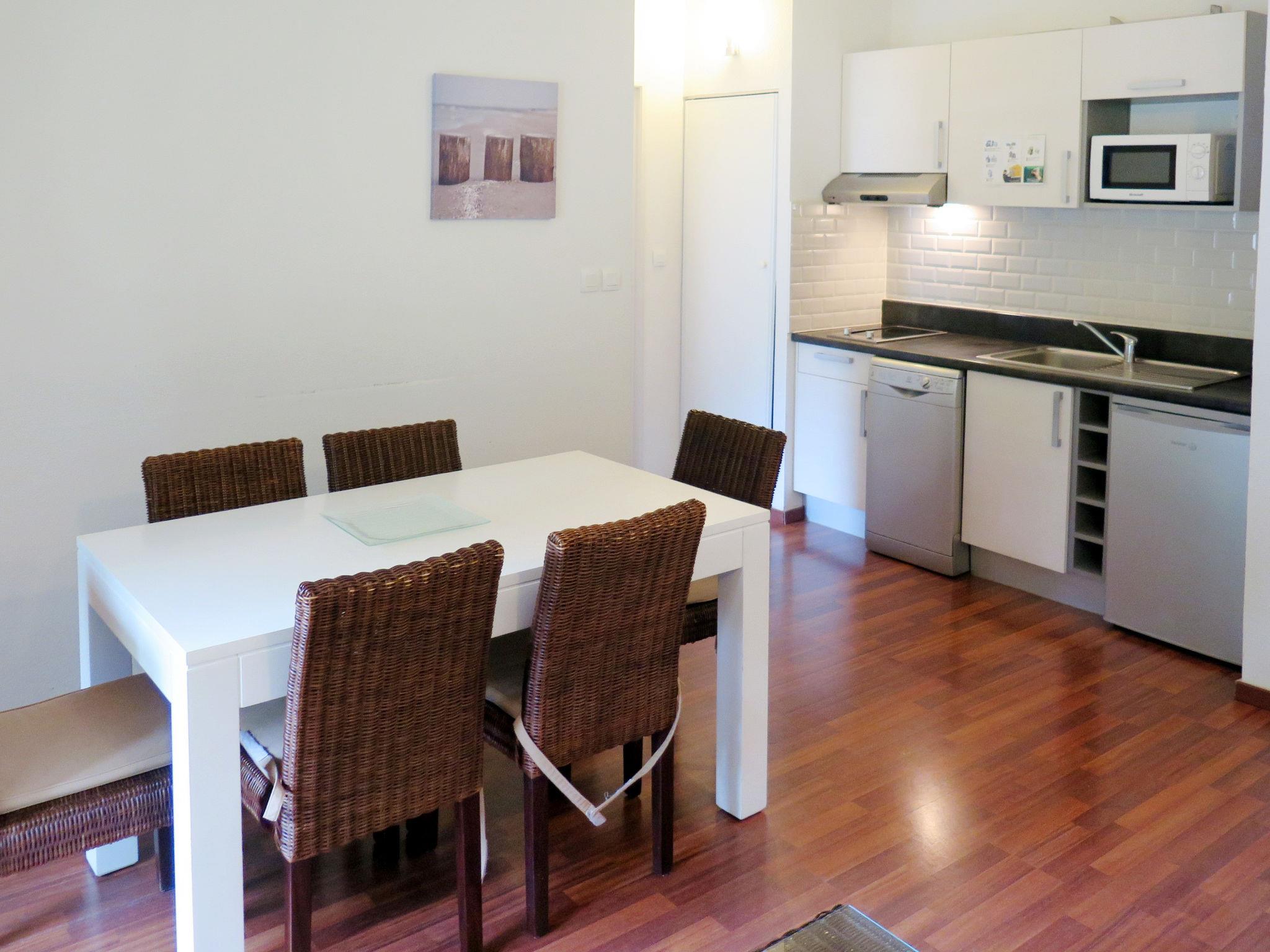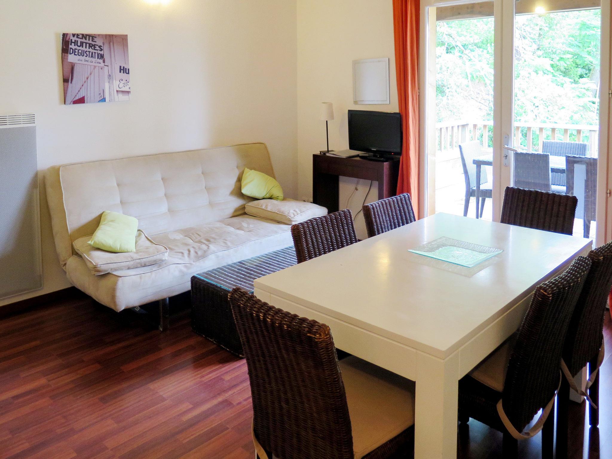 Resort "Les Rives du Lac". 11 houses in the residence. 37 apartments in the residence. 6 km from the centre of Lacanau, 6 km from the centre of Lacanau-Océan, 55 km from the centre of Bordeaux, 7 km from the sea, 150 m from the lake. For shared use: property with plants and trees, swimming pool heated (9 x 6 m, depth 120 cm, seasonal availability: 01.Jun. - 30.Sep.). Boccia, terrace. In the complex: reception, WiFi, sauna, steam room, washing machine (extra), tumble dryer (for shared use, extra). Parking (limited number of spaces). Supermarket 6 km, restaurant 200 m, sandy beach "Lac de Lacanau/Plage Le Moutchic" 400 m. Golf course (18 hole) 4 km, riding stable 4 km. Please note: the photograph shows a typical example. The holiday properties may differ in living space, floorplan, equipment and furnishing. Access to the sauna, steam bath permitted from age 18 only.
