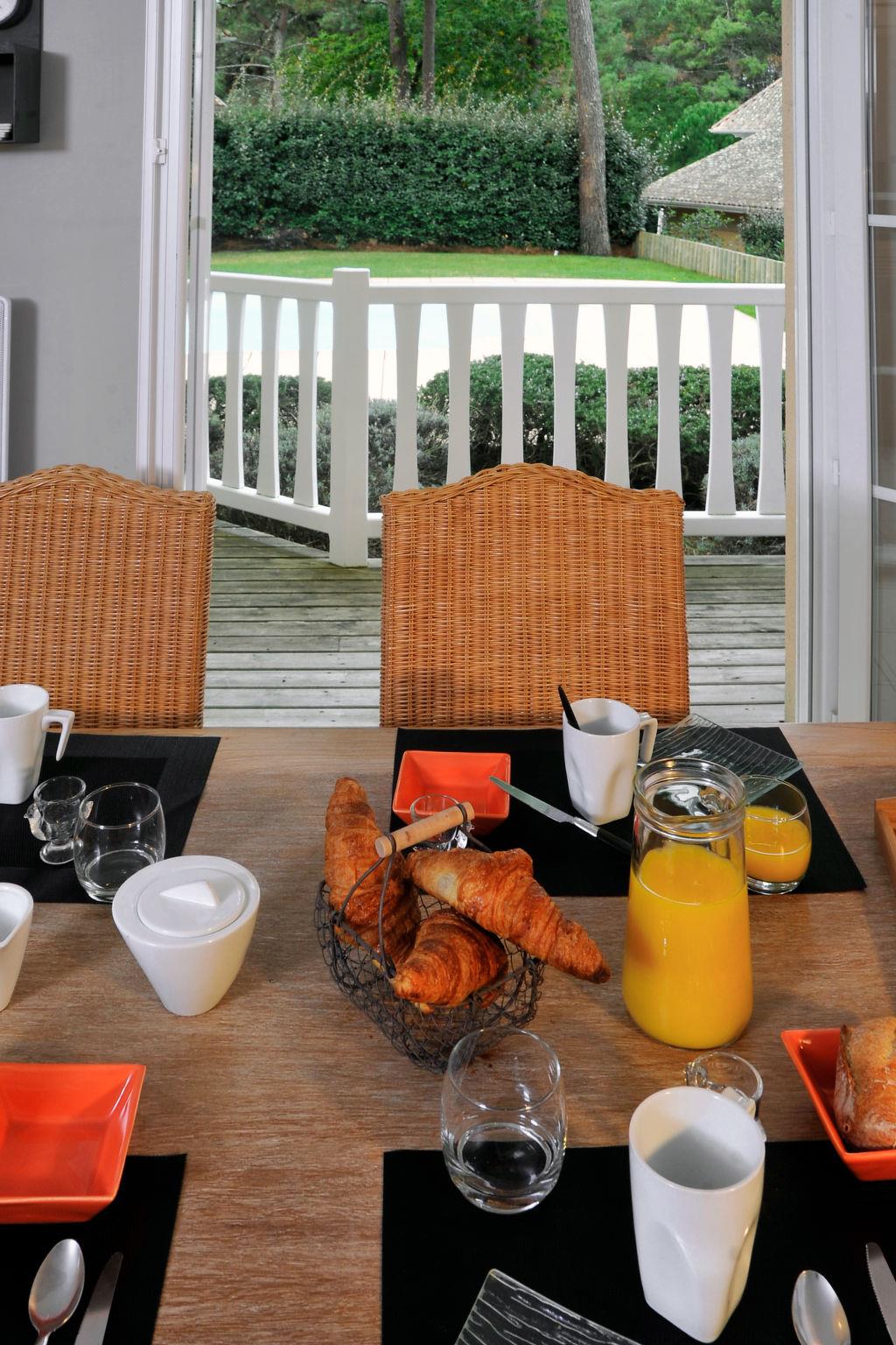 Resort "Eden Club". 20 houses in the resort. 2.5 km from the centre of Lacanau-Océan, 12 km from the centre of Lacanau, 58 km from the centre of Bordeaux, 2.5 km from the sea. For shared use: property 2 ha with trees. Private: natural state property 500 m2, swimming pool (8 x 4 m, seasonal availability: 15.Apr. - 15.Oct.) with internal staircase. Terrace. 20 m long bumpy motor access to the house (via unmade road). Parking (for 2 cars). Shop 2.5 km, bus stop "Marie Curie" 2.6 km, sandy beach 2.5 km. Golf course (18 hole) 200 m, riding stable 50 m. Please note: the photograph shows a typical example. The holiday properties may differ in living space, floorplan, equipment and furnishing. Rental of a mobile WIFI hotspot.