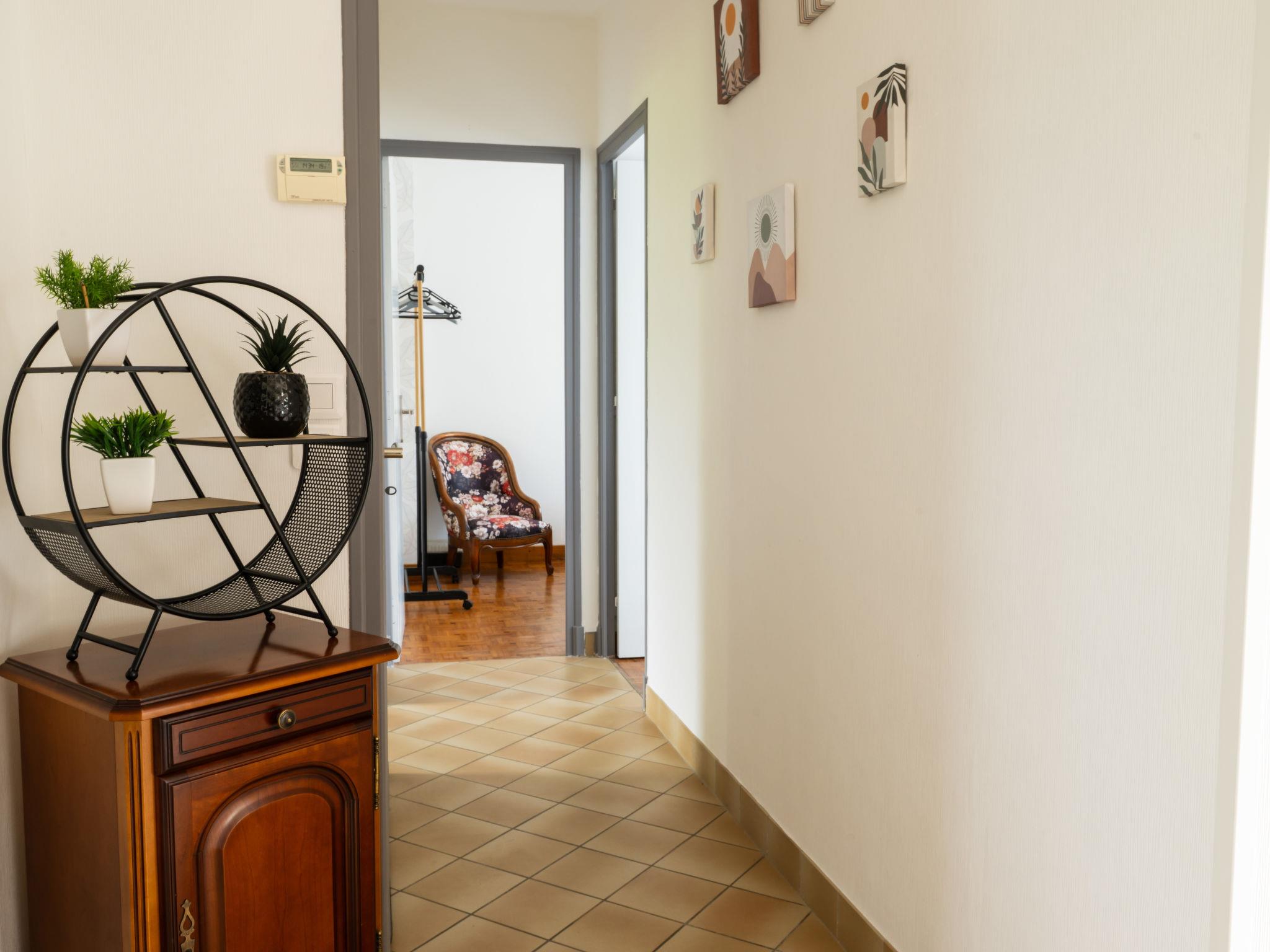 4-room house 100 m2. Comfortable and beautiful furnishings: upper floor: living/dining room with TV (flat screen). 2 rooms (160 cm, length 200 cm). 1 room (140 cm, length 190 cm). Open kitchen (oven, dishwasher, 4 gas rings, toaster, kettle, microwave, electric coffee machine, Capsules for coffee machine (SENSEO) extra). Shower, sep. WC. Oil heating. Balcony 8 m2, south-west facing position. Balcony furniture, barbecue. Facilities: Internet (WiFi, free). Please note: 2 small pets/ dogs allowed. Smoke alarm. Access to the house via 11 steps. Offer by a private individual according to Art. 155, IV of CGI.