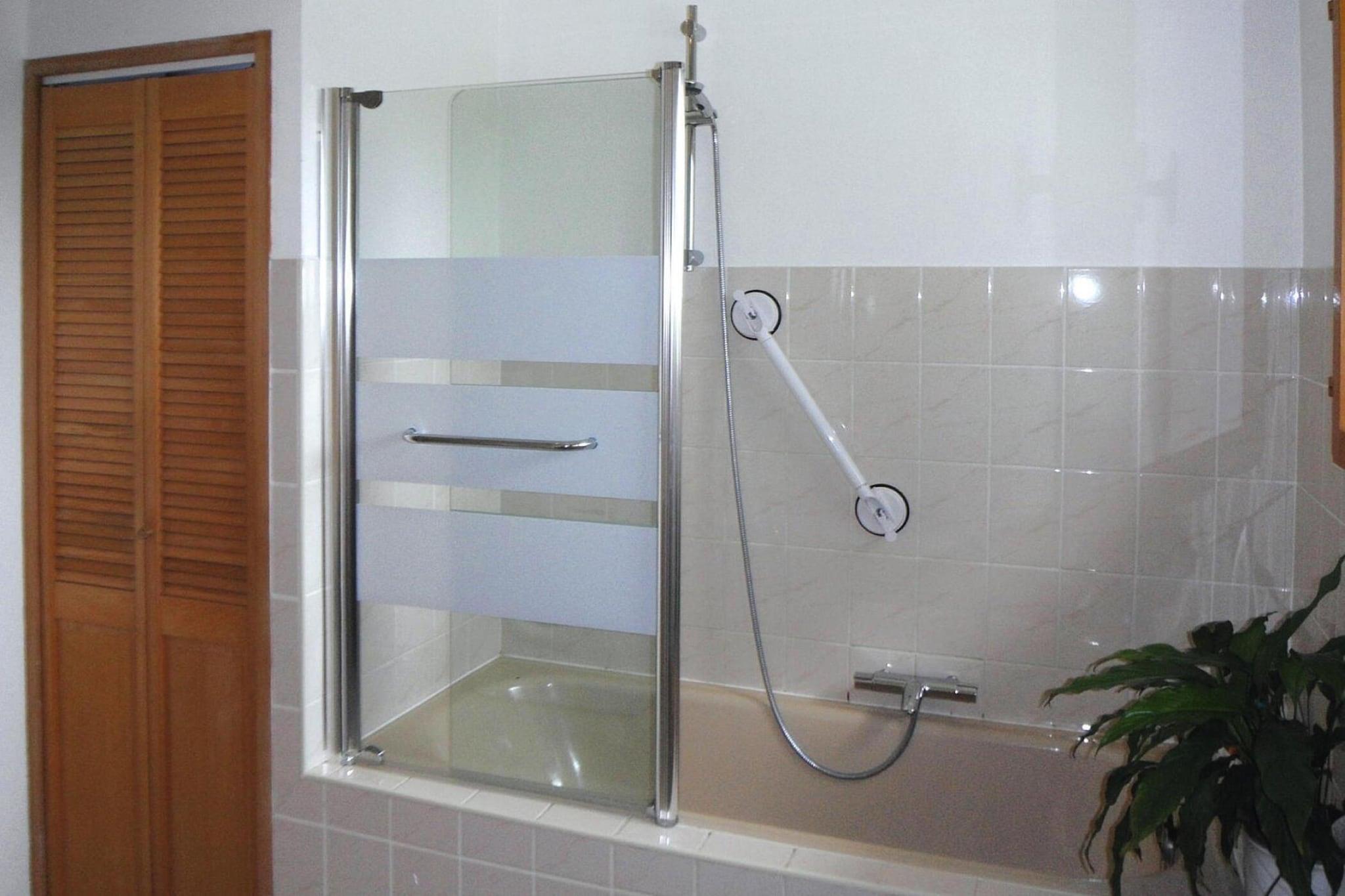 Ground floor: (Living room(double sofa bed(160 x 200 cm), TV, DVD player, radio, CD player), Kitchen(stove(gas), seating area, electric kettle, toaster, coffee machine, oven, microwave, dishwasher, fridge-freezer), bedroom(double bed(140 x 190 cm)), bathroom(bath tub), toilet) grill, washing machine, heating(central), bicycle storage, garden furniture, sun loungers, parking, high chair, baby crib(free)