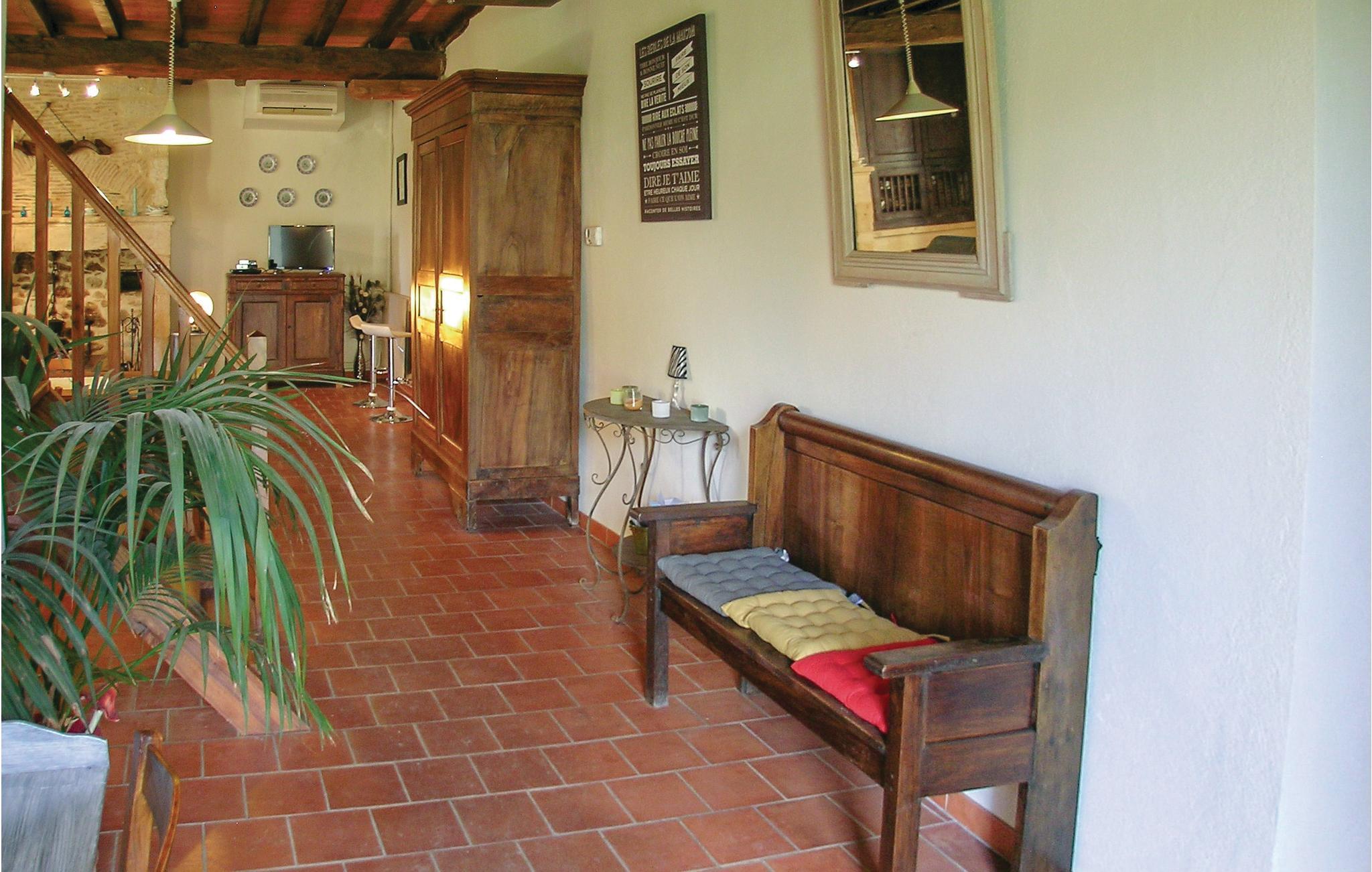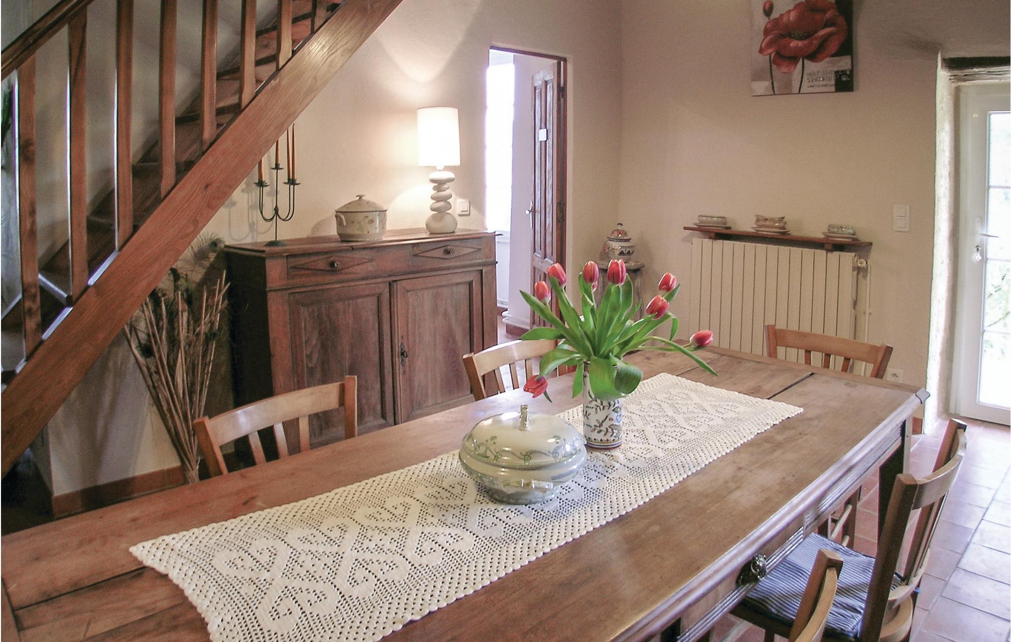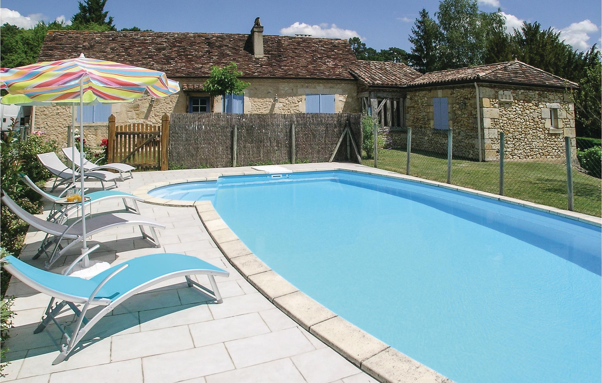 Schönes Ferienhaus aus Stein. 12 km nördlich von Bergerac gelegen, am Rande des ruhigen Dorfs Laveyssière. Das Gebäude, das früher als Festhaus diente, wurde von den Eigentümern liebevoll instand gesetzt, hat aber den Charme der Vergangenheit bewahrt, der u. a. durch ein altes Waschbecken, einen Kamin aus Stein, steinerne Wände und Holzbalken zum Ausdruck kommt. Ihr Privatpool mit Blick auf die ländliche Umgebung und das unterhalb gelegene Dorf befindet sich zwei Fußminuten vom Objekt entfernt. Die beiden Schlafzimmer im Erdgeschoss sind komfortabel ausgestattet und haben in den heißen Sommermonaten eine angenehm kühle Temperatur. Morgens können Sie Ihren Kaffee und Ihre Croissants auf der überdachten Terrasse genießen. Abgesehen von einem Traktor ab und an ist in der näheren Umgebung nur sehr wenig Verkehr: genau die richtige Voraussetzung für viele angenehme Spaziergänge vor einer ländlichen Kulisse. Aktive Urlauber können sich auch in dem 1 km entfernten Seilgarten Acrozabres austoben, der Herausforderungen für Besucher jeden Alters bietet. Monbazillac (22 km) lädt zu einem Schlossbesuch und Weinproben ein, und in Bergerac (12 km) erwarten Sie Restaurants und weitere Annehmlichkeiten. Das Restaurant Clos des Elfes (200 m) ist ganzjährig geöffnet. Issigeac, Golfplatz 35 km, Château des Vigiers 31 km, Eymet 39 km. Brantôme (65 km), auch als das Venedig des Périgord bekannt, ist ein herrliches Ausflugsziel: Souvenirläden, Restaurants, Kanuverleih, geführte Bootsausflüge und eine wunderschöne Abtei. Dieses Ferienobjekt mit Privatpool verspricht einen herrlichen Urlaub in der Dordogne.