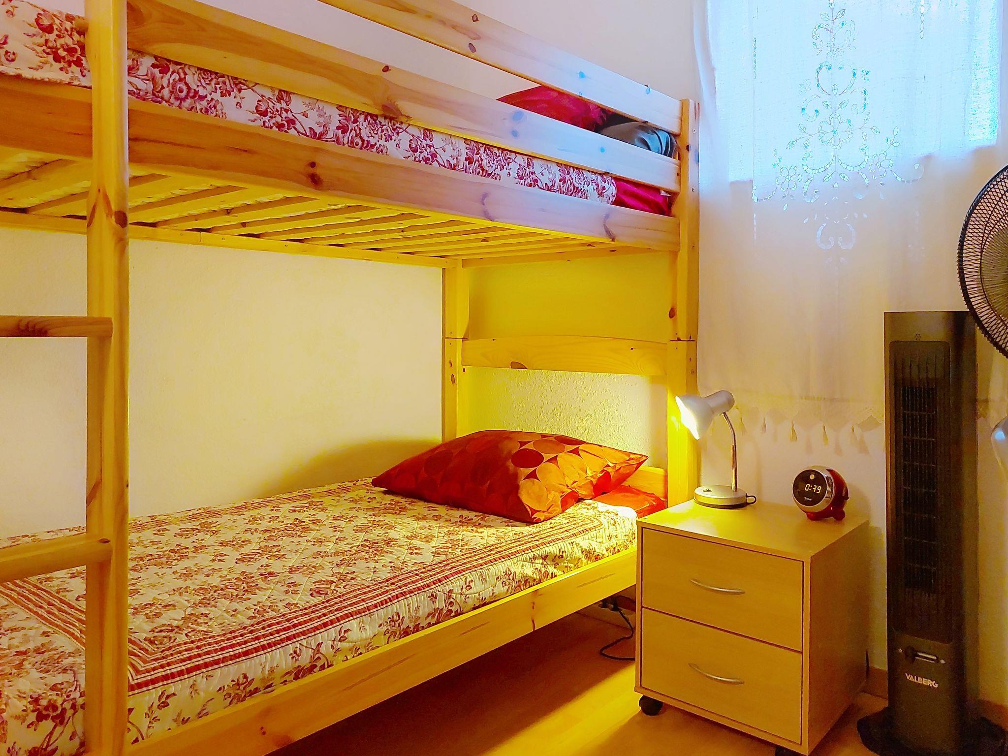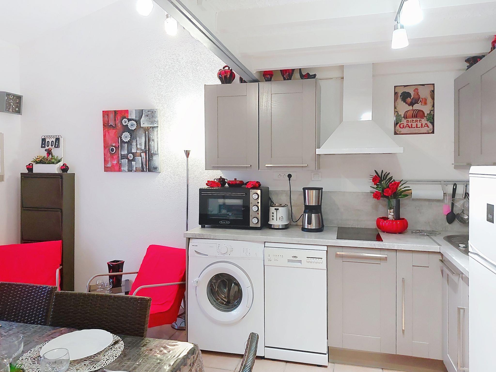 2-room terraced house 35 m2. Living/dining room with TV (flat screen), air conditioning. 1 room with 1 french bed (1 x 140 cm). Kitchenette (mini-oven, dishwasher, 2 ceramic glass hob hotplates, freezer, electric coffee machine). Shower/WC. Heating, air-conditioning. Upper floor: gallery. Sleeping alcove with 1 x 2 bunk beds (90 cm). Terrace 20 m2. Terrace furniture, barbecue. Facilities: washing machine, baby cot for up to 3 year olds, hair dryer. Internet (WiFi, extra). Parking. Please note: maximum 1 pet/ dog allowed. Smoke alarm. Instead of an enclosed bedroom, some sleeping areas are located in an open-plan area (gallery, alcove, etc.).