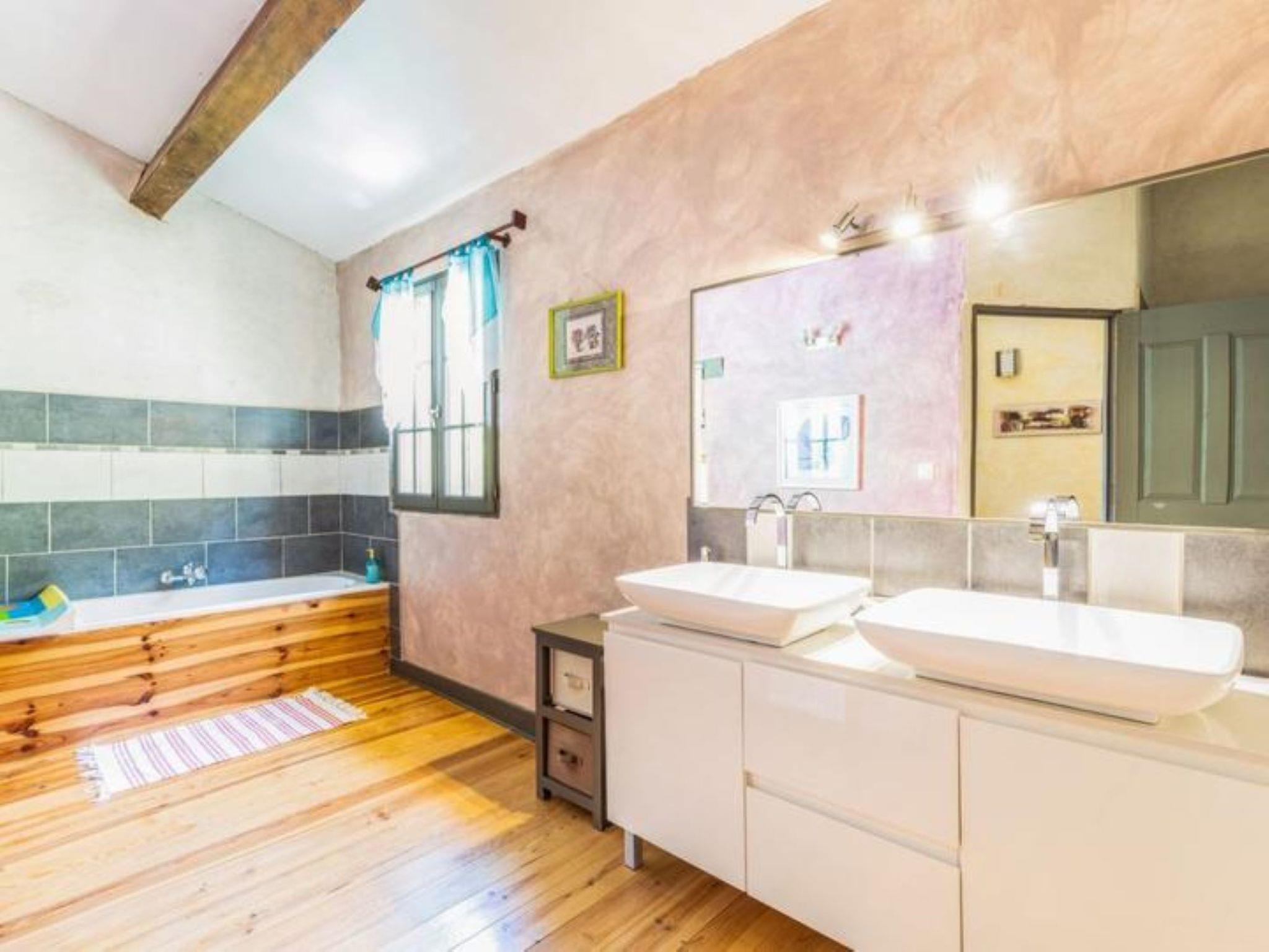 "L'Oliveraie", 5-room villa 250 m2 on 2 levels. Living/dining room 55 m2 with TV and flat screen. Exit to the garden. 1 room with 1 french bed (160 cm, length 200 cm), shower. Exit to the garden. 1 room with 1 french bed (160 cm, length 200 cm). Open kitchen (4 hot plates, oven, dishwasher, microwave, electric coffee machine, Capsules for coffee machine (Nespresso) extra). Shower, sep. WC. Heating. Upper floor: 1 room with 2 beds (90 cm), shower. 1 room with 1 french bed (160 cm, length 200 cm), TV (flat screen). Bath/shower, sep. WC. Garden. Terrace furniture. Facilities: washing machine, iron, children's high chair, baby cot for up to 2 year olds, hair dryer. Internet (WiFi, free). Parking (2 cars). Please note: suitable for families. Maximum 1 pet/ dog allowed. Smoke alarm, fire extinguisher. Please note: electric charging station 2km away in Caromb. No charging possible in the villa.