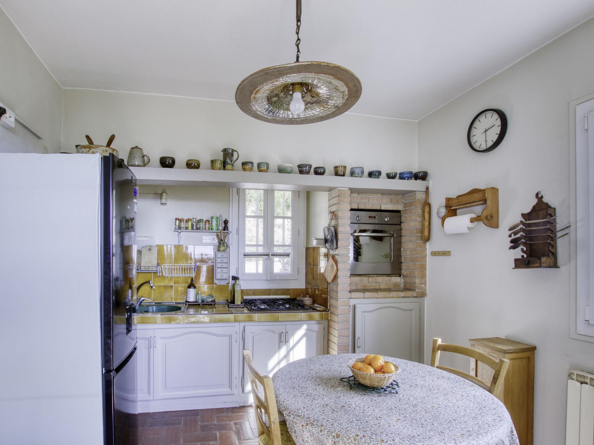 Single-family house "Le Mas de la Poterie", surrounded by trees and vineyards. In the district of Beausset vieux, on the outskirts, 4 km from the centre, in a quiet, sunny position on top of a hill, 9 km from the sea. Private: garden 6'000 m2 (not fenced), swimming pool (10 x 5 m, depth 100 - 170 cm, seasonal availability: 01.May. - 14.Oct.) with salt water and alarm system. Outdoor shower, table tennis (swing), pool maintenance by the owner/gardener. Parking (for 2 cars). Grocery 2 km, restaurant 2 km, bus stop "Sainte Brigitte" 2.5 km, sandy beach " de bandol" 9 km. Golf course (18 hole) 10 km. Hiking paths: Sainte Baume,Sainte Victoire,Calanques, Cassis,Porquerolles,Ile verte,Embiez. Please note: car recommended. The owner does not accept any youth groups. The keys‘ handover takes place by the agency INTERHOME in ST CYR SUR MER, 14 km. Owner lives in separate semi-detached house. The house is located on a protected site. The owner has his pottery workshop and his studio in a lower and independent part of the house,¨.