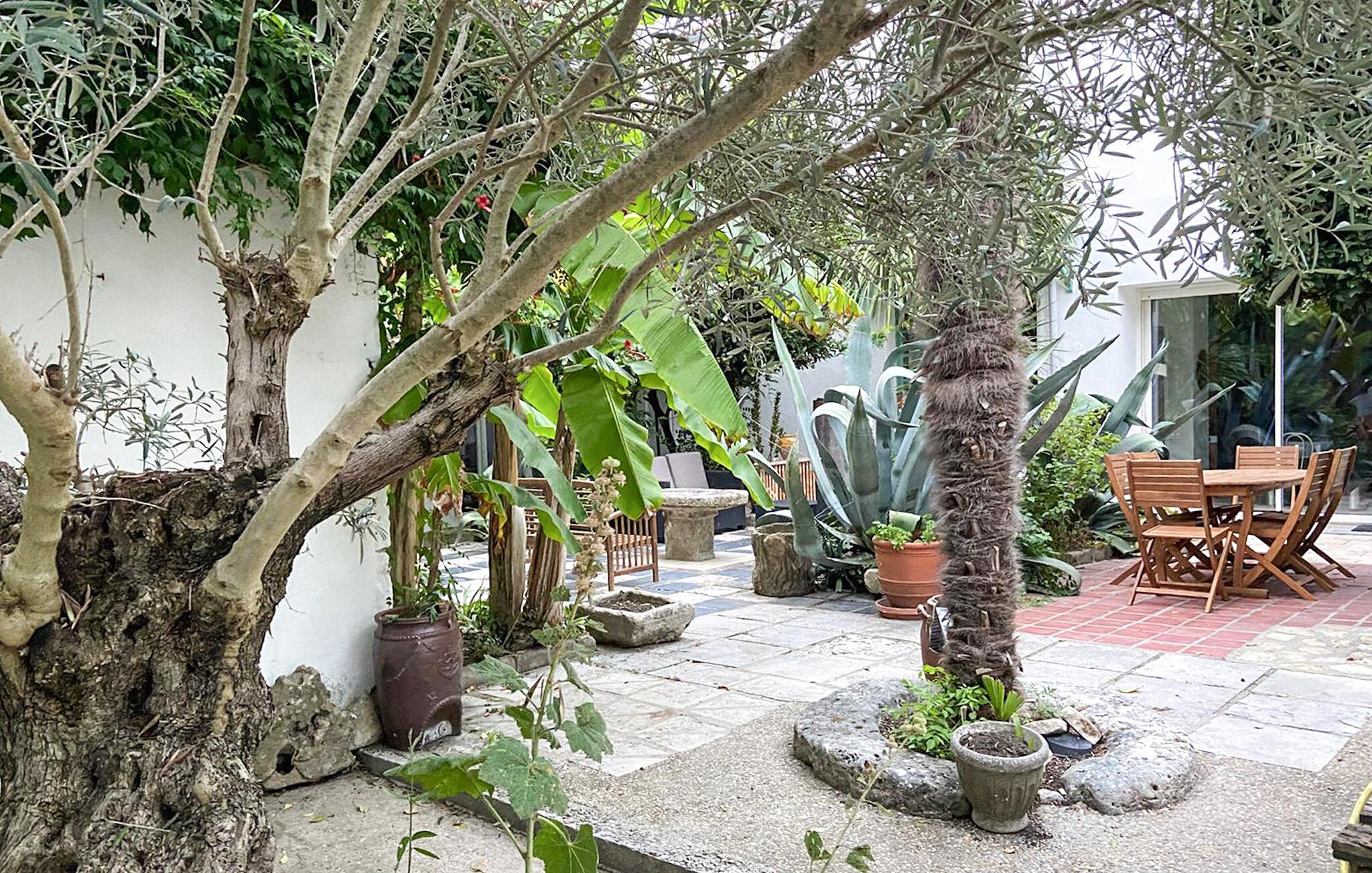 Verbringen Sie erholsame Stunden auf der geschützten Terrasse und im grünen Innenhof mit üppiger, schattenspendender Bepflanzung. Frühstücken Sie im Sonnenschein oder entspannen Sie zwischen Palmen und alten Olivenbäumen in mediterraner Atmosphäre. Stoßen Sie abends mit einem guten französischen Wein an und lassen Sie den Tag entspannt ausklingen.