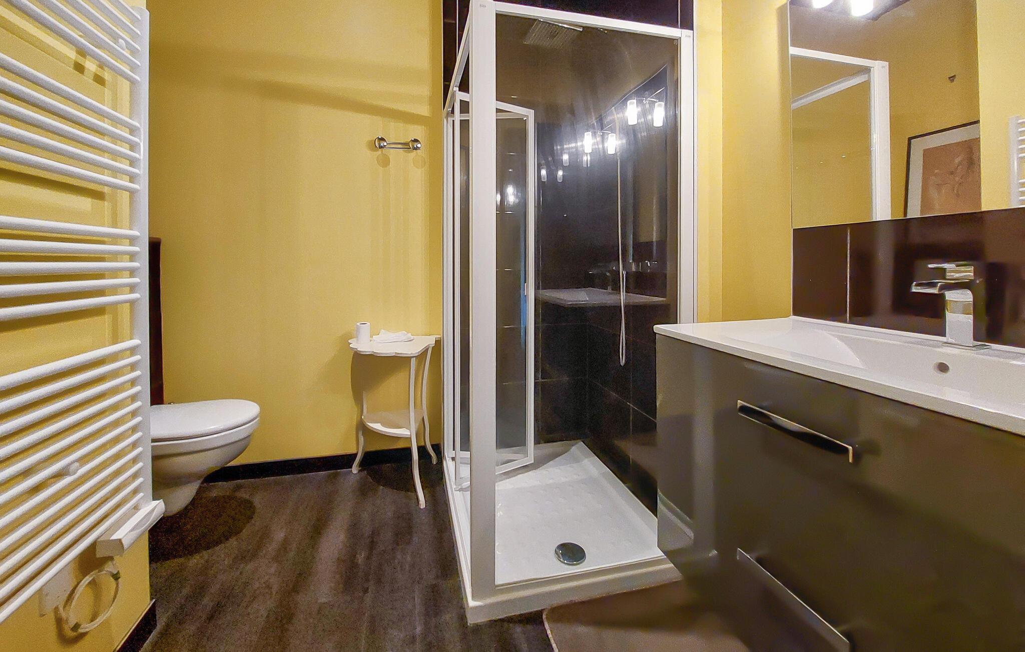 - WC mit warmem und kaltem Wasser, Dusche