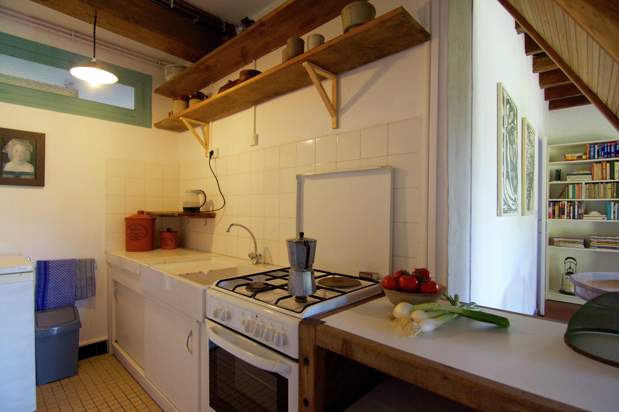 Ground floor: (Living room(TV(satellite, international television channels), stove(wood), seating area, DVD player, radio), dining room(dining table(6 persons), stove(wood), seating area), open kitchen(electric kettle, toaster, cooker(4 ring stoves, gas, electric), coffee machine(filter), oven, microwave, fridge-freezer, Juicer), bathroom(shower, washbasin, toilet, washing machine)) On the 1st floor: (bedroom(double bed(twin duvet , synthetics, 140 x 190 cm)), bedroom(2x single bed(duvet, synthetics, 90 x 190 cm)), Landing(single folding bed)) heating(central), terrace(private), garden(shared with the owner ), garden furniture(5 persons), sun loungers, BBQ(charcoal), parking, trampoline, table tennis table, children's bed(on request), high chair(on request), Swing set