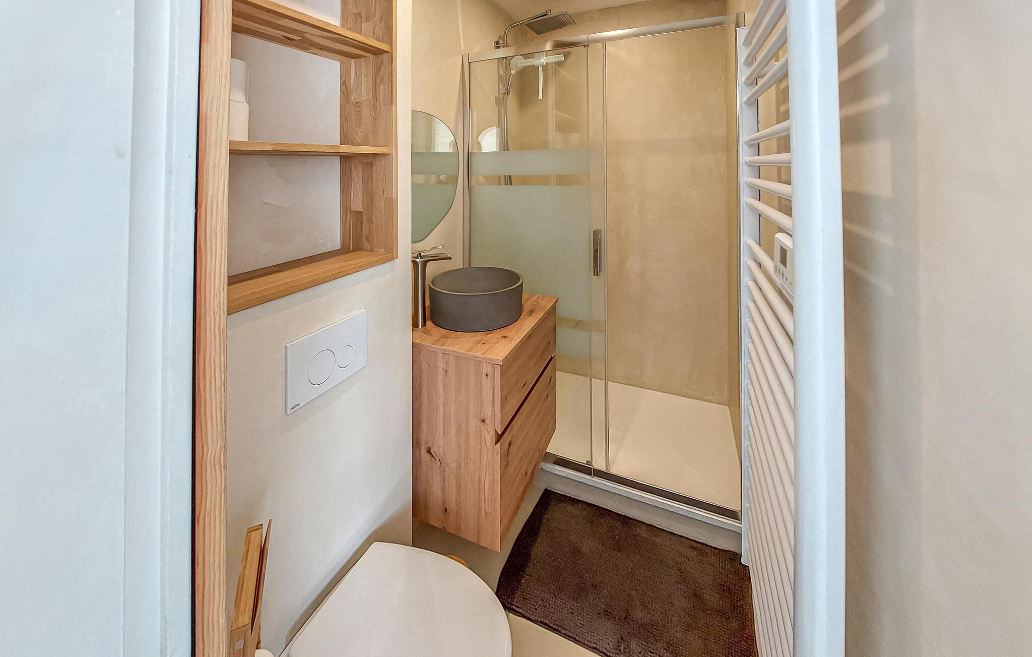 - WC mit warmem und kaltem Wasser, Dusche