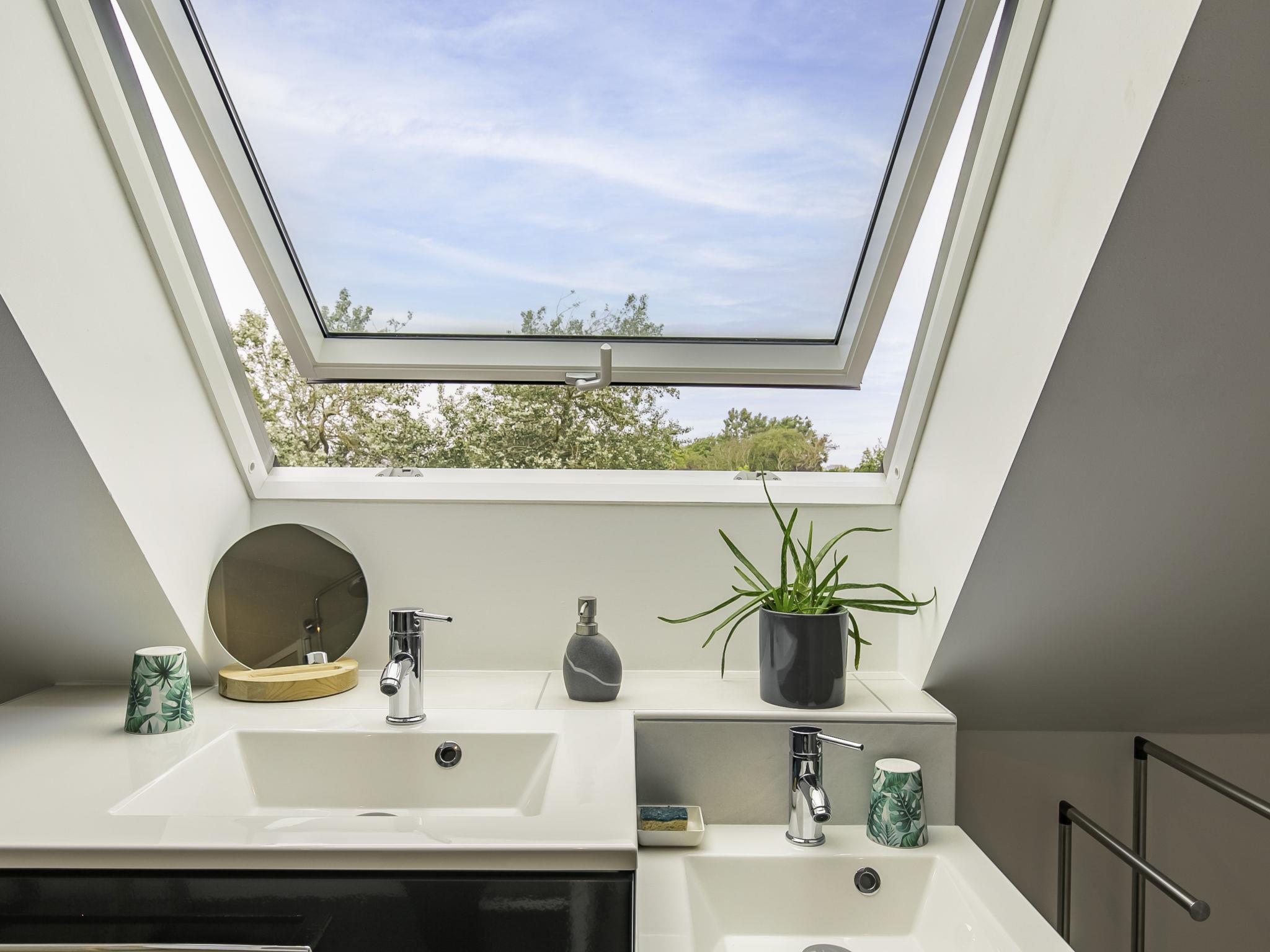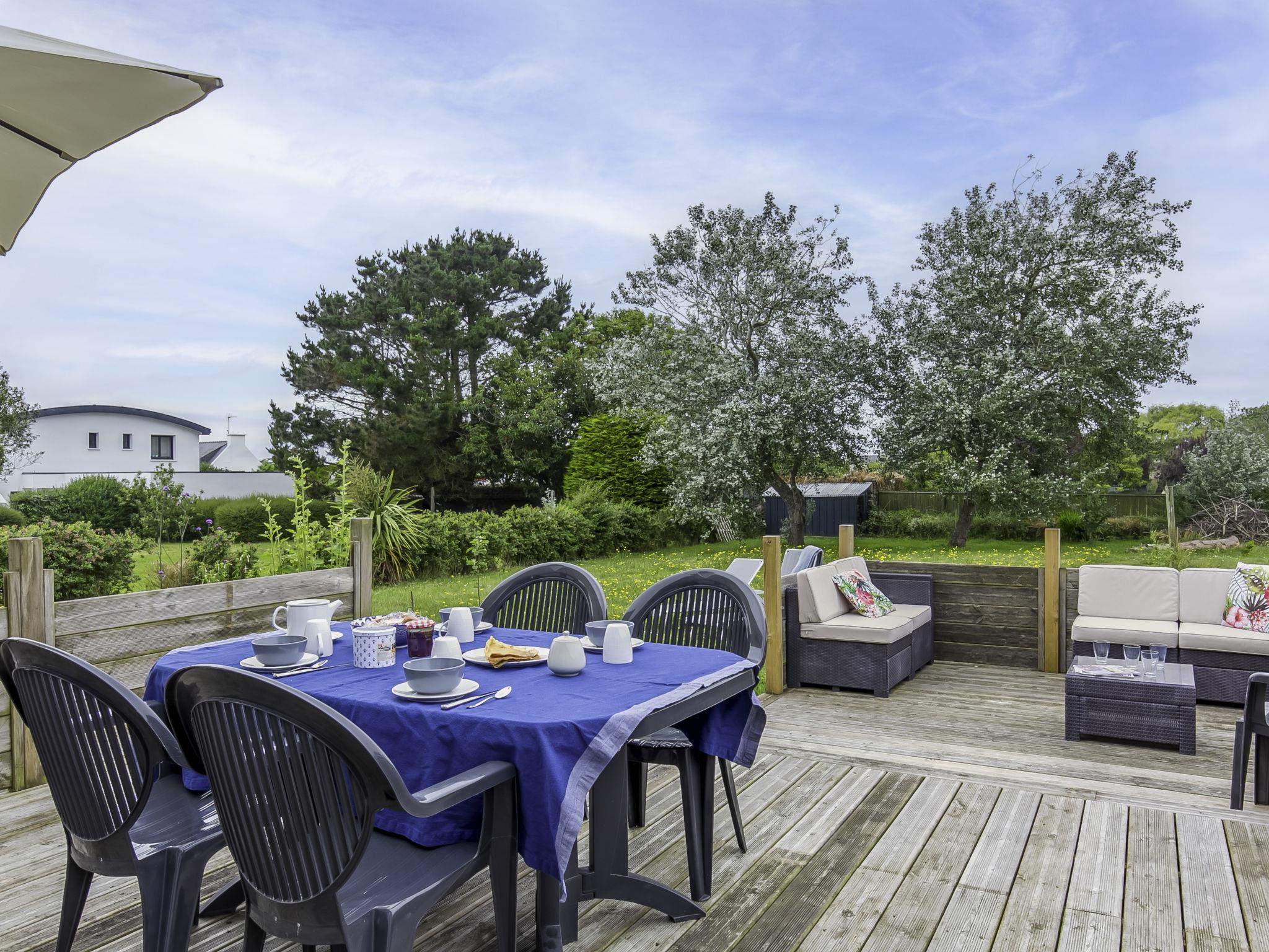 Beautiful single-family house "La Grève bleue", 2 storeys in 2021. In the hamlet Lochrist 2 km from the centre of Le Conquet, in the residential district, traffic calmed area, 800 m from the sea, from the beach, in a cul-de-sac. Private: property 1'300 m2, well-kept garden with lawn and wildlife garden, parking (for 2 cars) on the premises, single garage. Shop 2 km, grocery 2 km, supermarket 4 km, restaurant 2 km, bar 2 km, bakery 2 km, café 2 km, bus stop 190 m, sandy beach "Pors Liogan" 800 m, indoor swimming pool 6 km. Sports harbour 3 km, golf course (18 hole) 16 km, tennis 3 km. Nearby attractions: Pointe Saint-Mathieu 2 km, Fort de Bertheaume 5 km, Plage des Blancs Sablons 6 km, Brest, Oceanopolis 30 km. Hiking paths: GR34, sentier des Douaniers 800 m.