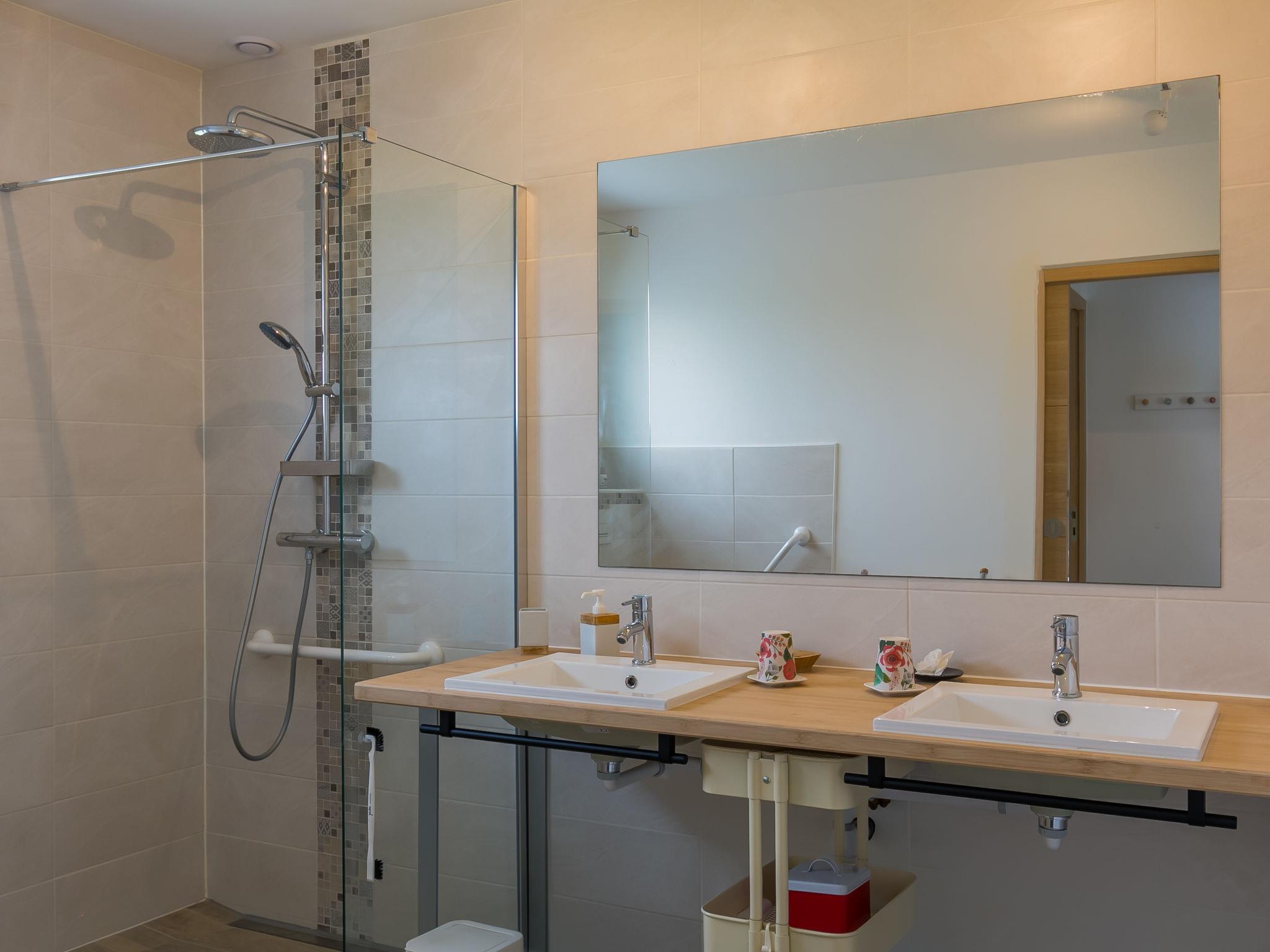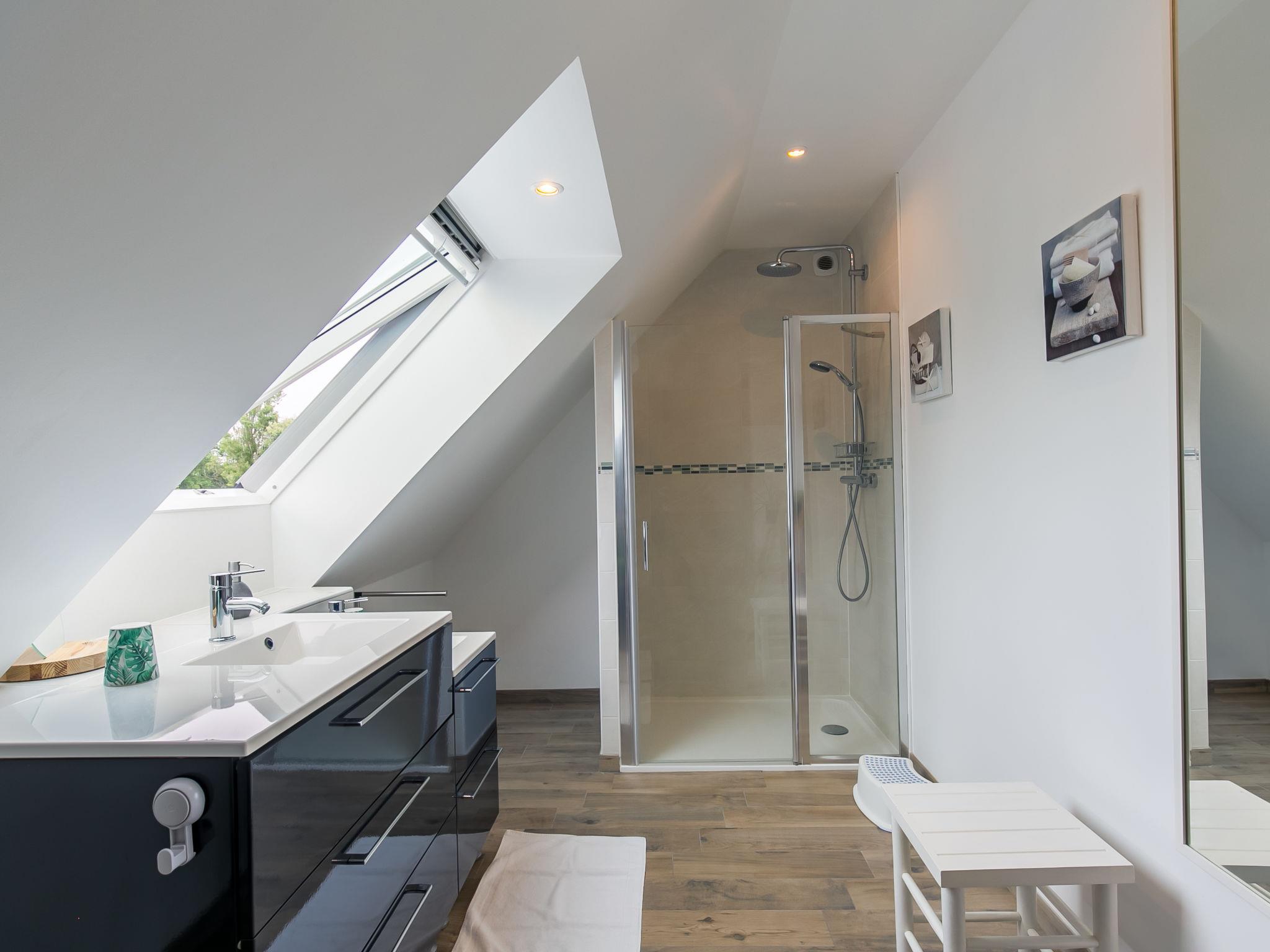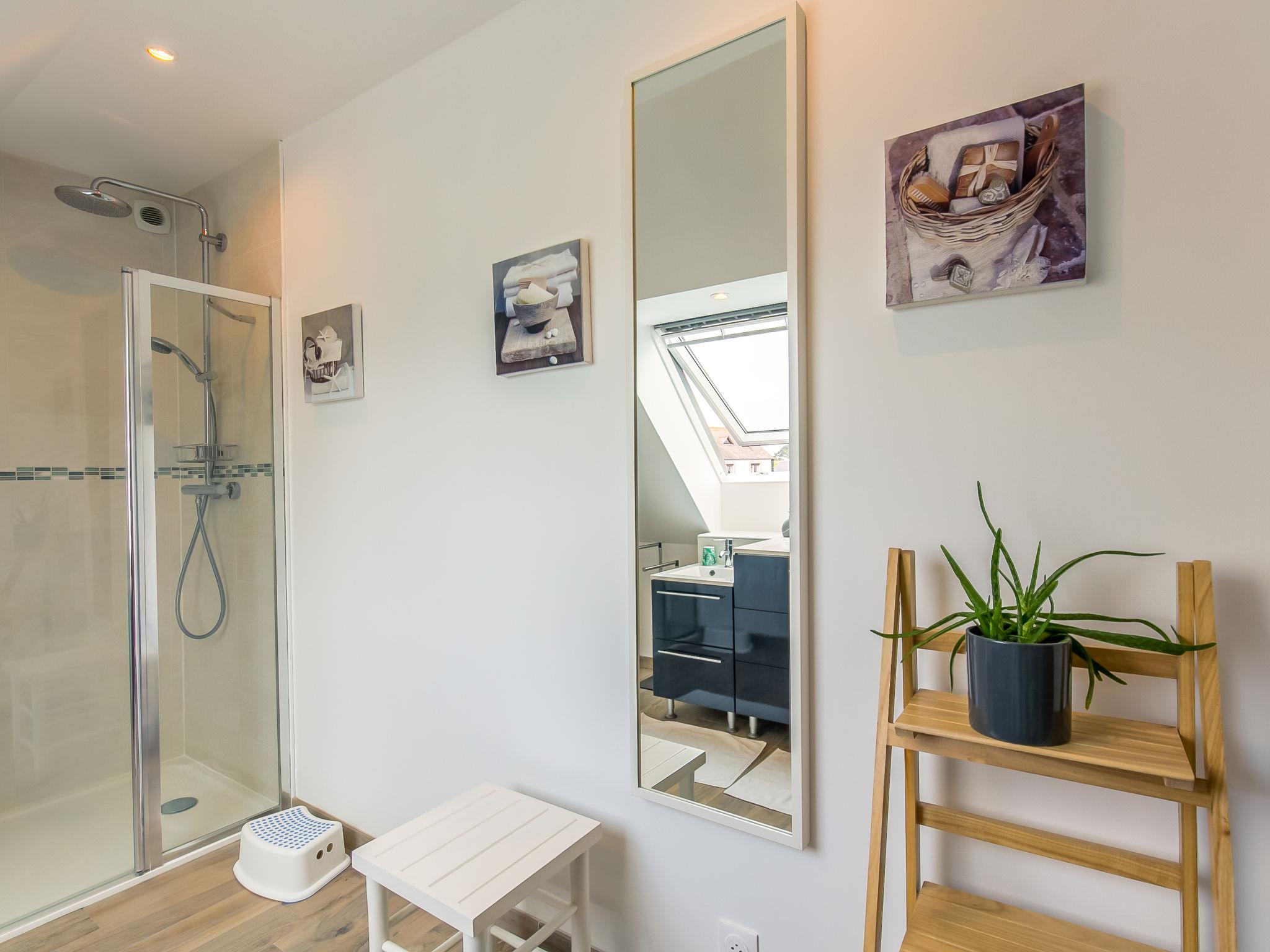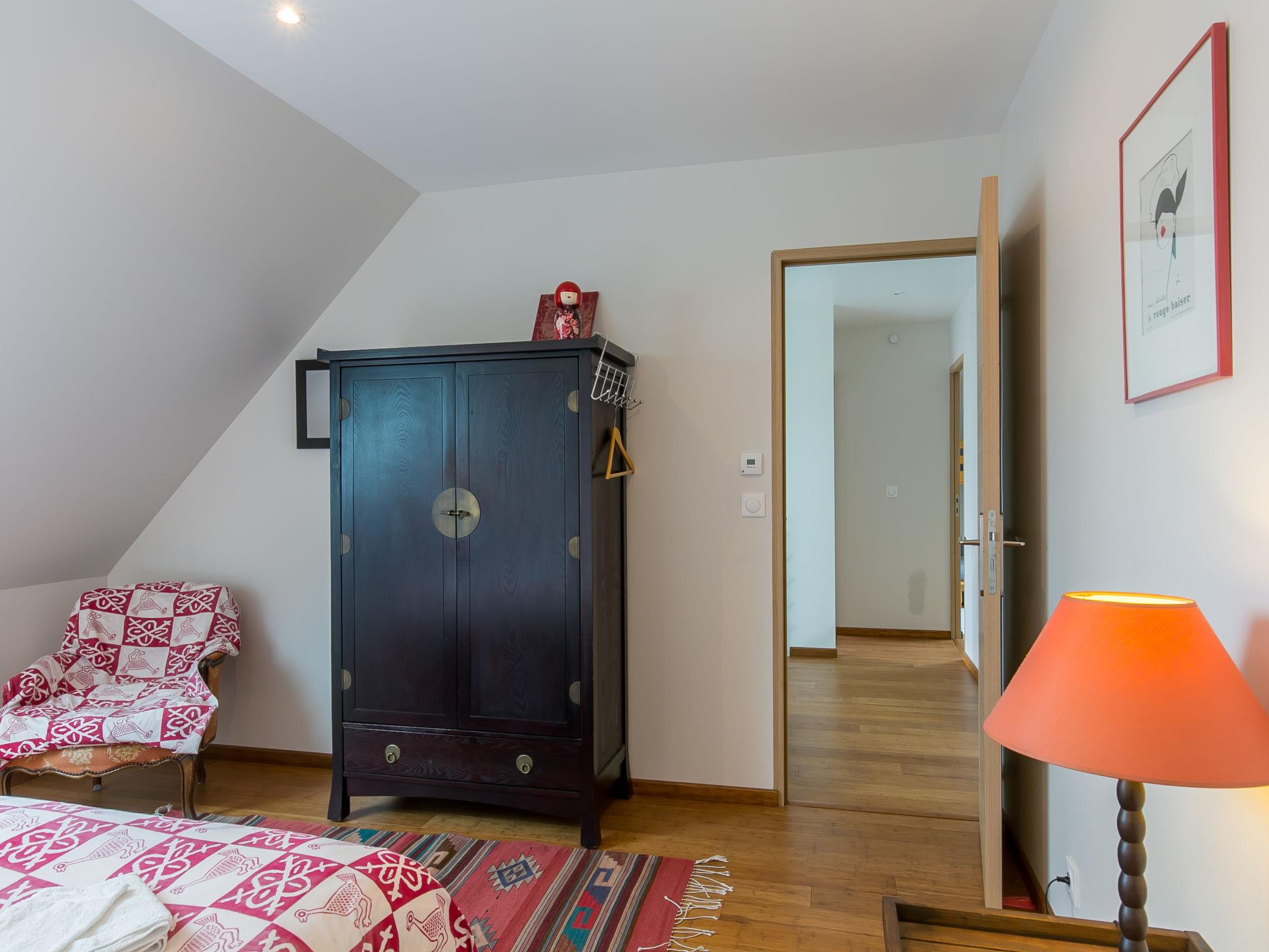 "La Grève bleue", 5-room house 140 m2. Object suitable for 6 adults + 2 children. Spacious and bright, fully renovated in 2021, comfortable and modern furnishings: large living/dining room with open-hearth fireplace, dining table, digital TV and flat screen. Exit to the garden, to the terrace. 1 room with 1 french bed (160 cm, length 200 cm). Kitchen (oven, dishwasher, 3 induction hot plates, toaster, kettle, microwave, freezer, electric coffee machine, cooking island) with dining table. Shower/WC. Electric heating. Upper floor: 1 room with 1 french bed (160 cm, length 200 cm). 1 room with 2 beds (80 cm, length 200 cm). 1 children's room with 1 x 2 bunk beds (90 cm, length 190 cm). Shower, sep. WC. Small balcony 4 m2, south facing position and west facing position, terrace 16 m2, south facing position and west facing position. Terrace furniture, balcony furniture, barbecue (portable), deck chairs (2). Distant view of the sea. Facilities: washing machine, baby cot, baby changing unit. Internet (WiFi, free). Please note: suitable for families. Non-smoking house. Smoke alarm.