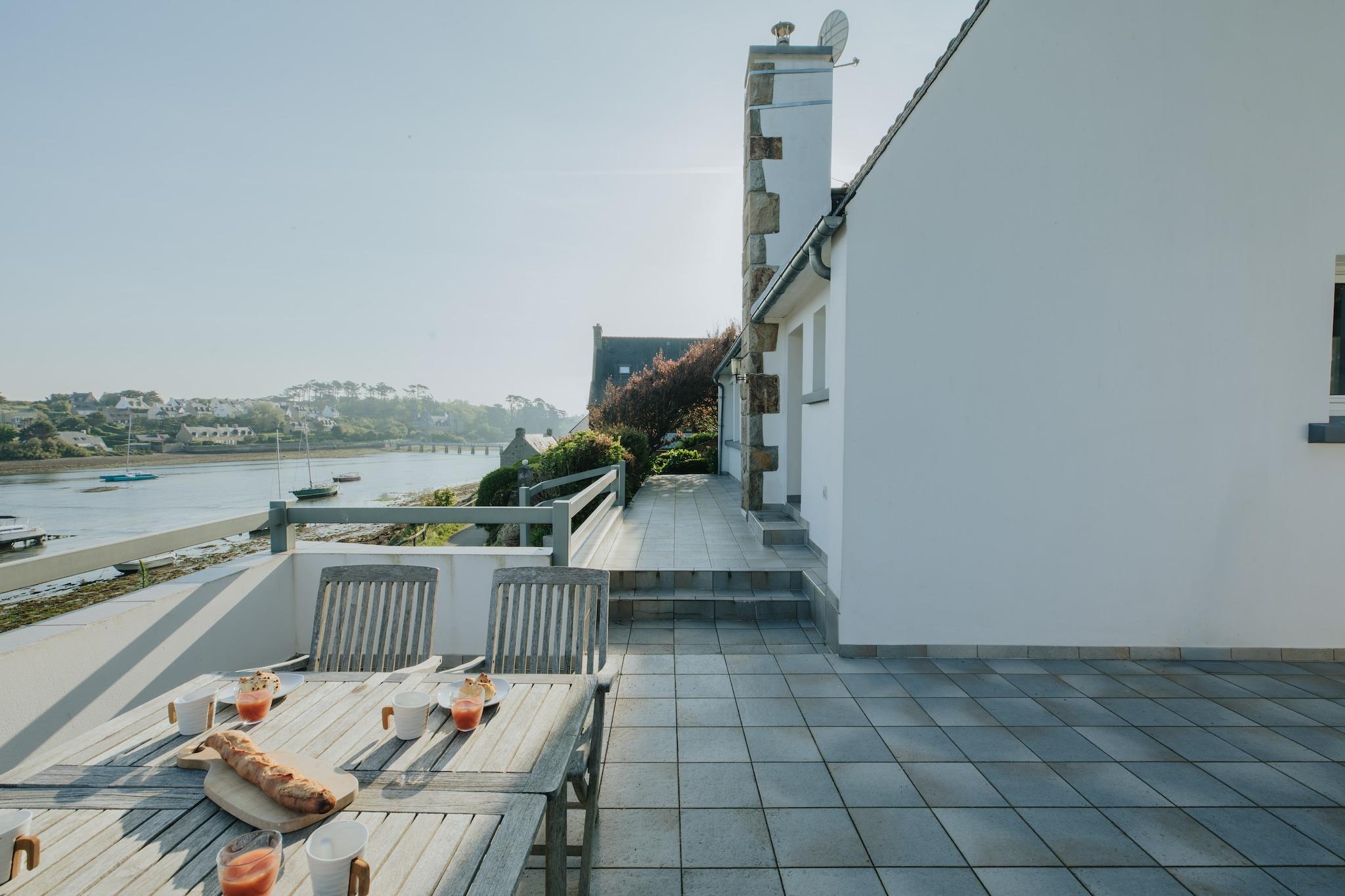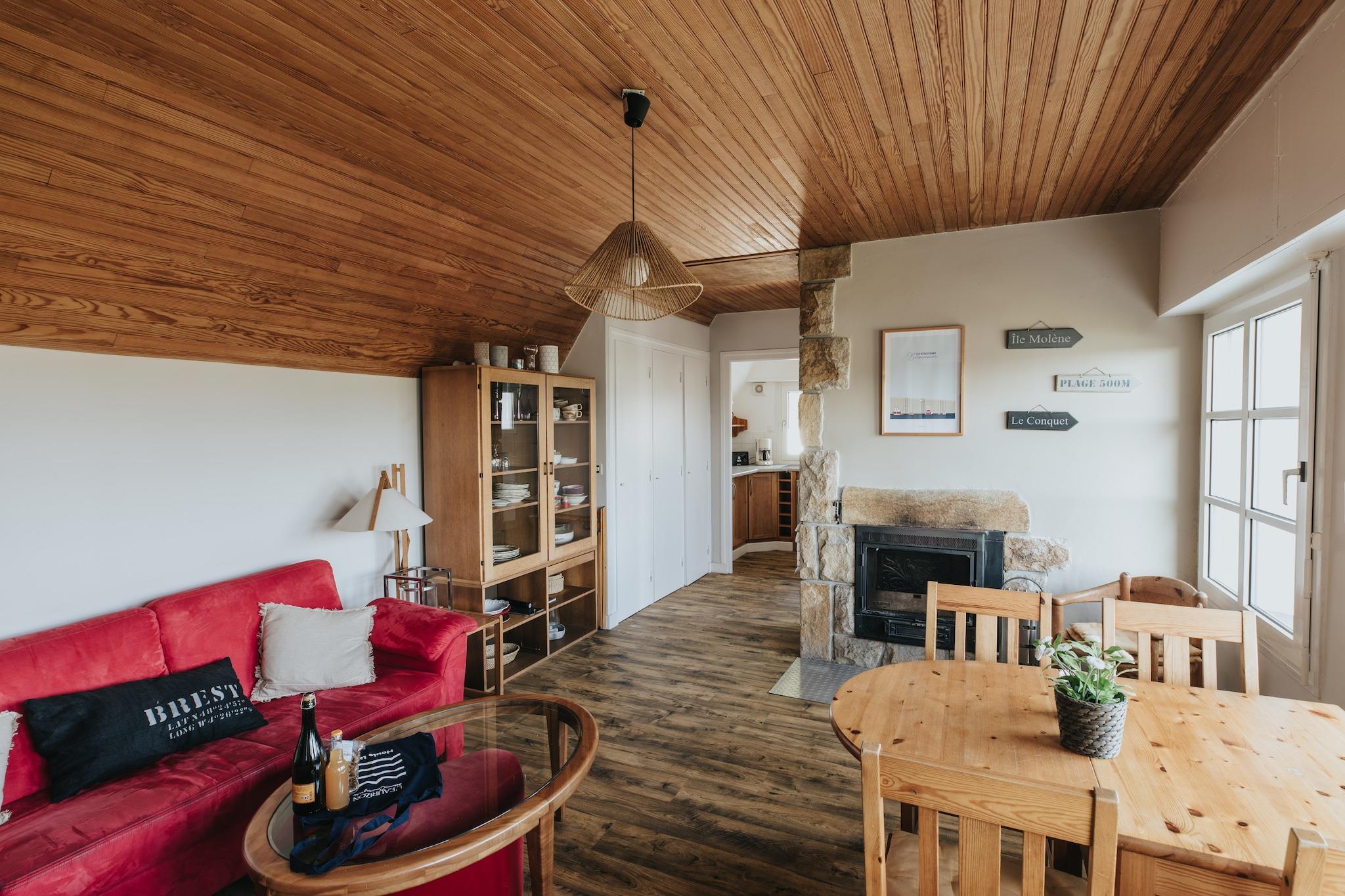 Your holiday home – Seaside living with maritime charm. Welcome to your holiday retreat, a rare and harmonious haven, intimately connected to the sea. From almost every window, you can enjoy breathtaking views of the sparkling water, passing sailboats, and the magnificent spectacle of the tides. Even from the bedroom, this panorama accompanies you, offering a new and vibrant scene at every moment of the day. Start your day with the invigorating sea air, the perfect accompaniment to a French breakfast of baguette and croissant. On the large terrace, facing the sea, you can watch the boats go by and let your gaze wander as far as the Kermorvan peninsula. Just a short walk away is the long, fine sandy beach of Les Blancs Sablons – ideal for walks, sunbathing, and water sports. On the ground floor, a cozy living room awaits, complete with a wood-burning stove, creating a particularly pleasant atmosphere during the off-season. A bedroom with a comfortable double bed (1.60 x 2.00 m, separate mattresses) and a bathroom with shower and toilet complete this floor. The top floor is accessed via a steep ladder – this part of the accommodation is therefore not suitable for young children or the elderly. In the attic, there is a second bedroom with an exceptionally large round bed (approx. 1.60 x 2.00 m). An adjoining room, equipped with a desk, can be used as a home office. A garage is available for your vehicle (depending on size). In Le Conquet, you will also find public parking with parking discs as well as covered parking spaces for rent. Pets: Pets are welcome upon prior request. A highlight of your stay is the weekly market, which brings the town center to life every Tuesday. Ferries to the islands of Molène and Ouessant also depart from here – an unforgettable excursion. Don't miss a trip on a 12-seater rigid inflatable boat either: with a bit of luck, you might spot dolphins and seals basking on the rocks.