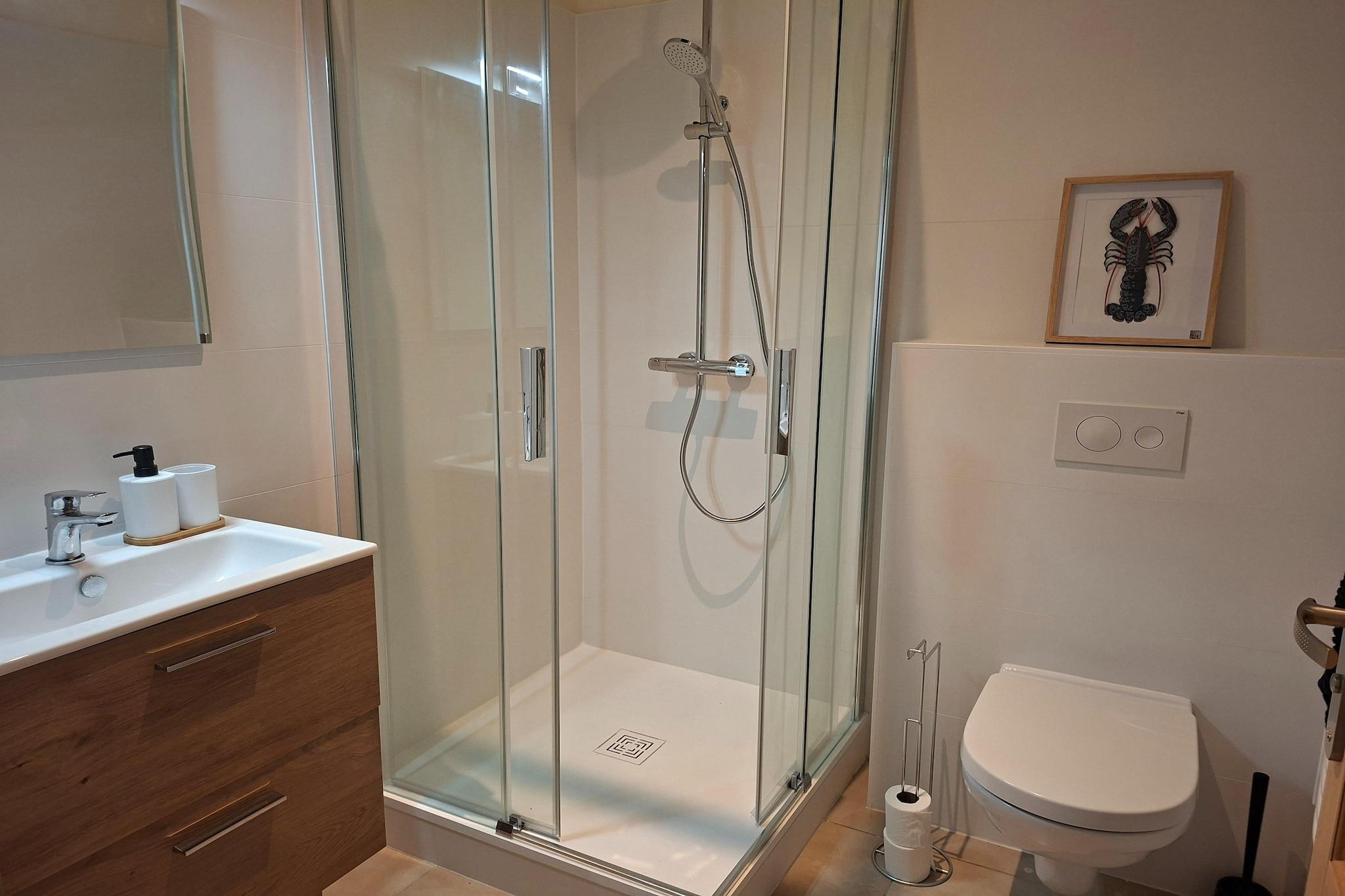 Holiday Home with Panoramic Sea View and Île de Béniguet – Le Conquet Enjoy a breathtaking panoramic view of the open sea and the Île de Béniguet – from almost every window. The view stretches far across the ocean, inviting you to dream. The nearest sandy beach is only 350 meters away and can be reached within a few minutes. The house is located on the “Route Touristique,” which connects Le Conquet to the Pointe Saint-Mathieu, and sits on one of the westernmost points of the Finistère. Numerous coastal walking trails, including the famous GR34, offer spectacular views along the wild coastline. The modern, fully equipped kitchen is perfect for cooking together and quickly becomes the gathering place for culinary evenings: 3 induction hobs, electric oven, fridge-freezer, toaster, kettle, dishwasher, and washing machine are all at your disposal. Sleeping arrangements: Ground floor: master suite with two single beds and an adjoining bathroom with shower and toilet. Upper floor: two bedrooms with sea views – one with two single beds, one with a double bed; plus an additional bedroom with a double bed and a bathroom with shower and toilet. The spacious layout, living room with sea view, and adjacent terrace invite unforgettable moments – whether enjoying breakfast with a view of the sea or a relaxed evening barbecue. Local highlights: weekly market in Le Conquet every Tuesday; ferries to the nearby islands of Molène and Ouessant; boat trips on 12-person rigid inflatable boats to observe dolphins and seals; coastal trail GR34 with spectacular views along France’s westernmost coast. This holiday home offers the perfect mix of relaxation, nature experiences, and comfort – ideal for families, friends, or couples who love the sea.
