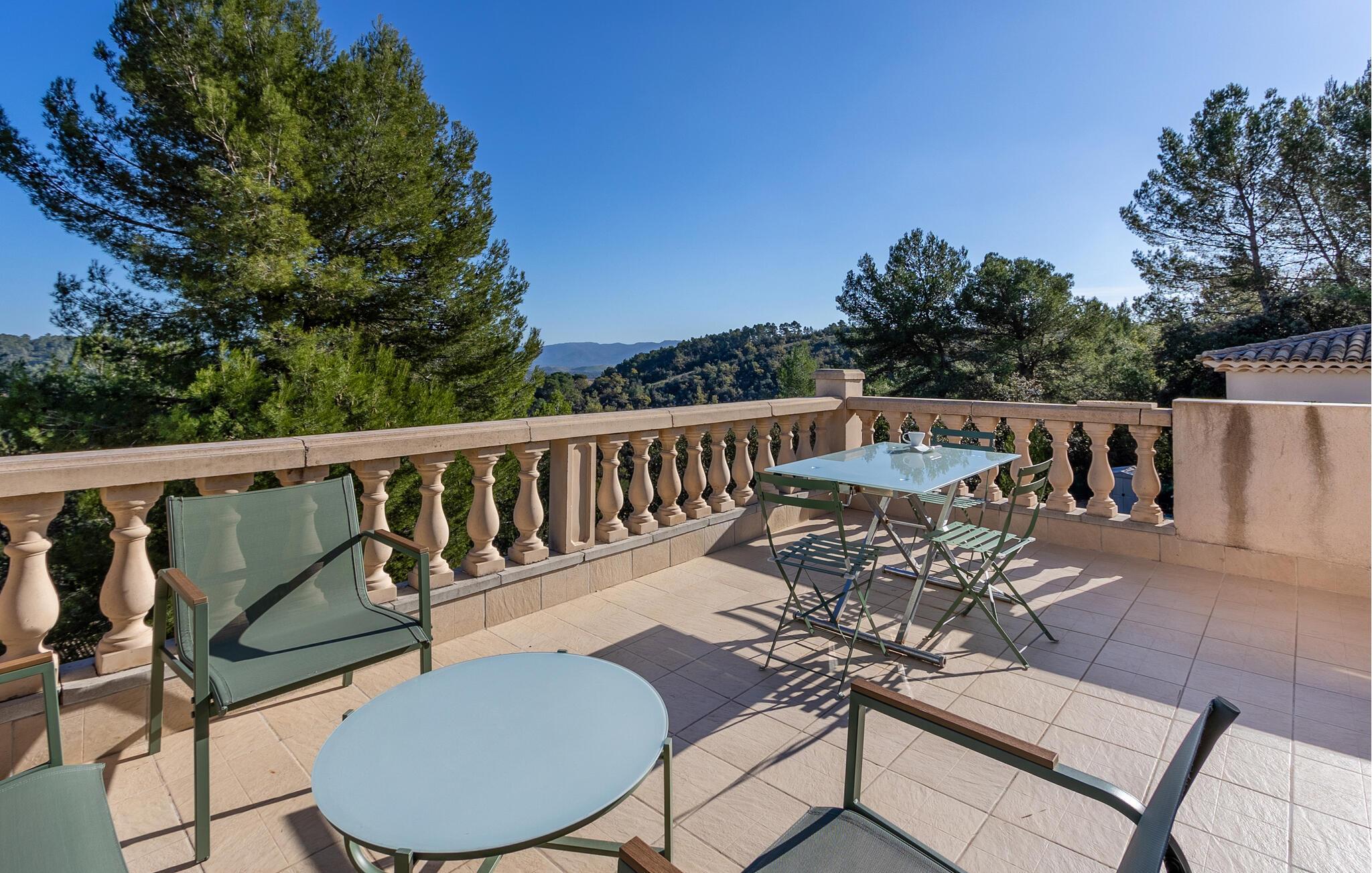 Treten Sie hinaus auf Ihre private Terrasse und verlieren Sie sich bei einem entspannten Frühstück im herrlichen Panoramablick über die umliegende Natur. Nutzen Sie die Sonnenliegen, um die warmen Sonnenstrahlen der Provence zu genießen.