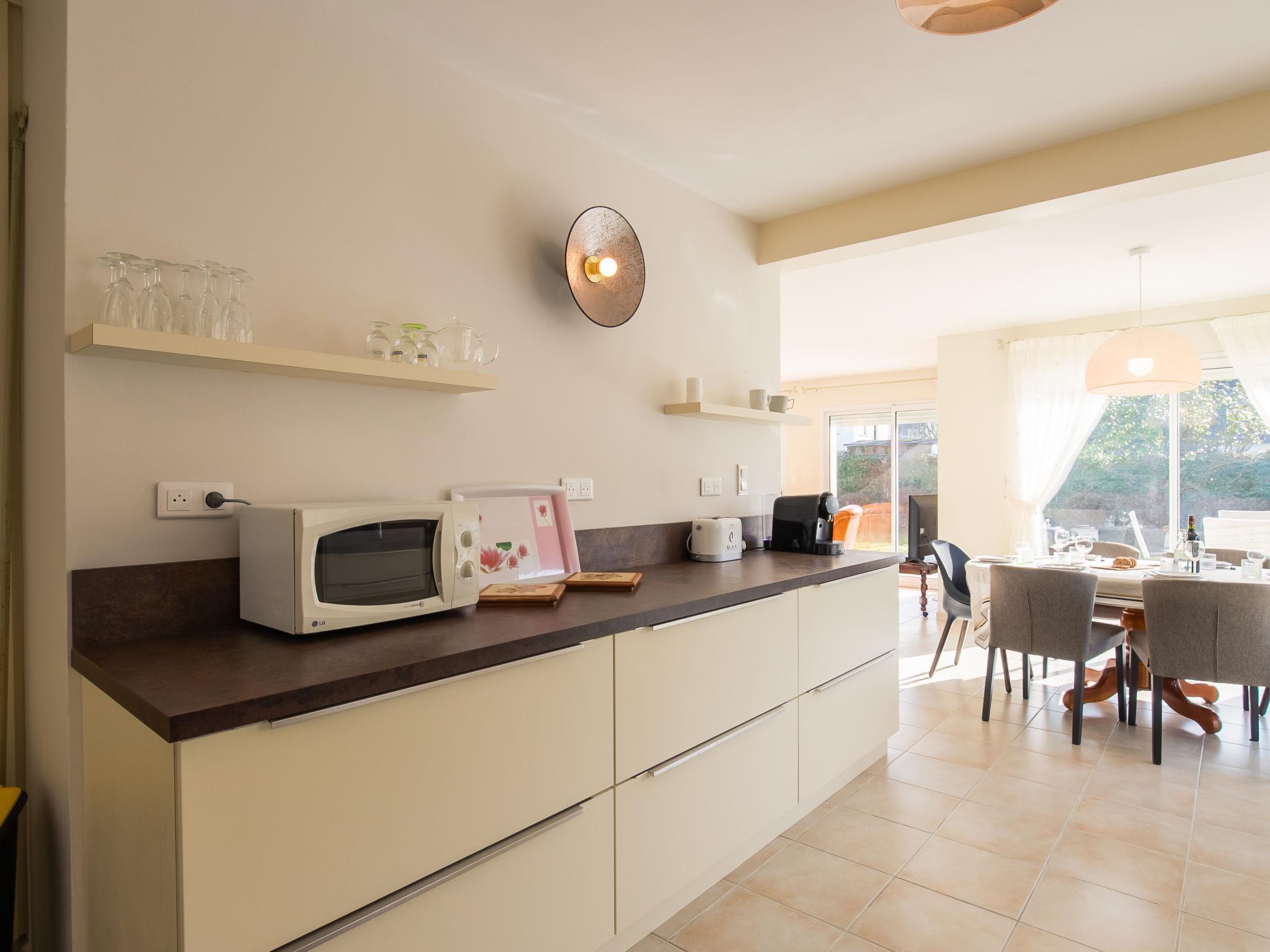 Le Pouldu: Beautiful, cosy, comfortable single-family house "Villa de la Paix". 2 houses in the residence. In the district of Le Pouldu 5.5 km from the centre of Clohars-Carnoet, 10 km from the centre of Guidel, in the residential district, excellent location: right in the centre but still quiet, 150 m from the sea, 150 m from the beach. For shared use: property 800 m2 (fenced). Private: property 300 m2, well-kept garden with lawn and wildlife garden, parking (for 2 cars) at the house on the premises. Shop 5.5 km, grocery 350 m, supermarket 5.5 km, restaurant 150 m, bakery 100 m, bus stop "devant l'office de tourisme" 300 m, sandy beach "Plage des Grands Sables" 150 m. Sports harbour 2 km, surf school 1.7 km, sailing school 400 m, walking paths from the house 100 m. Nearby attractions: Quimperlé 13 km, Pont-Aven 22 km, Concarneau, Ville Close 48 km, Lorient, départ Île de Groix 26 km, Quimper 62 km, Site Abbatial de Saint-Maurice 6.7 km. Hiking paths: GR34, sentier des douaniers 100 m. Please note: Property ref. FR2941.650.1 is situated on the same property.