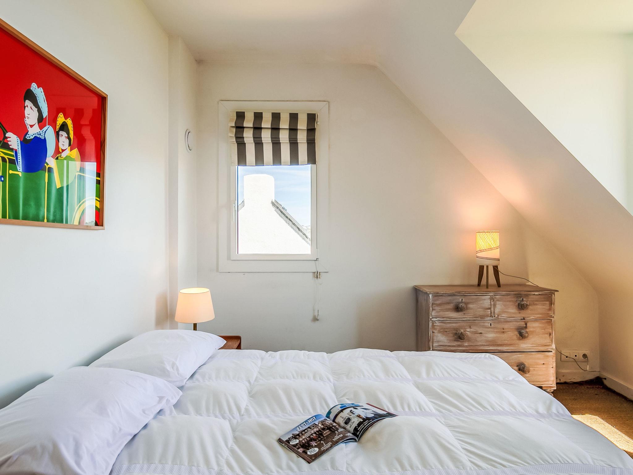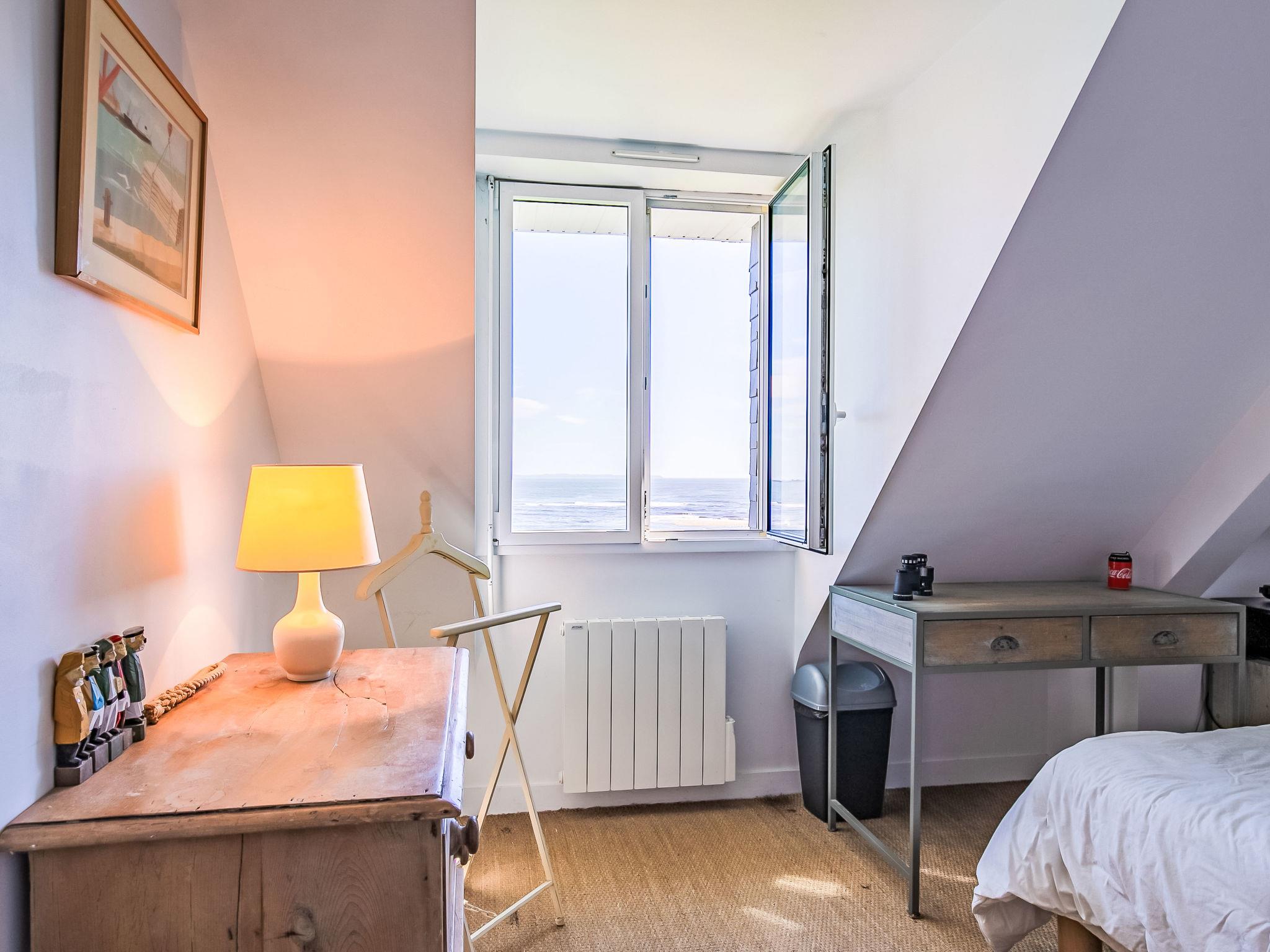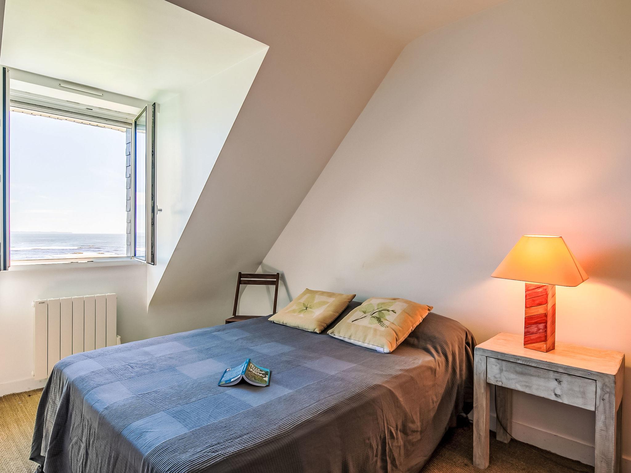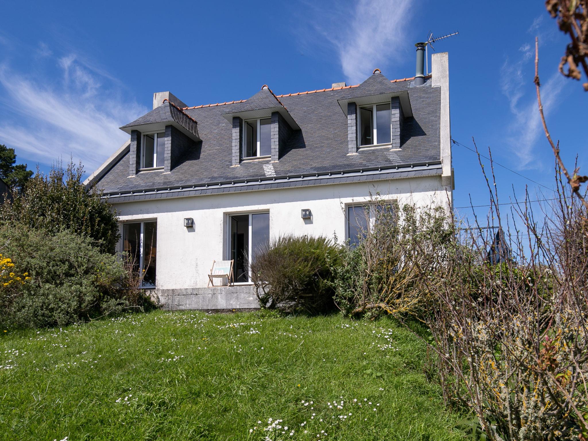 "Ruilh Avel", 5-room house 140 m2 on 2 levels. Spacious and bright, beautiful and cosy furnishings: open large living/dining room 50 m2 with open-hearth fireplace (only for decoration), flat screen. Exit to the garden, to the terrace, south facing position. Large, open kitchen (oven, dishwasher, 5 induction hot plates, toaster, kettle, microwave, freezer, electric coffee machine). Shower, sep. WC. Upper floor: 3 rooms, each room with 1 french bed (140 cm, length 190 cm). 1 children's room with 2 beds (90 cm, length 190 cm). Bathroom, sep. WC. Electric heating. Small terrace 20 m2, south facing position. Terrace furniture, barbecue (portable), deck chairs (2). Very beautiful panoramic view of the sea. Facilities: washing machine, iron, baby cot for up to 2 year olds, hair dryer. Internet (WiFi, free). Please note: non-smoking house. Smoke alarm. Offer by a private individual according to Art. 155, IV of CGI.
