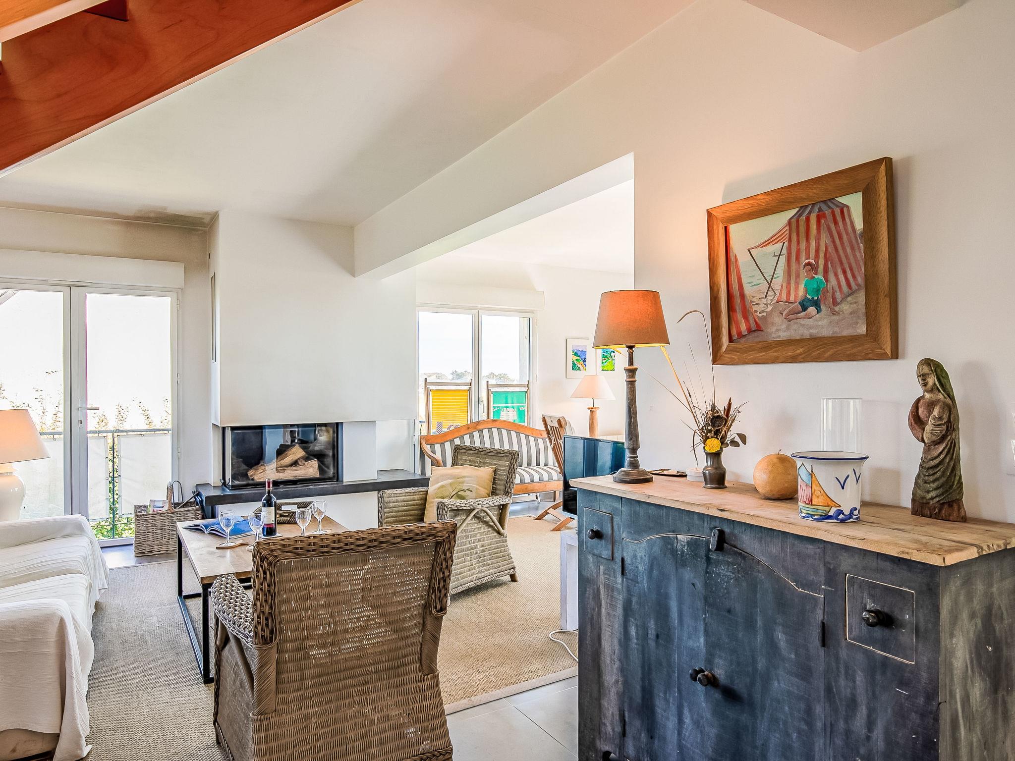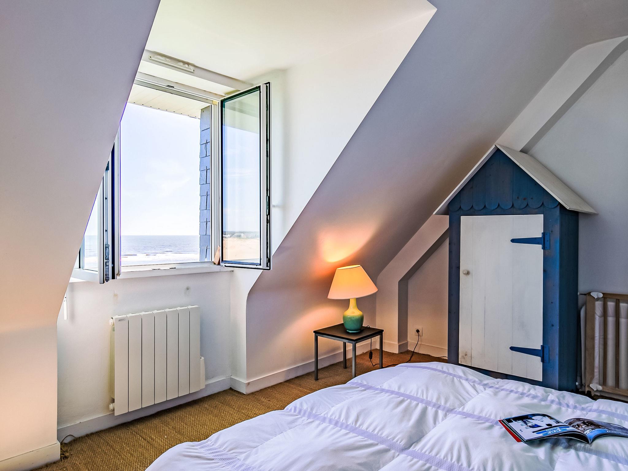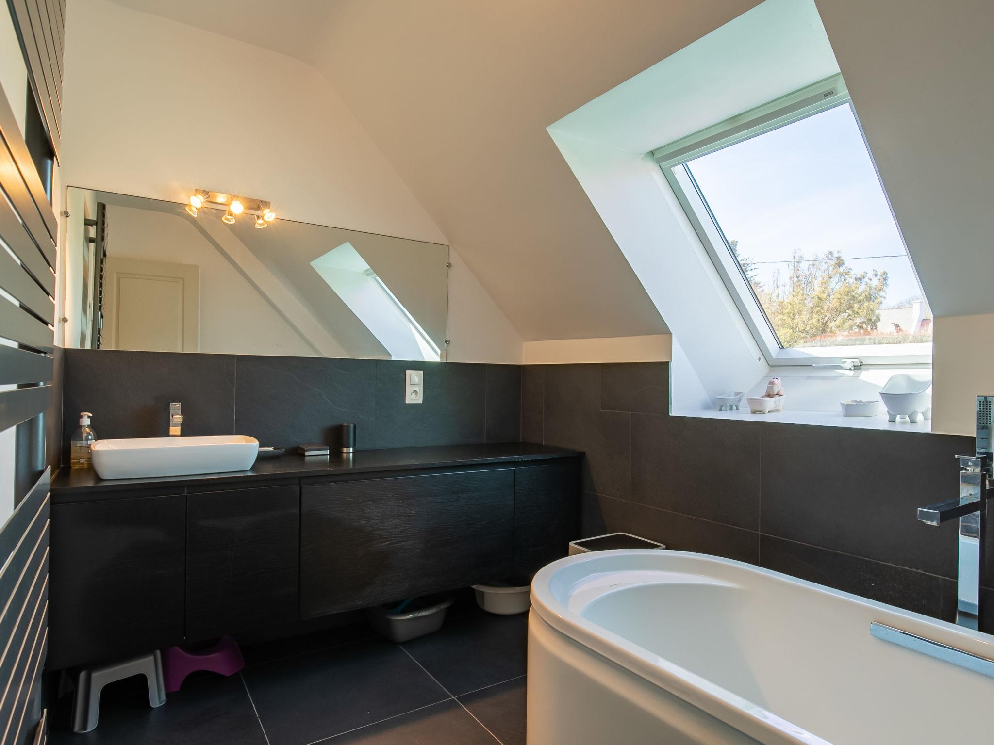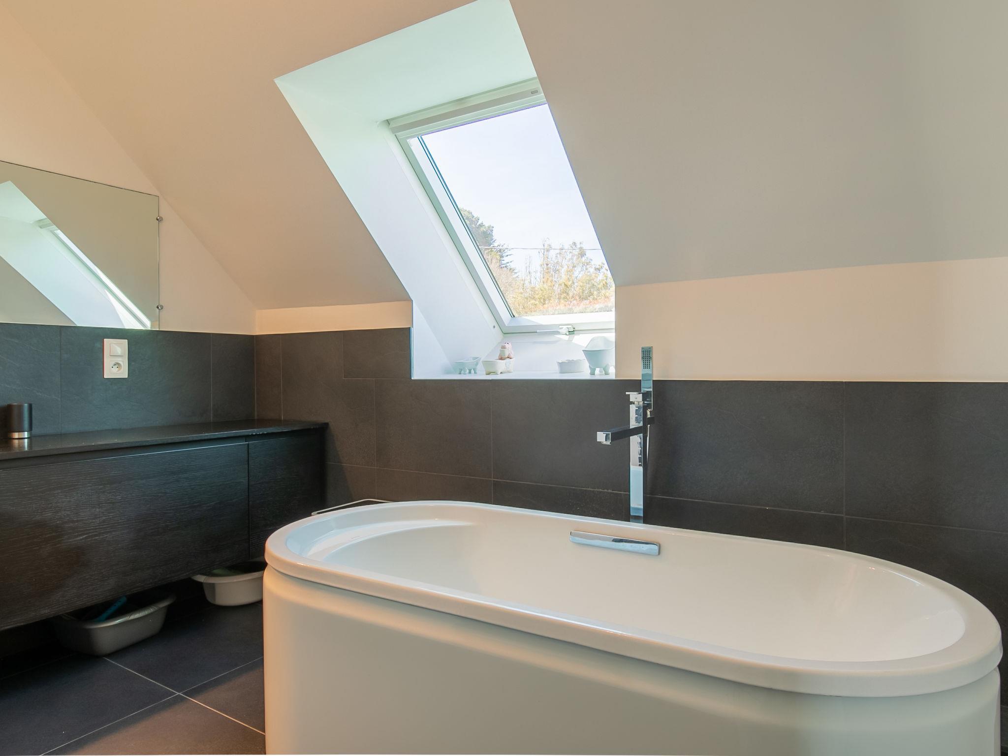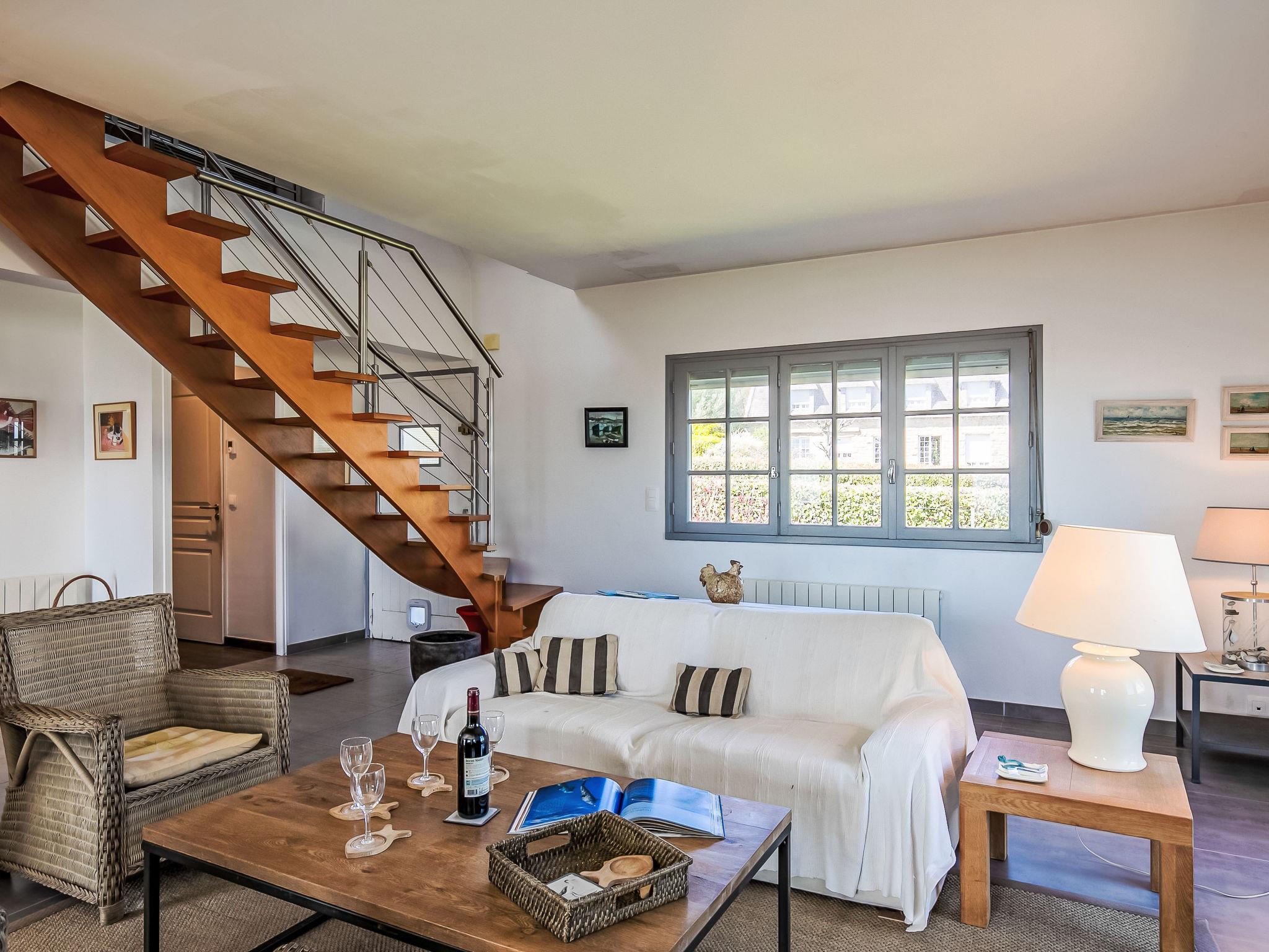 "Ruilh Avel", 5-room house 140 m2 on 2 levels. Spacious and bright, beautiful and cosy furnishings: open large living/dining room 50 m2 with open-hearth fireplace (only for decoration), flat screen. Exit to the garden, to the terrace, south facing position. Large, open kitchen (oven, dishwasher, 5 induction hot plates, toaster, kettle, microwave, freezer, electric coffee machine). Shower, sep. WC. Upper floor: 3 rooms, each room with 1 french bed (140 cm, length 190 cm). 1 children's room with 2 beds (90 cm, length 190 cm). Bathroom, sep. WC. Electric heating. Small terrace 20 m2, south facing position. Terrace furniture, barbecue (portable), deck chairs (2). Very beautiful panoramic view of the sea. Facilities: washing machine, iron, baby cot for up to 2 year olds, hair dryer. Internet (WiFi, free). Please note: non-smoking house. Smoke alarm. Offer by a private individual according to Art. 155, IV of CGI.