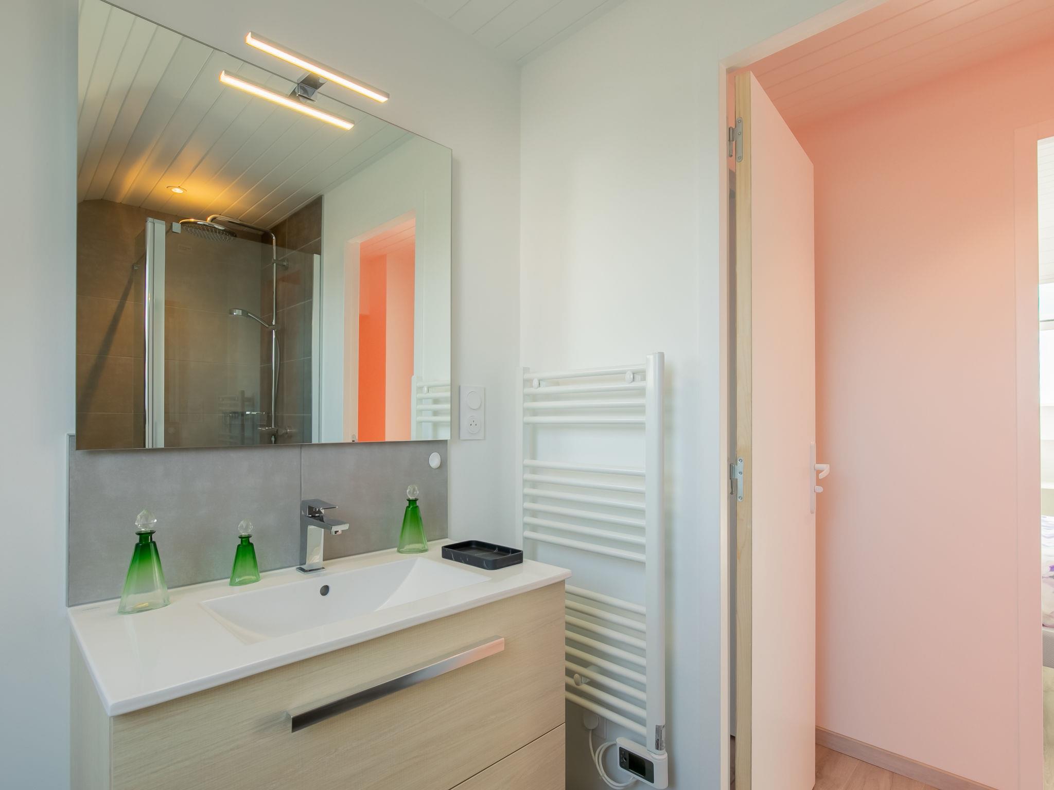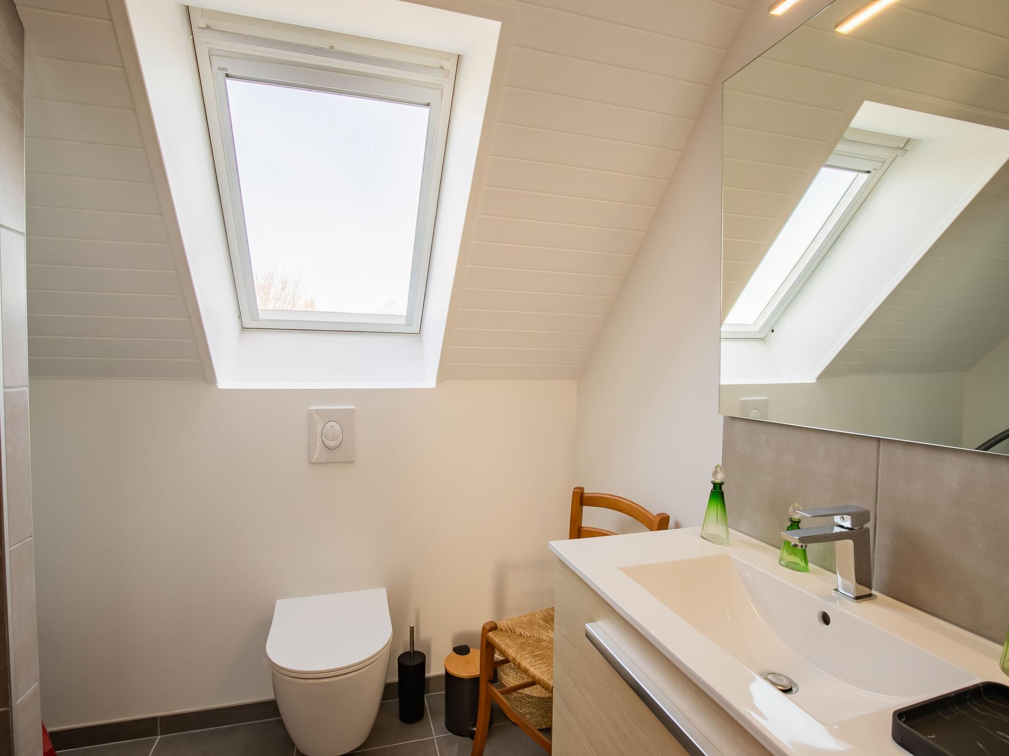 "Les Oyats", 3-room apartment 55 m2 on 1st floor. Bright, partly with sloping ceilings, fully renovated in 2023, beautiful and tasteful furnishings: living room 25 m2 with dining table and TV. 1 room with sloping ceilings with 1 french bed (160 cm, length 200 cm). 1 room with sloping ceilings with 1 french bed (140 cm, length 190 cm). Open kitchen (oven, dishwasher, 3 induction hot plates, toaster, kettle, microwave, electric coffee machine, Capsules for coffee machine (Nespresso) extra). Shower/WC. Electric heating. Small balcony 3 m2, south-west facing position, small patio 20 m2, south facing position. Terrace furniture, balcony furniture, barbecue (portable), deck chairs (2), box-room. Facilities: washing machine, iron, hair dryer. Internet (WiFi, free). Parking (2 cars) at the house. Please note: non-smokers only. Private entrance, smoke alarm. access by outside staircase, 14 steps. Offer by a private individual according to Art. 155, IV of CGI. FR241.648.1