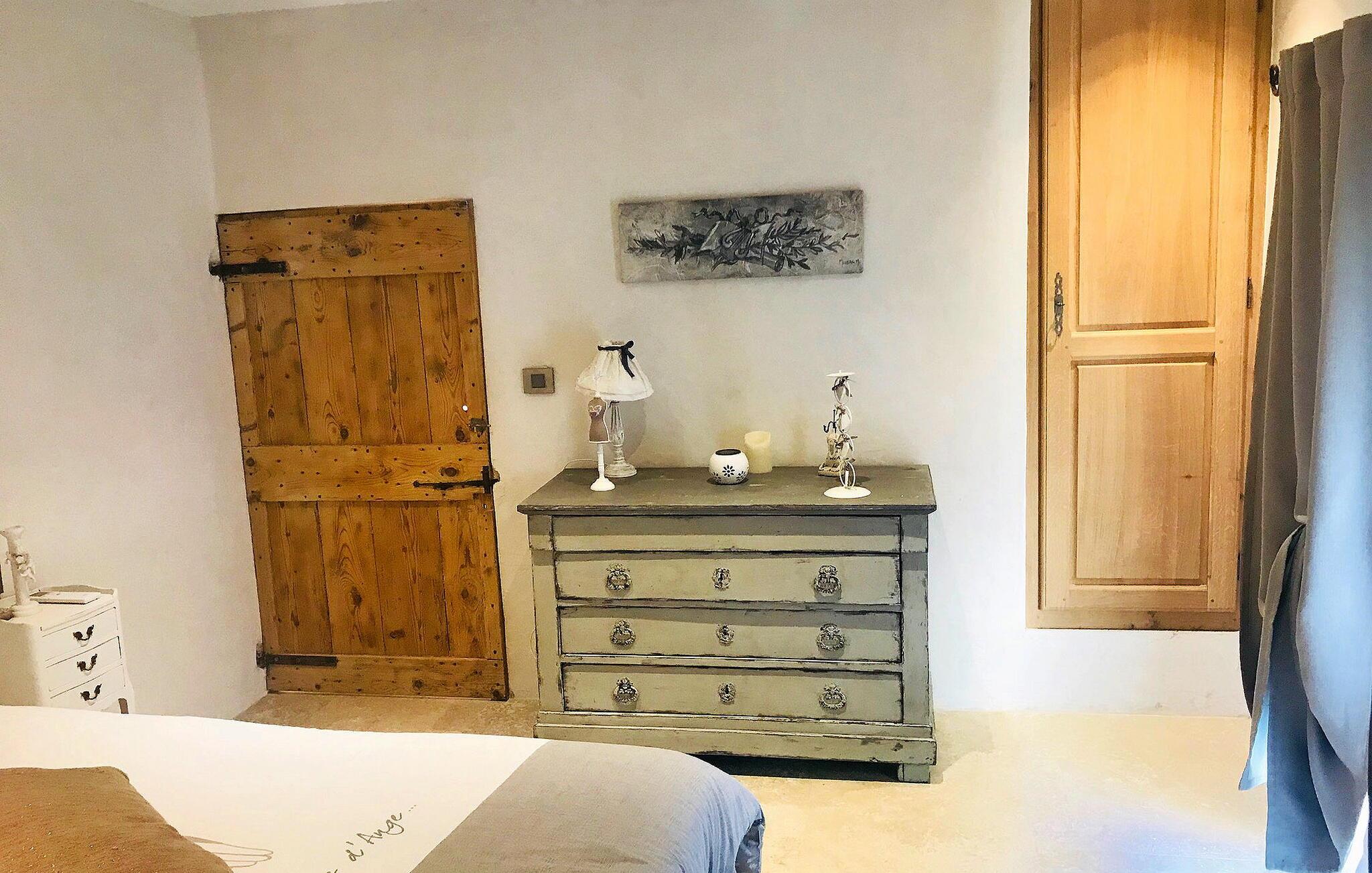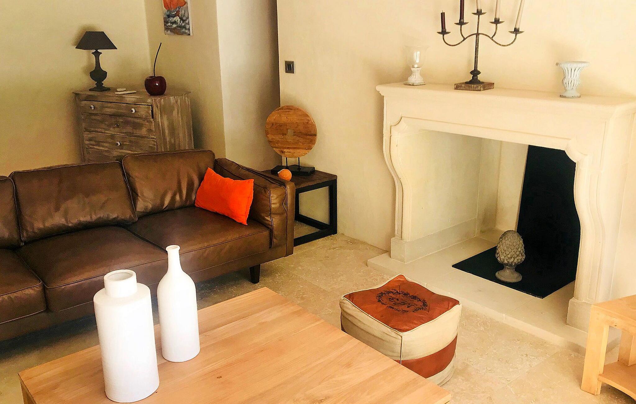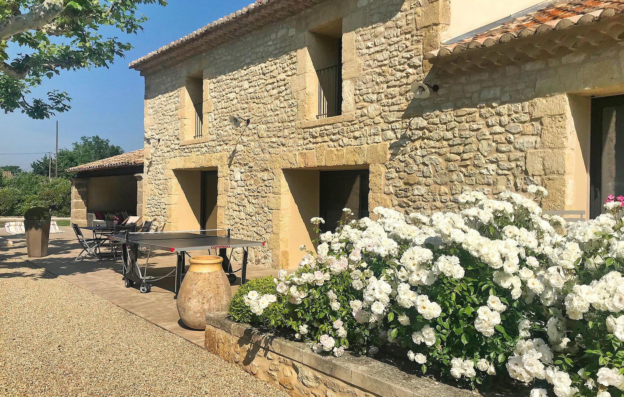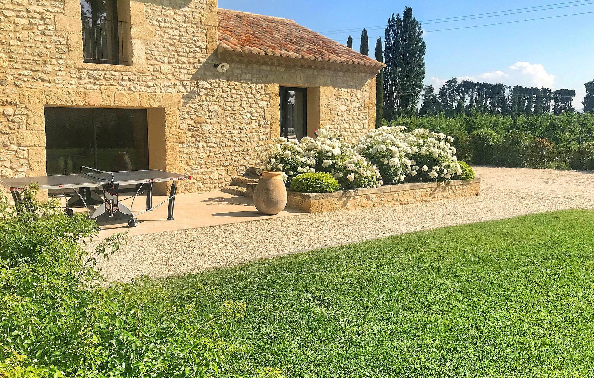 Dieses liebevoll renovierte ehemalige Gehöft in Le Thor verbindet den rustikalen Charme eines historischen Steingebäudes mit moderner, komfortabler Einrichtung. Der großzügige Wohnbereich lädt Sie zum Entspannen ein, während die gut ausgestattete Küche ideal für gemeinsame Kochabende ist. Genießen Sie Ihre Mahlzeiten im Freien auf der Terrasse, bereiten Sie Leckereien auf der Plancha zu und lassen Sie die Seele baumeln. Im weitläufigen Garten finden Ihre Kinder Platz zum Spielen, und der private Swimmingpool bietet Ihnen die perfekte Erfrischung an heißen Tagen.