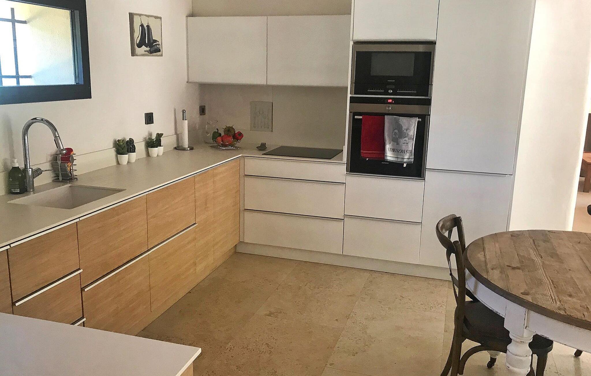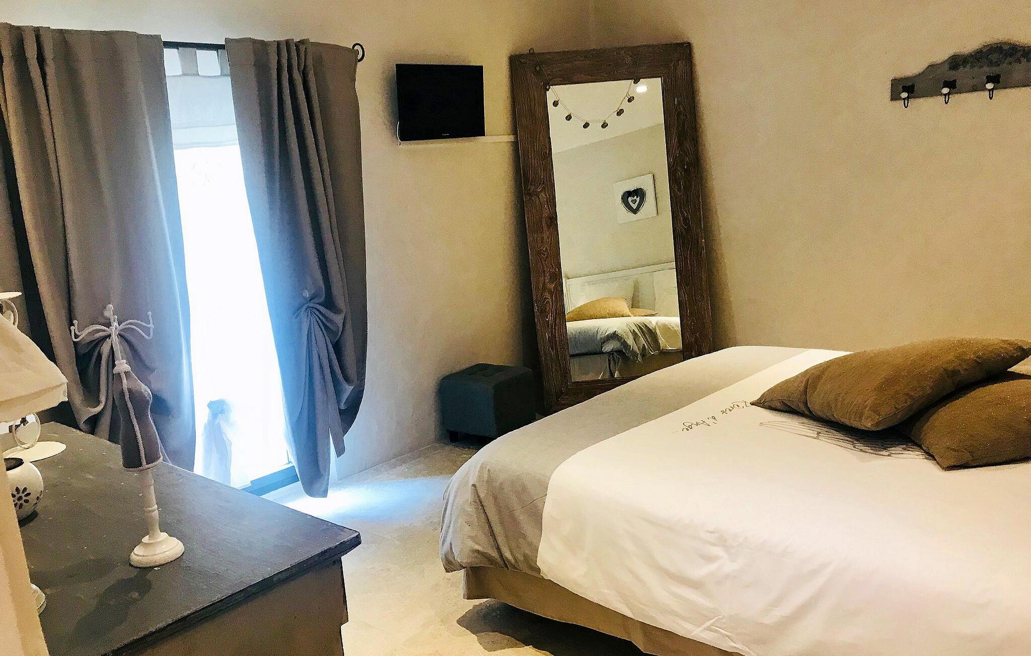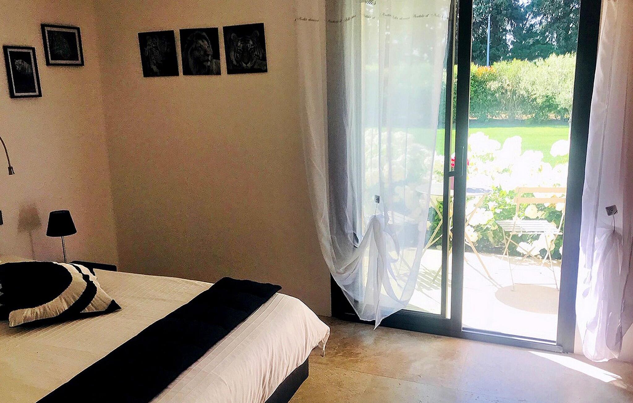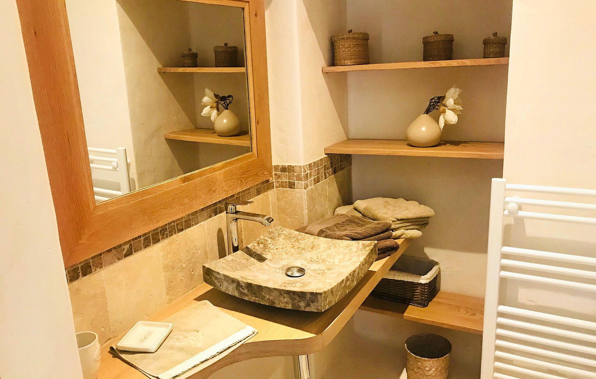 Dieses liebevoll renovierte ehemalige Gehöft in Le Thor verbindet den rustikalen Charme eines historischen Steingebäudes mit moderner, komfortabler Einrichtung. Der großzügige Wohnbereich lädt Sie zum Entspannen ein, während die gut ausgestattete Küche ideal für gemeinsame Kochabende ist. Genießen Sie Ihre Mahlzeiten im Freien auf der Terrasse, bereiten Sie Leckereien auf der Plancha zu und lassen Sie die Seele baumeln. Im weitläufigen Garten finden Ihre Kinder Platz zum Spielen, und der private Swimmingpool bietet Ihnen die perfekte Erfrischung an heißen Tagen.