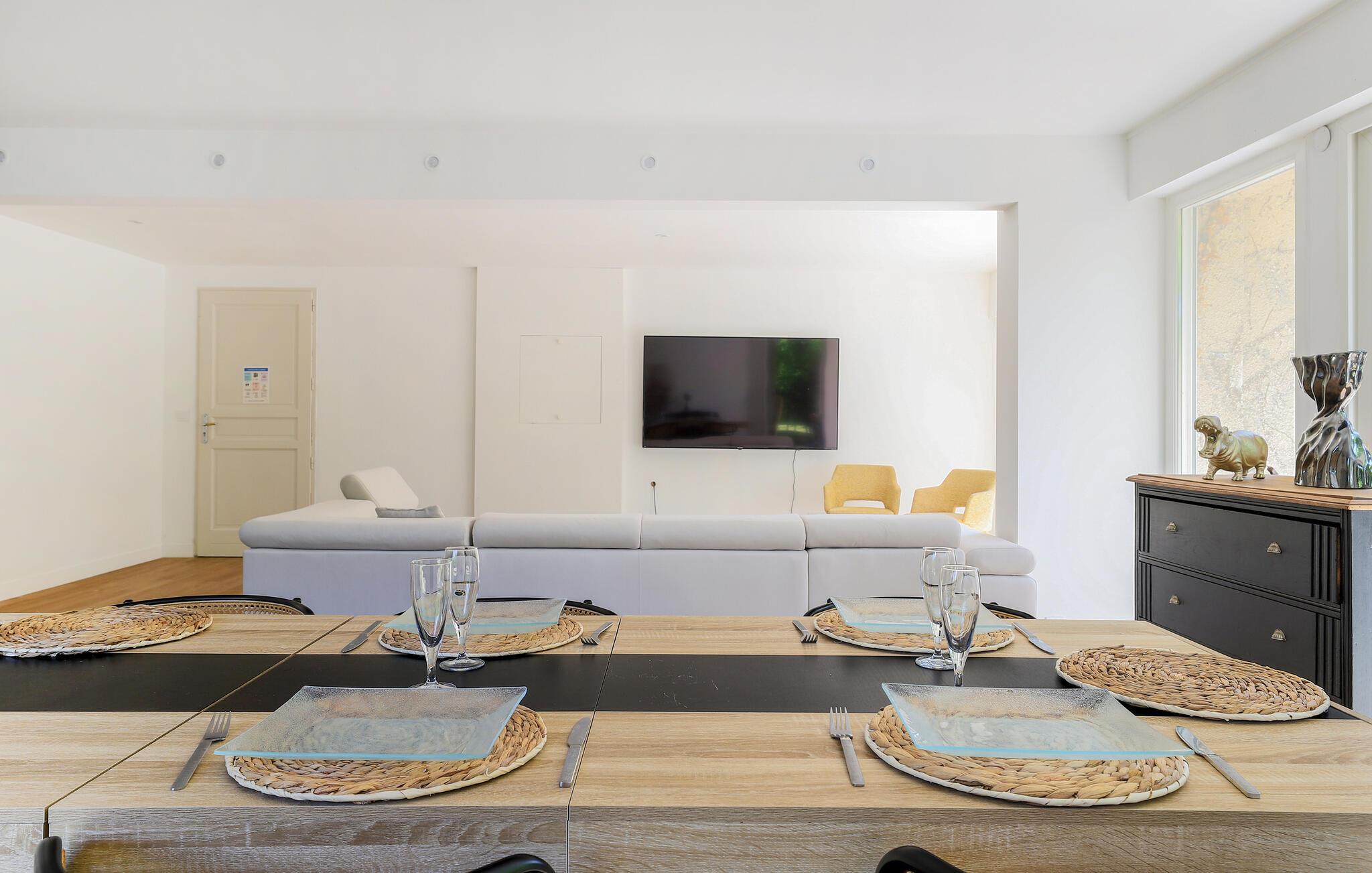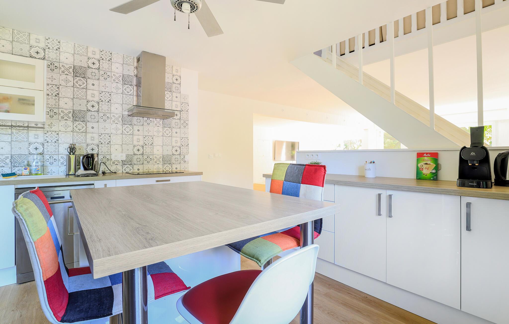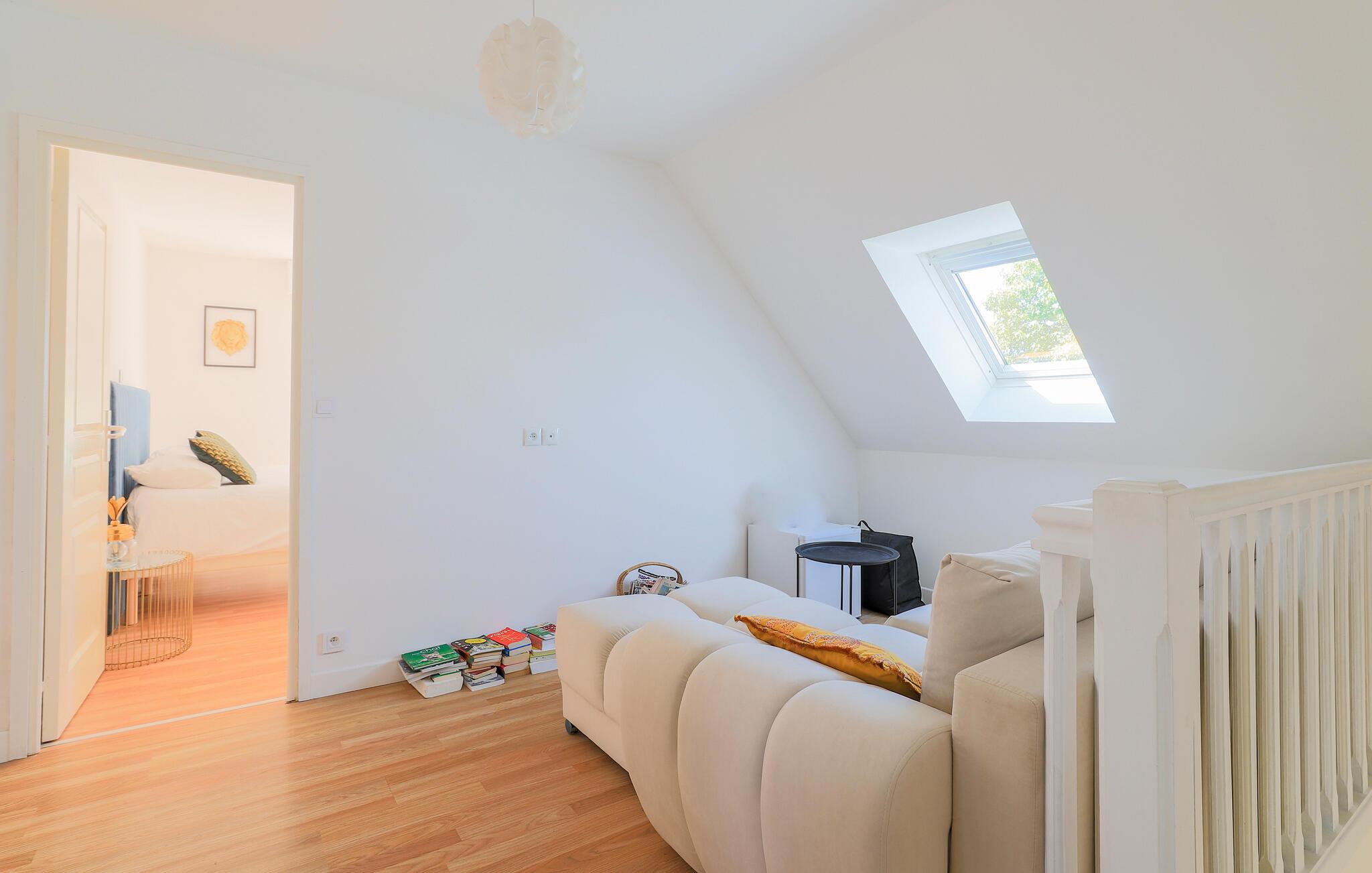 Dieses geräumige Stadthaus begrüßt Sie mit einem hellen und stilvoll eingerichteten Wohnbereich und bietet reichlich Platz für gesellige Tage mit Ihren Liebsten. Zaubern Sie kulinarische Highlights in der modernen, offenen Küche und freuen Sie sich auf fröhliche Mahlzeiten am langen Esstisch. Finden Sie sich zu gemütlichen Spieleabenden zusammen oder ziehen Sie sich mit einem guten Buch an Ihren Lieblingsort zurück.