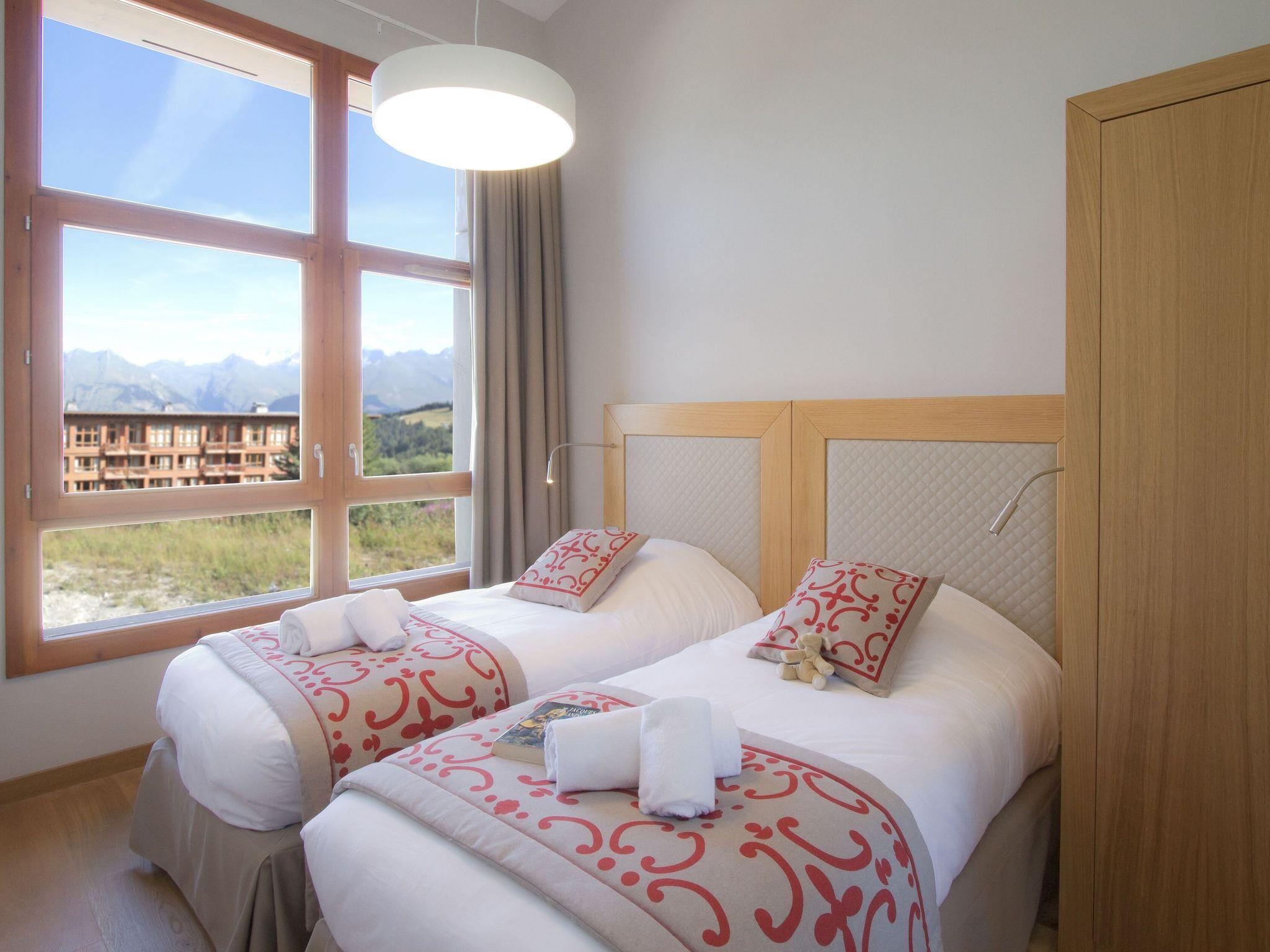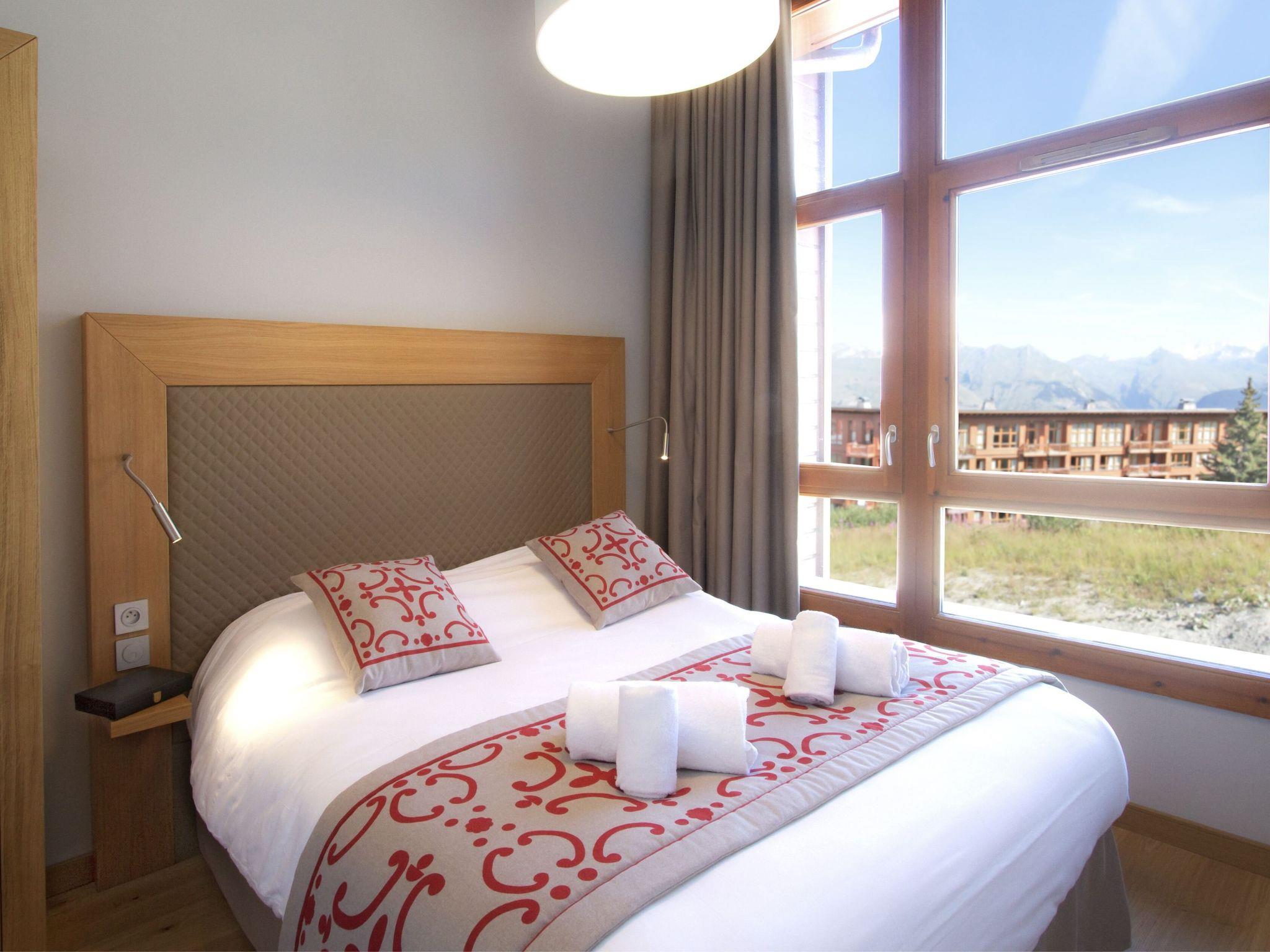 "Résidence Odalys Collection Edenarc", 2-room apartment 36 to 43 m2. Tasteful furnishings: living/sleeping room with 1 double sofabed, dining table and satellite TV. 1 room with 2 sleeping facilities. Small, open kitchen (dishwasher, 4 ceramic glass hob hotplates, toaster, kettle, microwave, electric coffee machine). Bath/WC. Underfloor heating. Balcony or terrace. Balcony furniture. Beautiful view of the mountains. Facilities: children's high chair, baby cot. Internet (WiFi, free). Please note: maximum 1 pet/ dog allowed. Smoke alarm, fire extinguisher.