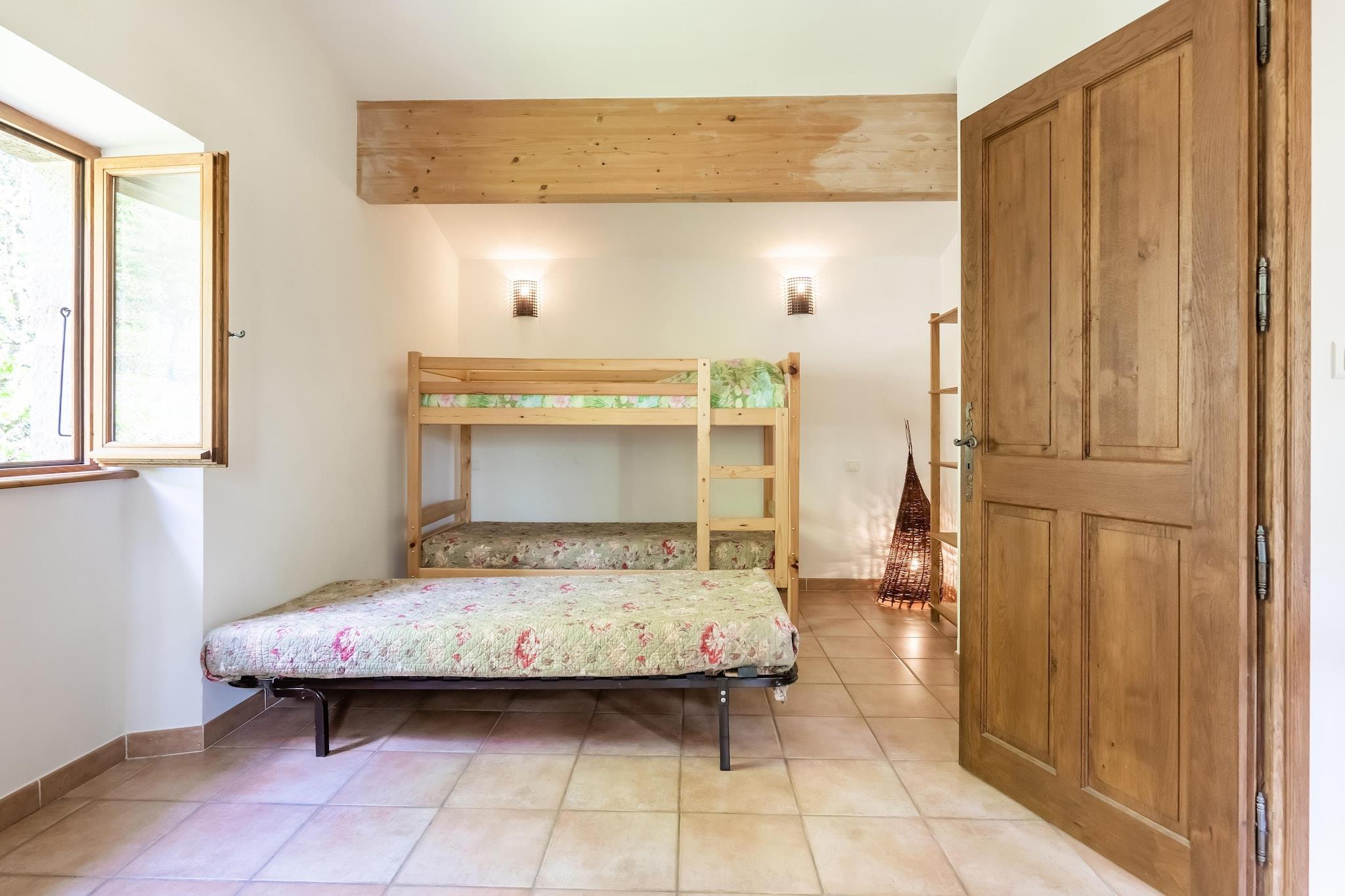 Located in Les Assions, this peaceful 2-bedroom holiday home is ideal for a small group or a family travelling with children. Situated in the countryside, this home also has a shared swimming pool (located 5 km away). The scenic and peaceful Bois de Païolive (8 km) is home to a beautiful canyon and forest, perfect to enjoy camping in the neighbourhood. An excursion can also be planned to the caves of Fontaine du Vedel (10.5 km). There are also several restaurants (2.5 km) and supermarkets (1 km) near the holiday home. This tastefully decorated holiday home, nestled amid nature, is well-furnished with modern amenities to make your stay comfortable. There is a modular kitchen, radio and TV to watch. You can also lounge in the well-manicured garden, overlooking scenic views. The nearest airport is Aérodrome Aubenas Ardèche Méridionale, which is 24 km away from the holiday home.