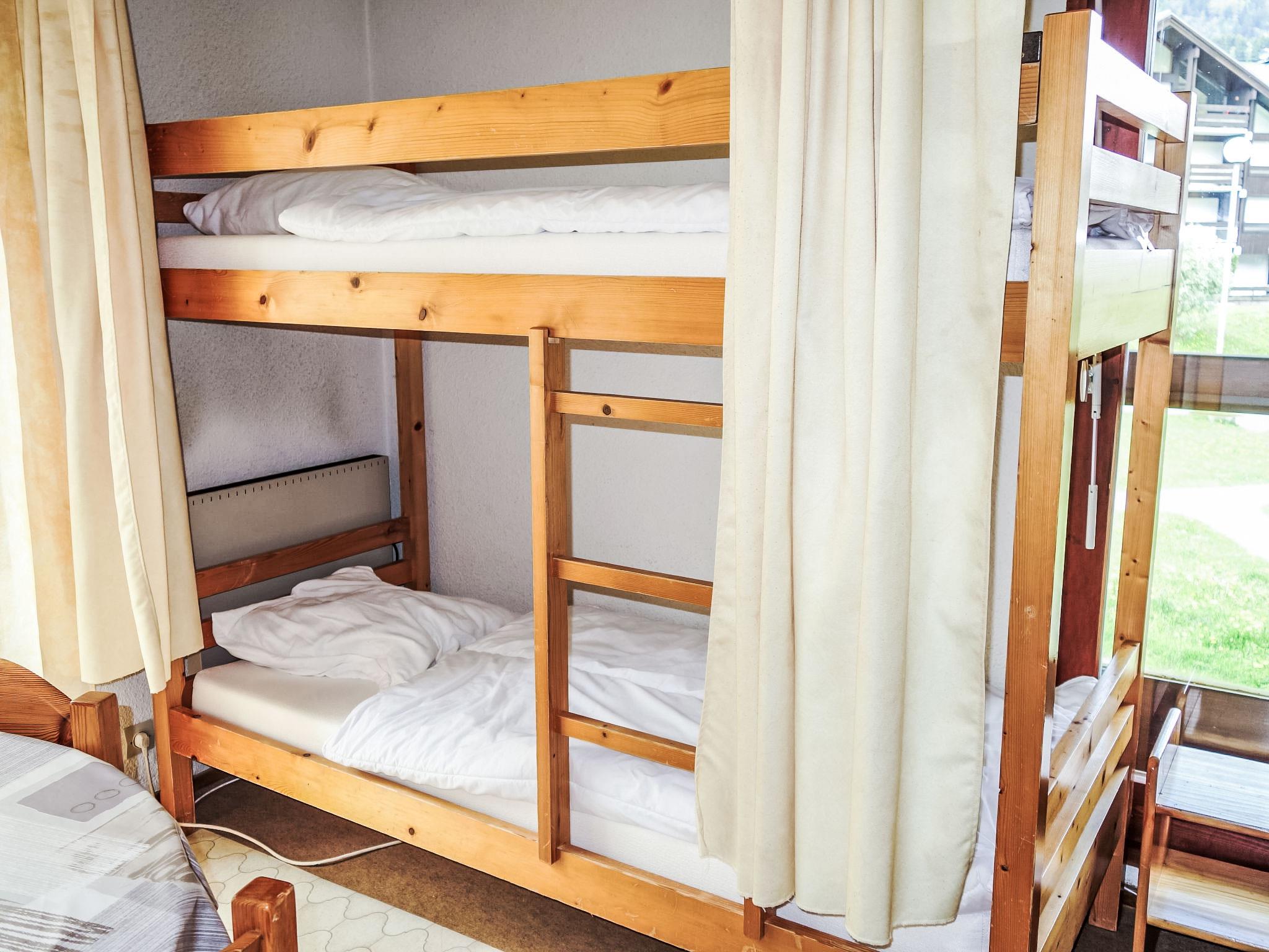 1-room apartment 20 m2 on 1st floor. Living/dining room with 1 double sofabed and 1 x 2 bunk beds (80 cm, length 190 cm), TV. Exit to the balcony. Kitchenette (2 hot plates, oven, toaster, kettle, microwave, electric coffee machine). Bathroom, sep. WC. Electric heating. Small balcony 3 m2, west facing position. Terrace furniture. Facilities: Internet (WiFi, extra). Please note: maximum 1 pet/ dog allowed. Smoke alarm. 74085 000466 X0