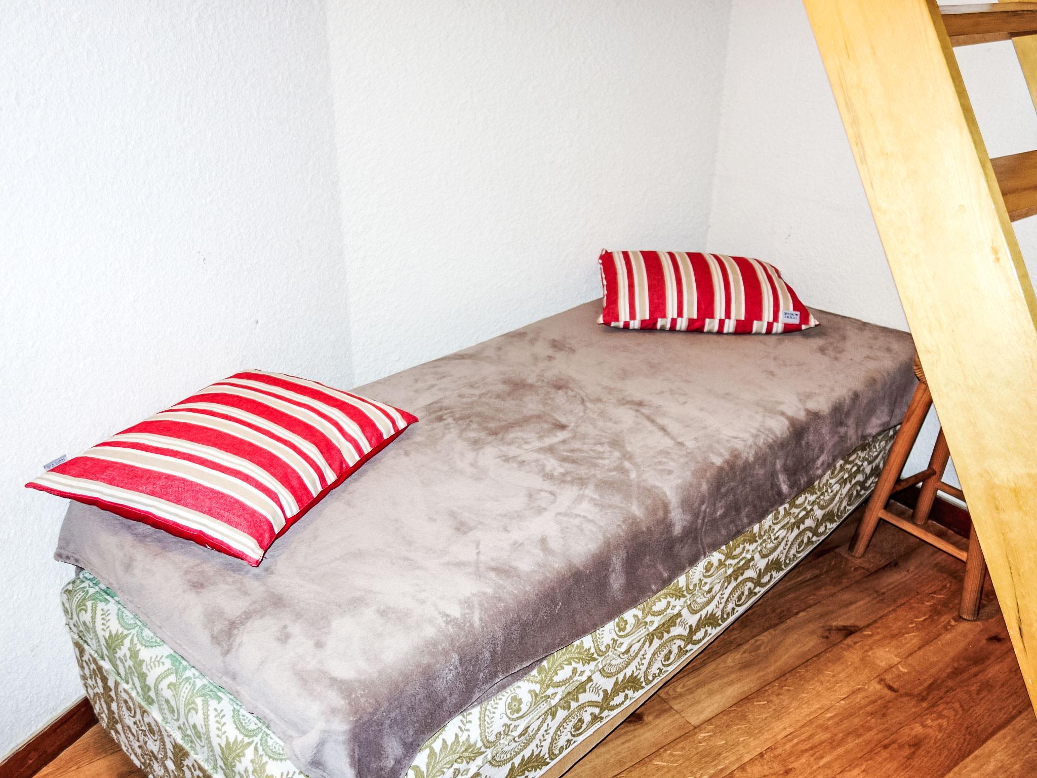2-room apartment 45 m2 on 2 levels on 3rd floor. Living/dining room with 1 double sofabed and TV. 1 room with 1 french bed. Kitchenette (oven, dishwasher, 3 ceramic glass hob hotplates, toaster, kettle, microwave, electric coffee machine). Bathroom, sep. WC. Electric heating. Upper floor: gallery with sloping ceilings with 2 sleeping facilities (2 x 80 cm). Balcony 5 m2, south facing position. Facilities: washing machine. Internet (WiFi, extra). Parking (roofed). Please note: smoke alarm. Instead of an enclosed bedroom, some sleeping areas are located in an open-plan area (gallery, alcove, etc.). 740850001268R
