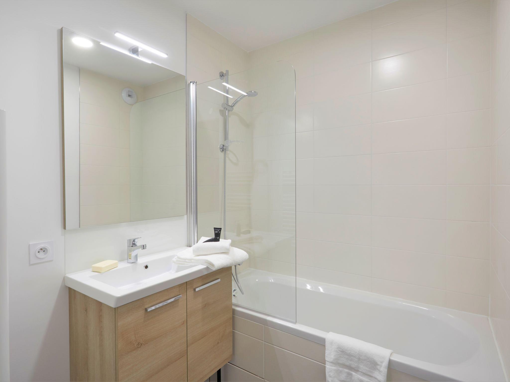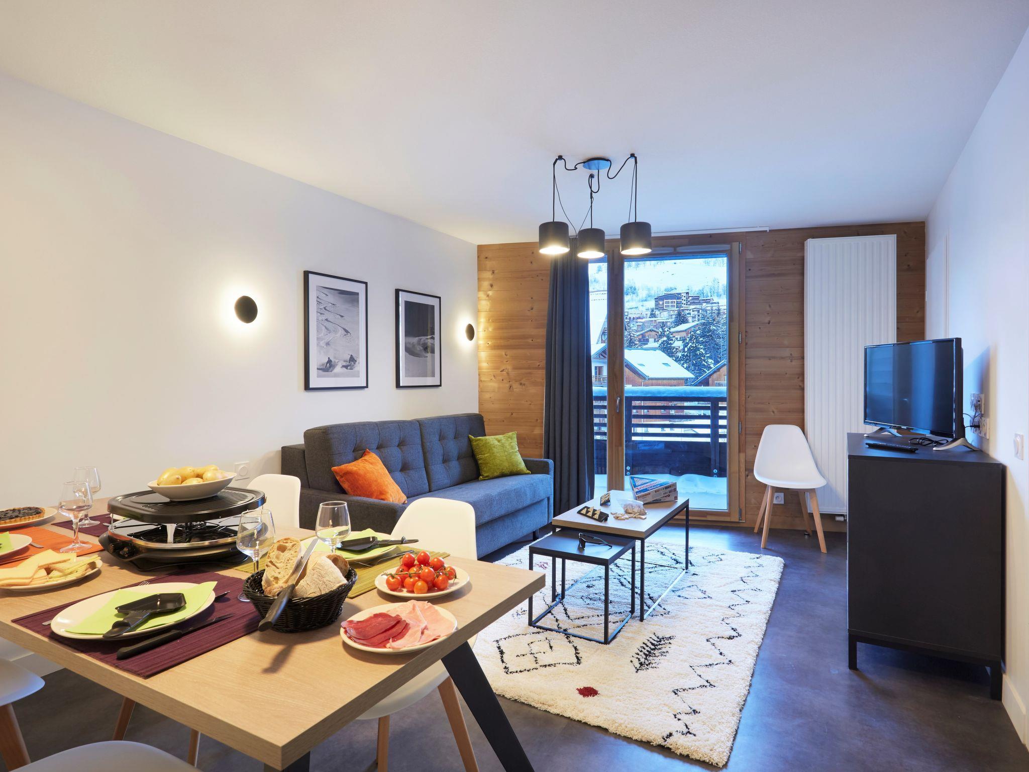 "Le Hameau", 1-room apartment 30 m2. Living/sleeping room with 1 double sofabed (140 cm, length 190 cm), dining table and TV (flat screen). Exit to the balcony, to the terrace. Kitchenette (dishwasher, 2 ceramic glass hob hotplates, toaster, kettle, microwave, electric coffee machine). Bathroom, sep. WC. Electric heating. Small balcony or small terrace. Balcony furniture. Facilities: iron, children's high chair, baby cot. Internet (WiFi, free). Please note: non-smokers only. Maximum 1 pet/ dog allowed. Smoke alarm. The property is one of a type of property or apartment.