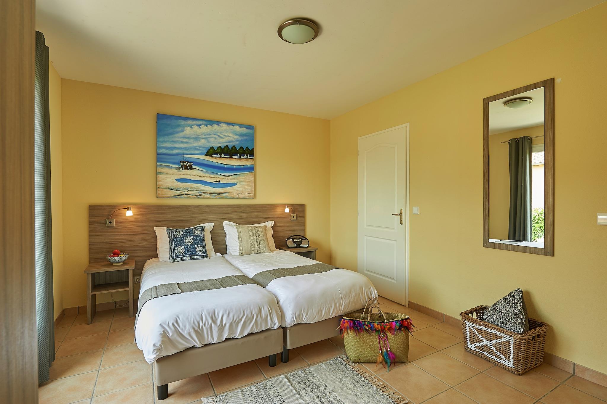 Set on a spacious, private plot in Domaine Les Forges, this elegant single-story villa blends rustic charm with modern luxury. Enjoy three beautifully furnished bedrooms, two stylish bathrooms (including a soaking tub), and a cozy living area complete with a fireplace and Dutch TV. The fully equipped kitchen makes home-cooked meals a breeze, while the garden doors lead to a covered terrace with BBQ—perfect for relaxing al fresco. With step-free access throughout, this villa is ideal for all guests, including those with limited mobility. Unwind at the heated swimming pool, play a round on the nearby 27-hole golf course, or stroll through the landscaped gardens and boules court. Fresh bread deliveries each morning and English-speaking staff make for a seamless stay. Explore the charming towns of Parthenay and Vasles with their boutique shops, markets, and cafés, or take a day trip to the coast at La Rochelle. For family fun, visit the Futuroscope theme park or the medieval wonders of Puy du Fou. Bring your furry companions along—this villa and the region are perfect for pets! Discover scenic trails through the nearby forests or spend a relaxing afternoon by Lac de Cébron, where pets can join you for lakeside picnics and gentle walks. Many local cafés and terraces welcome dogs, making it easy to dine out without leaving anyone behind.