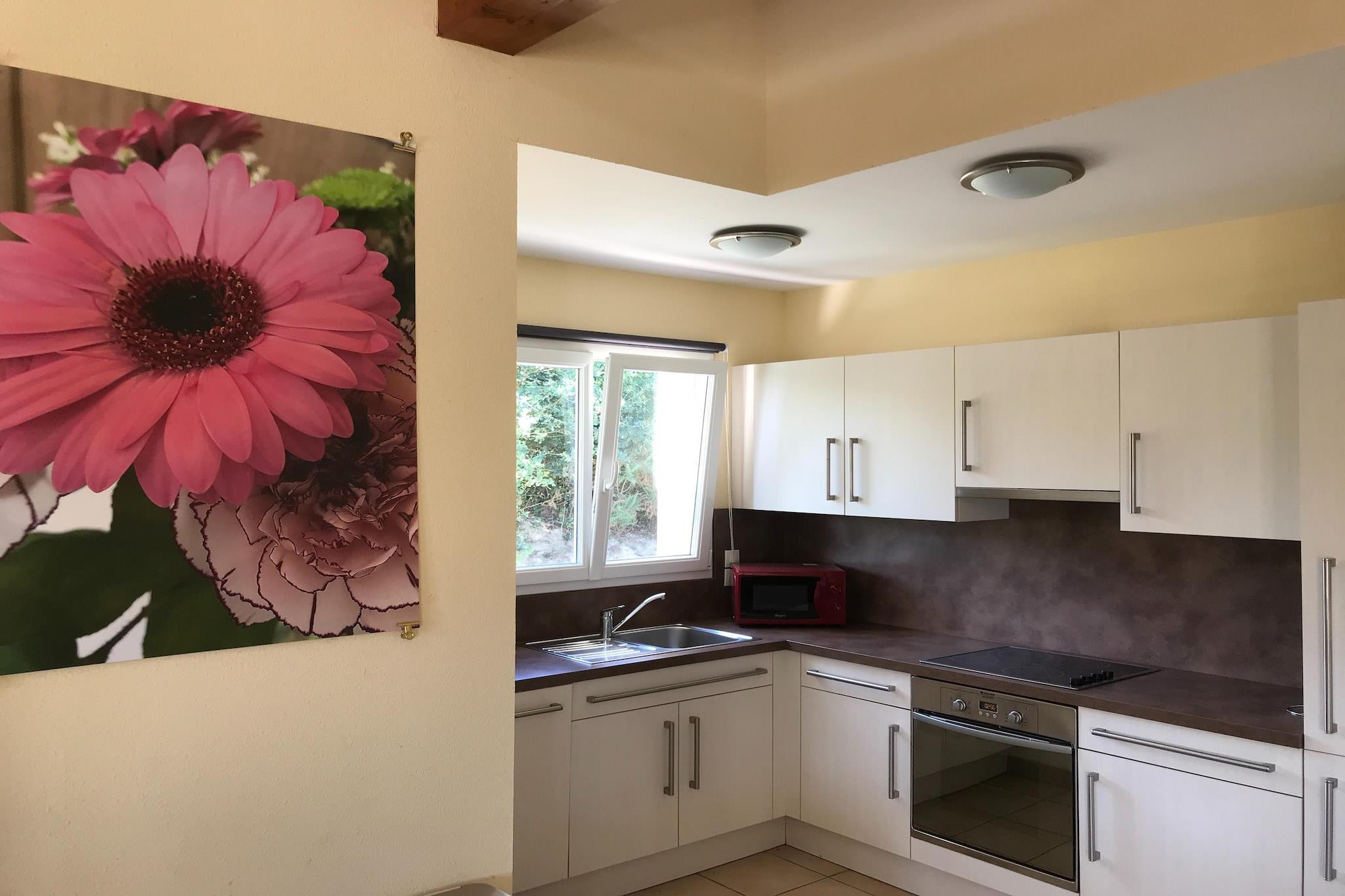 Ground floor: (open kitchen(boiling water tap, toaster, coffee machine, oven, microwave, dishwasher, fridge-freezer), pantry(washing machine), pantry, Living/diningroom(TV, dining table(6 persons), fireplace, seating area(6 persons)), bedroom(single bed(90 x 190 cm), single bed(90 x 190 cm)), bedroom(single bed(90 x 190 cm), single bed(90 x 190 cm)), bathroom(bathtub with shower, toilet), bathroom(shower), toilet(toilet)) Bubble bath(paid), infrared sauna(paid), washing machine, heating, terrace, garden, bicycle storage, garden furniture, BBQ, parking, swimming pool(shared with other guests, including separate children’s swimming pool (depth 50cm)), boules court, table tennis table, bicycles available(paid)
