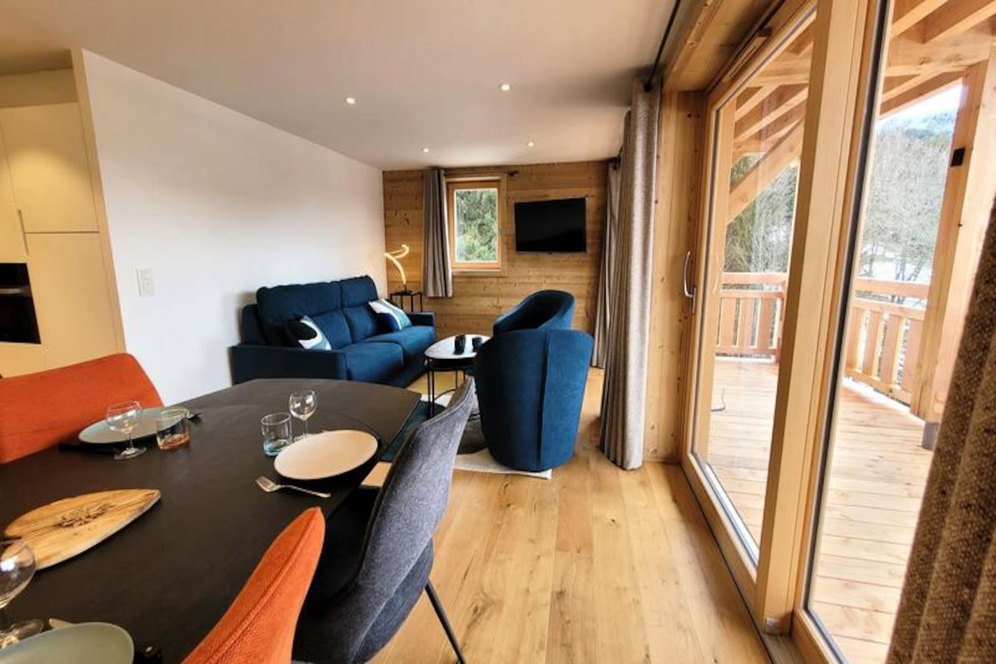 In the heart of Les Gets, where alpine charm meets modern comfort, this newly built apartment in the prestigious Le Clos d'Arsène residence offers a serene escape for your mountain holiday. Set in a peaceful area yet close to the village's historic center, this 3-star property combines contemporary design with the timeless beauty of the French Alps. Imagine waking up to the gentle glow of the South-West sun, stepping onto your private terrace, and soaking in the tranquil mountain views. This 46.80 m² apartment is thoughtfully designed to accommodate up to four guests, making it perfect for couples, families, or friends. The two double bedrooms are cozy and well-appointed with ample storage, while the modern shower room and separate toilet add to the convenience. The open-plan living area, with its fully equipped kitchen, comfortable seating, and dining space, is a welcoming hub for relaxation. Large bay windows flood the space with natural light, seamlessly connecting the indoors with the sunny terrace, ideal for afternoon lounging or evening gatherings. Located just 500 meters from the ski slopes and 750 meters from the ESF ski school, this apartment is a haven for winter sports enthusiasts. In summer, the surrounding trails and alpine meadows invite you to explore the breathtaking landscapes. Essential amenities, including shops and a shuttle stop, are within walking distance, ensuring a hassle-free stay. After a day of adventure, unwind with a raclette or fondue using the provided equipment, or simply relax with a movie on the flat-screen TV. With its blend of modern amenities, prime location, and the enchanting atmosphere of Les Gets, this apartment promises an unforgettable alpine getaway. Whether you're here for the thrill of skiing or the serenity of summer hikes, Le Clos d'Arsène is your gateway to the best of the French Alps.