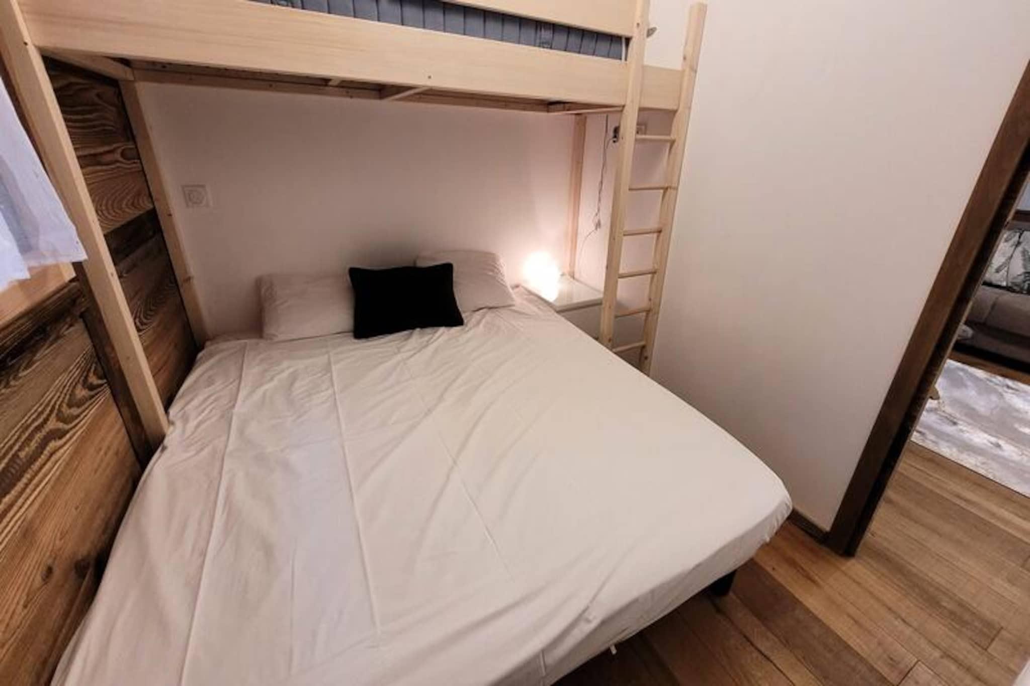 In the heart of the charming French Alps, this delightful apartment offers a perfect blend of modern comfort and alpine charm. Situated on the first floor of a newly built residence with warm wooden and stone architecture, it provides an inviting retreat for those seeking both relaxation and adventure. With its prime location just 200 meters from the village center and a short walk to shops, restaurants, and ski lifts, this property ensures you’re always close to the action while enjoying a peaceful haven. \n\nStep inside and discover a cozy living and dining area with a fully equipped kitchen, a Rapido sofa bed, and access to a private balcony where you can soak in the crisp mountain air. The bedroom features two single beds that can be joined to form a double, along with ample storage space. A modern bathroom with a heated towel rail and washing machine adds to the convenience, making it an ideal choice for couples or small families. Additional amenities include Wi-Fi, private parking, a ski locker, and shared bicycle storage, ensuring a seamless stay. \n\nBeyond the residence, the vibrant village life awaits. Whether you’re hitting the slopes just 350 meters away, taking lessons at the nearby French Ski School, or enjoying a meal at a local restaurant, everything is within easy reach. In summer, the area transforms into a paradise for hikers and cyclists, with breathtaking trails and stunning alpine vistas. \n\nThis apartment is more than just a place to stay—it’s a gateway to unforgettable mountain adventures. With end-of-stay cleaning, linens, and towels included, all you need to do is arrive and unwind. Experience the best of alpine living in this cozy, well-appointed retreat.