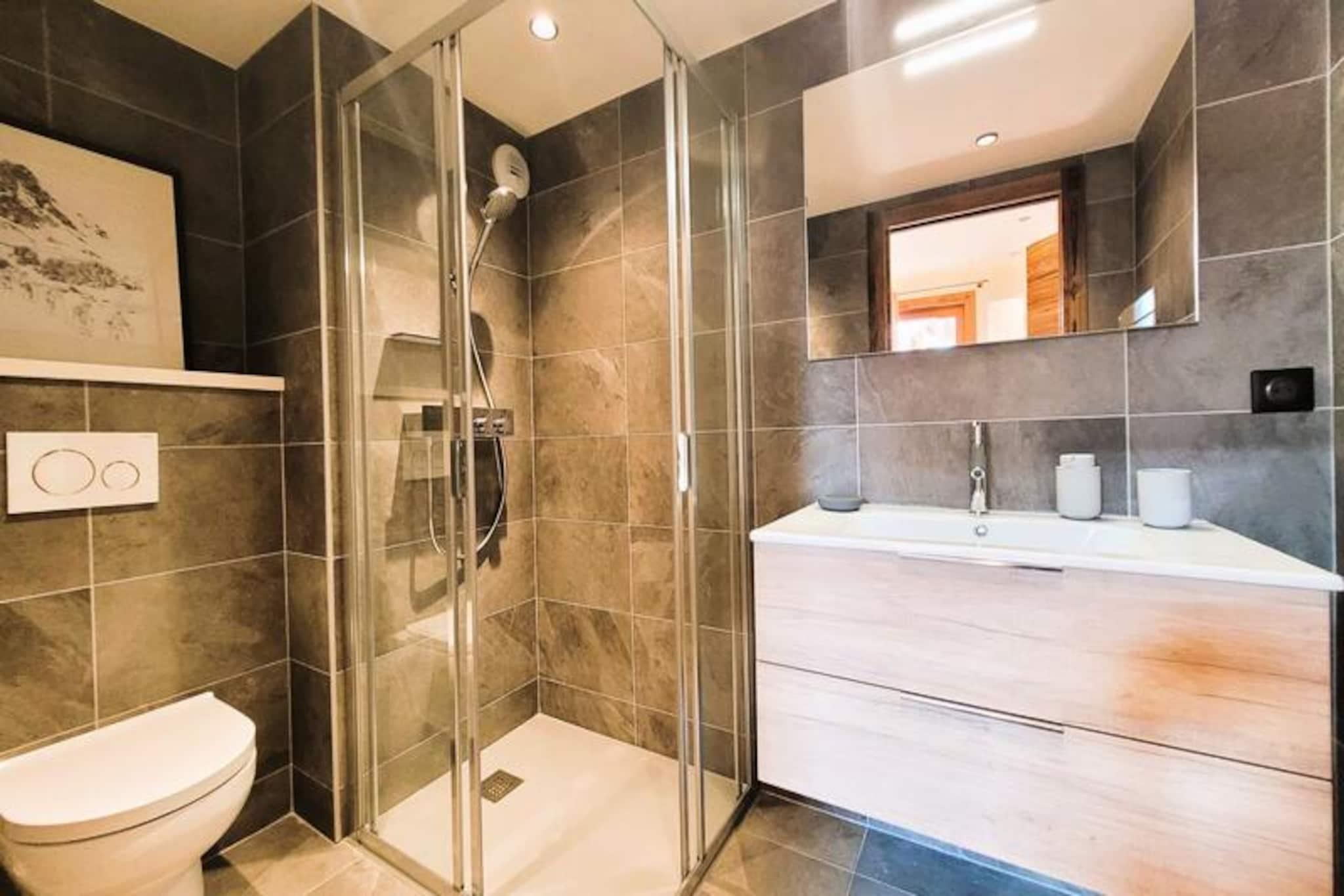 In the heart of the charming alpine village, this luxurious 4-star apartment offers a blend of elegance, comfort, and convenience. Located on the fourth floor of a prestigious new residence, it boasts stunning views of the surrounding mountains and slopes. The vibrant shopping arcades on the ground floor and the proximity to key amenities make it a perfect retreat for families and groups seeking a memorable alpine escape. Step inside to discover a beautifully designed 103 m² space with high ceilings and a warm, inviting atmosphere. The apartment features three spacious bedrooms, each with its own bathroom, ensuring privacy and comfort for up to seven guests. The open-plan living area, complete with a cozy fireplace, flows seamlessly into a fully equipped Bulthaup kitchen, making it ideal for shared meals and relaxed evenings. The southwest-facing 16 m² terrace invites you to soak up the sun and marvel at the breathtaking alpine scenery. After a day on the slopes, unwind in the residence’s high-end wellness facilities, including a sauna, hammam, and fitness center. The Chavannes chairlift is just 250 meters away, offering easy access to world-class skiing, while the ESF ski school is a short 350-meter stroll. With shops, restaurants, and a shuttle stop just steps away, everything you need is at your fingertips. This exceptional property combines the best of alpine luxury with unbeatable convenience, making it the perfect choice for your next mountain getaway. Whether you’re here for skiing, hiking, or simply relaxing, this apartment promises an unforgettable experience.